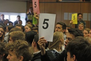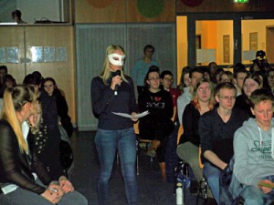 1. März 2016Jetzt schon zum dritten Mal schließen die Schüler/innen des 12. Jahrgangs die mühsame und langwierige Arbeit an ihren Facharbeiten mit einer unterhaltsamen Jahrgangsveranstaltung Sek II im Stil eines Slams ab. Diese Präsentation der Facharbeit geht zusätzlich zur Bewertung der (schriftlichen) Facharbeit, die auf das wissenschaftliche (Forschungs-)Arbeiten an der Universität vorbereiten soll, in die Gesamtbewertung ein. Seit drei Jahren laufen diese Präsentationen im Stil der bekannten Science- und Poetry-Slams. Jedes der vier Profile wählt aus den in den Klassen vorgestellten Slams die zwei besten Slamer/innen aus.