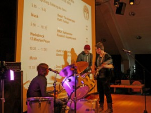 Wichtig ist noch das Einhalten der Zeitvorgabe: mindestens 9, maximal 10 Minuten – darauf achteten zwei Zeitwächterinnen. Selbstverständlich gabe es auch eine Moderation und für das musikalische Rahmenprogramm sorgte Tilman Eckelt und Band.