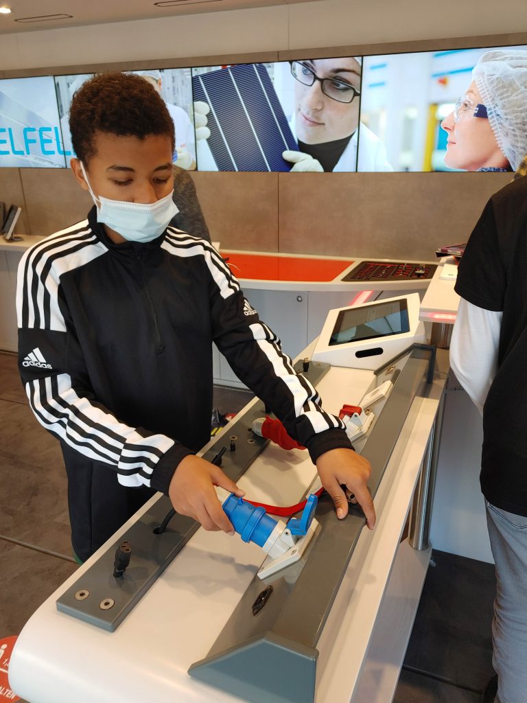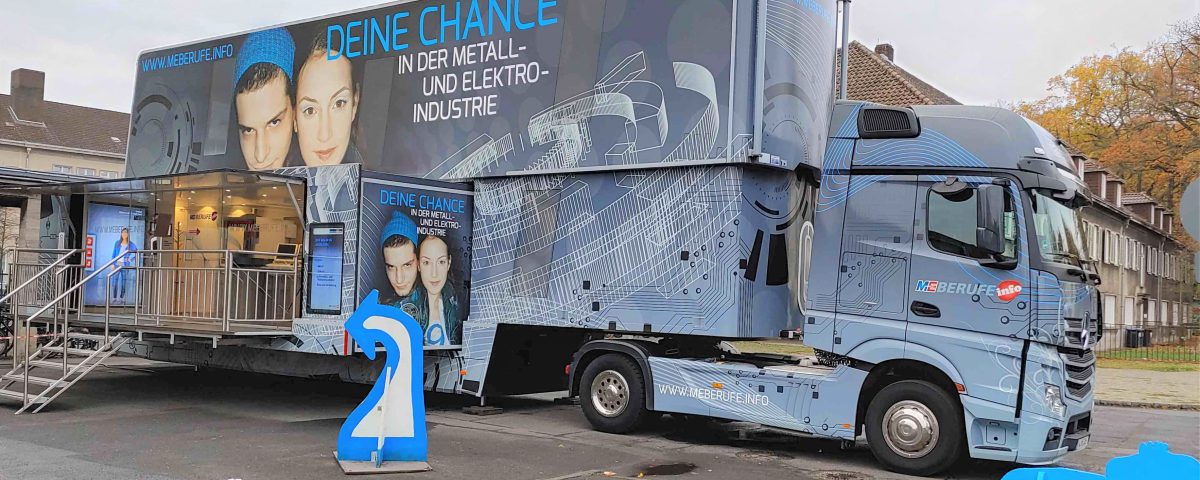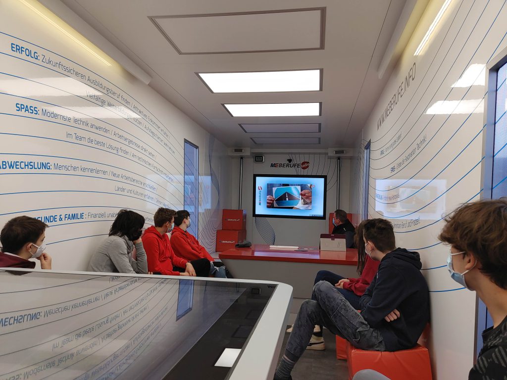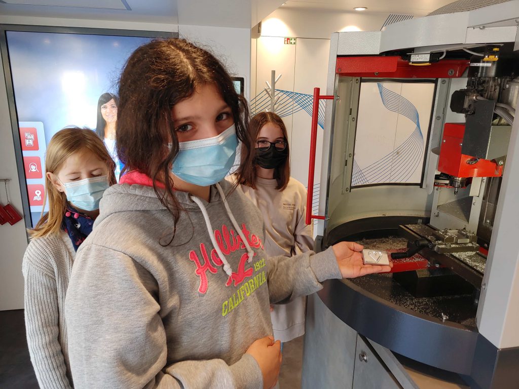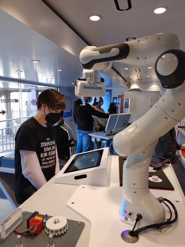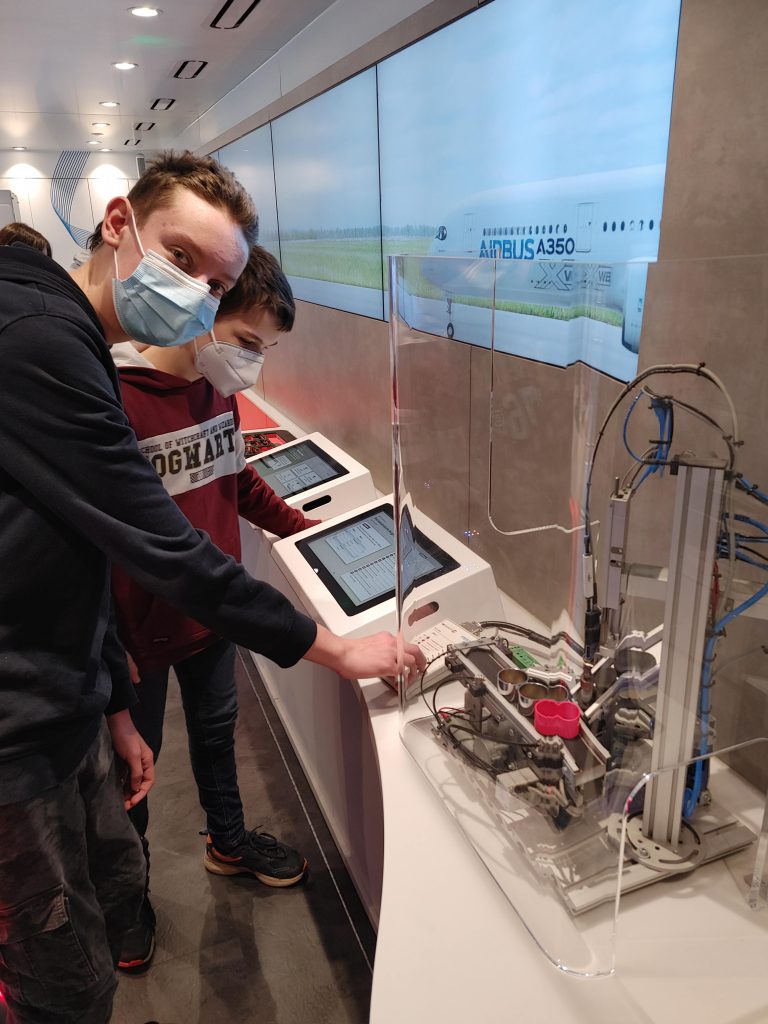 17. November 2021Kaum gleiten die Glastüren mit einem sanften Luftzug auseinander, strömt dem Besucher/der Besucherin der Duft des ehrlichen Handwerks entgegen. Es ist ein Handwerk, das nahezu 4 Millionen Menschen in Deutschland ausüben und damit über 1 Billionen Euro erwirtschaften. Der Zerspanungsmechaniker, die Elektronikerin, IT-Fachleute und Industriekauffrauen/-männer, diese und viele andere Berufe aus dem Bereich Metall und Elektronik konnten die Schüler:innen der Wahlkurse Technische Welt von Dienstag bis Donnerstag (09.11.-12.11.2021) erkunden. Wie lässt sich ein Roboterarm so programmieren, dass er ein funktionstüchtiges Getriebe zusammensetzt? Kann eine Maschine im Dauerbetrieb Deckel auf Dosen stülpen? Was ist eigentlich eine CNC-Fräsmaschine? Diese und andere Fragen klärten die Jugendlichen an experimentellen Stationen.