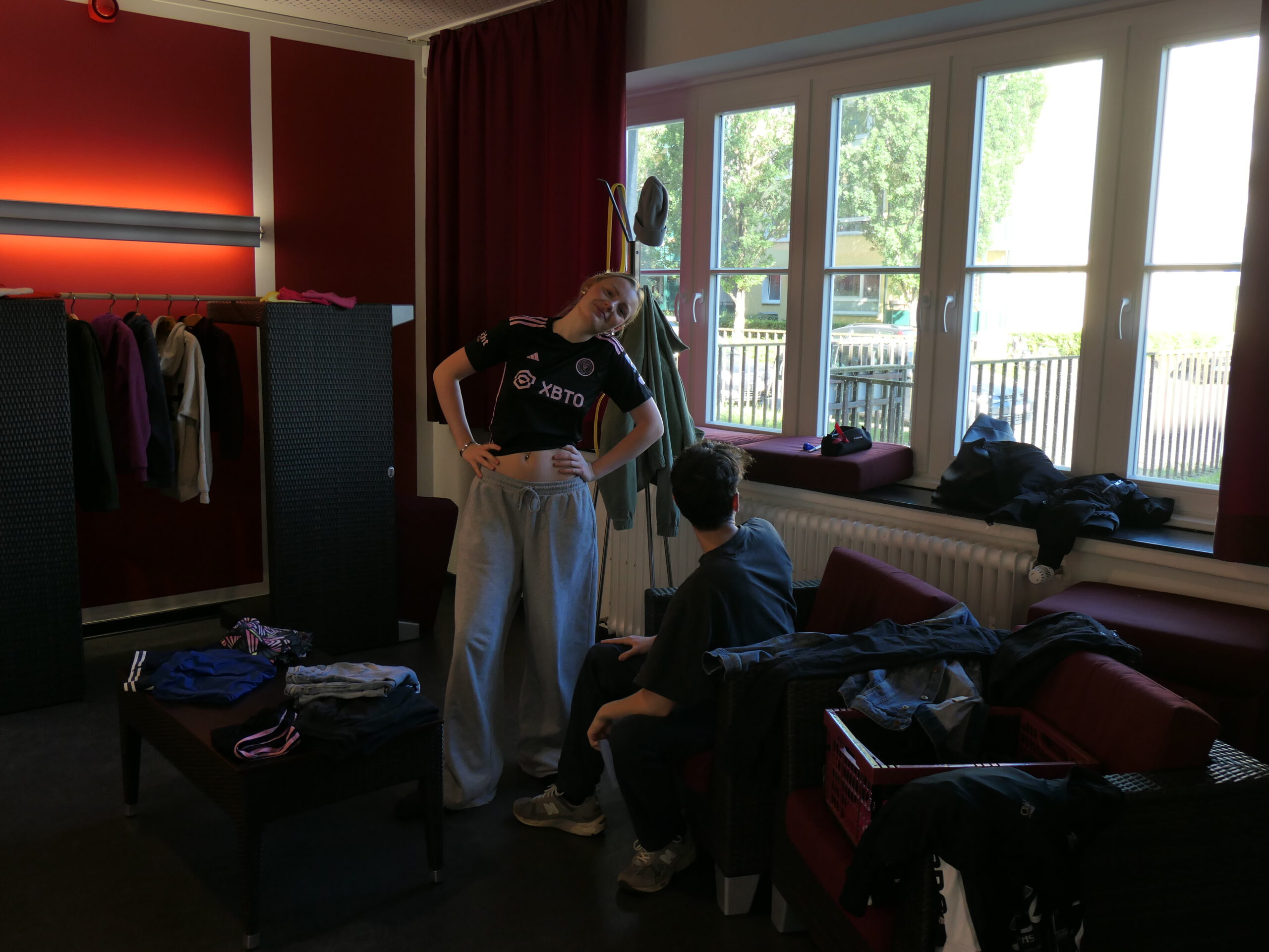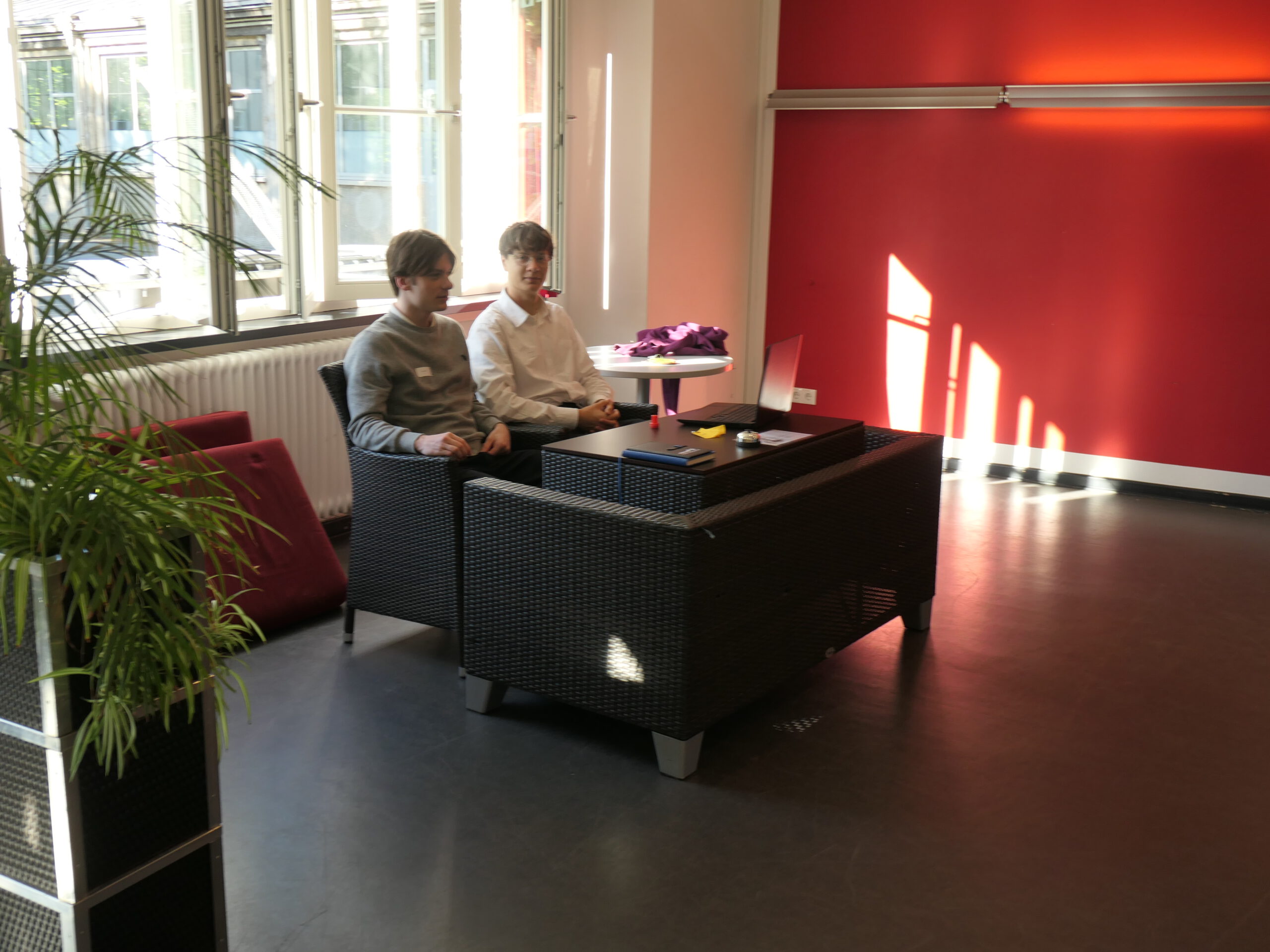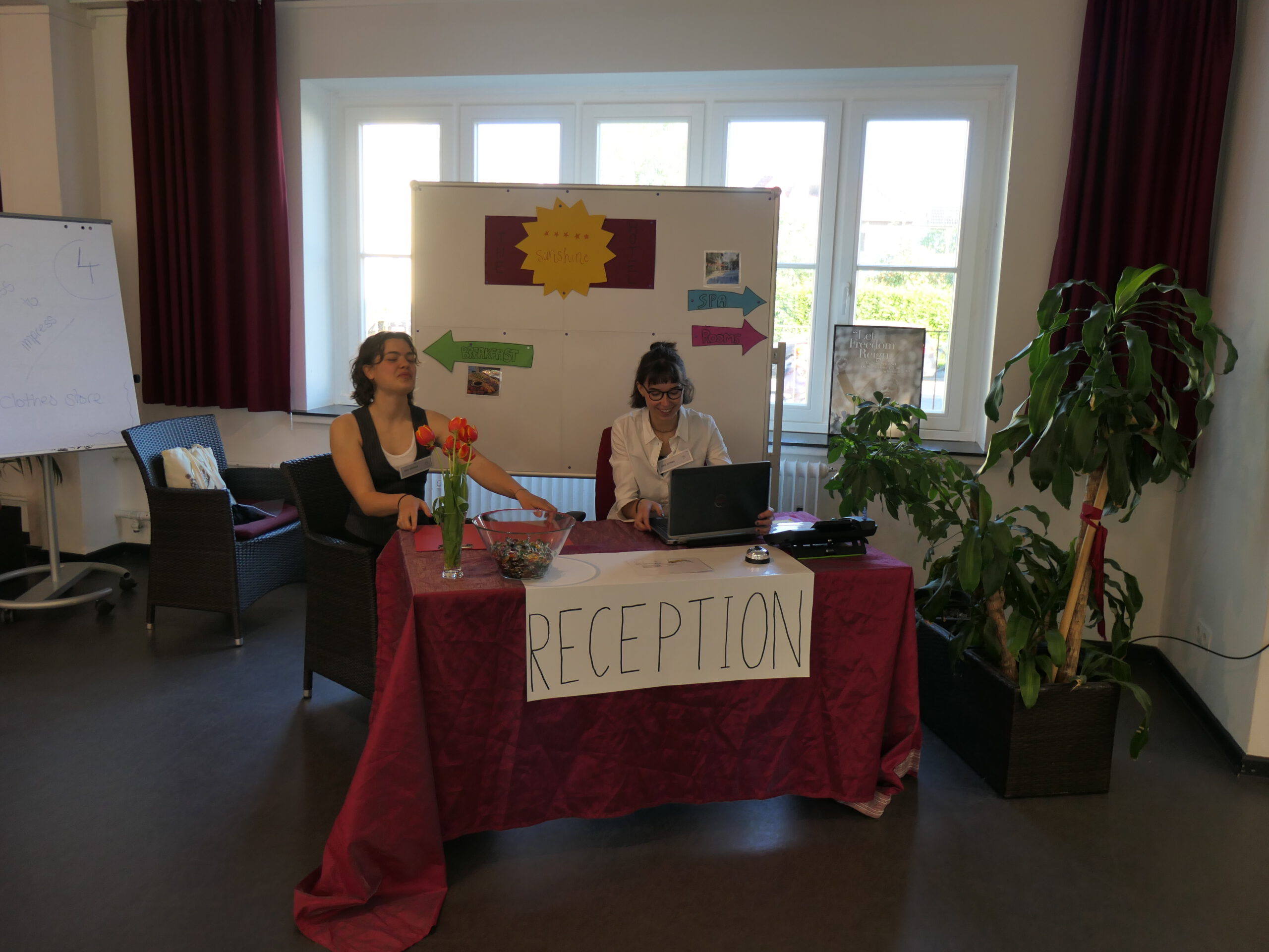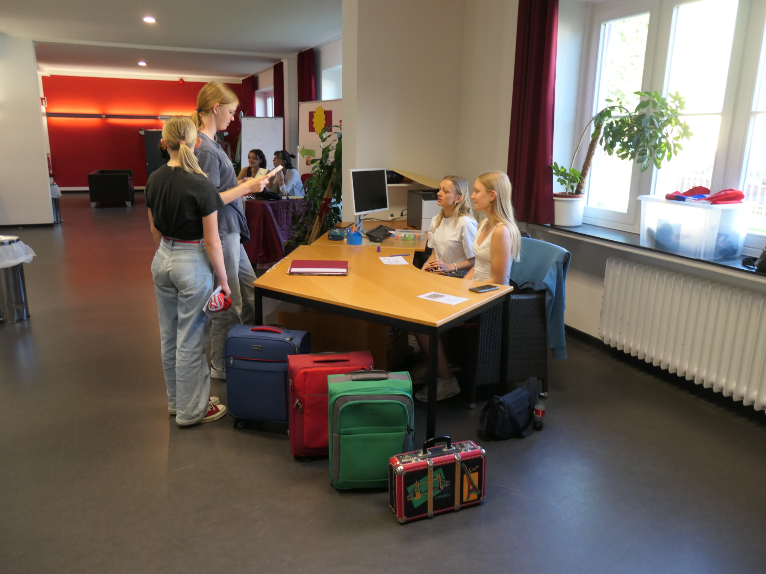 Aber der Reihe nach: zunächst galt es bei der Ankunft am JKF Airport die Kontrollen am Zoll in der Fremdsprache zu bestehen. Ausgestattet mit einem Tourpass und einer Handvoll IGSFF-Dollar konnten sich die SchülerInnen im Anschluss durch New York treiben lassen. Beginnend beim Lost Property Office musste man den fehlenden Koffer beschreiben und klären, wie das Gepäck ins Hotel geliefert werden könne. Beim freundlichen Personal des Sunshine Hotels galt es die reservierten Hotelzimmer zu beziehen und nach dem WLAN-Passwort und anderen typischen Einrichtungen der Unterkunft zu fragen. Leckere Bonbons gab es dann inklusive. Versehen mit der Keycard machten sich die Teams auf, den Tag zu planen und das „Sprachen“-Dorf zu erkunden. Die besten Vintagestücke gab es auf jeden Fall in der SportsBoutique (ein Besenstil mit Kleiderbügeln zwischen den hochgestellten Sofas kann sehr exquisit wirken). Eine professionelle Beratung für interessante Touren offerierte die Tourist Information und für die besten Tickets der aktuellen Broadwayshows musste man zur Box Office am Time Square, bevor der Night Desk Agent zum Entspannen und über den Tag reden einlud.
