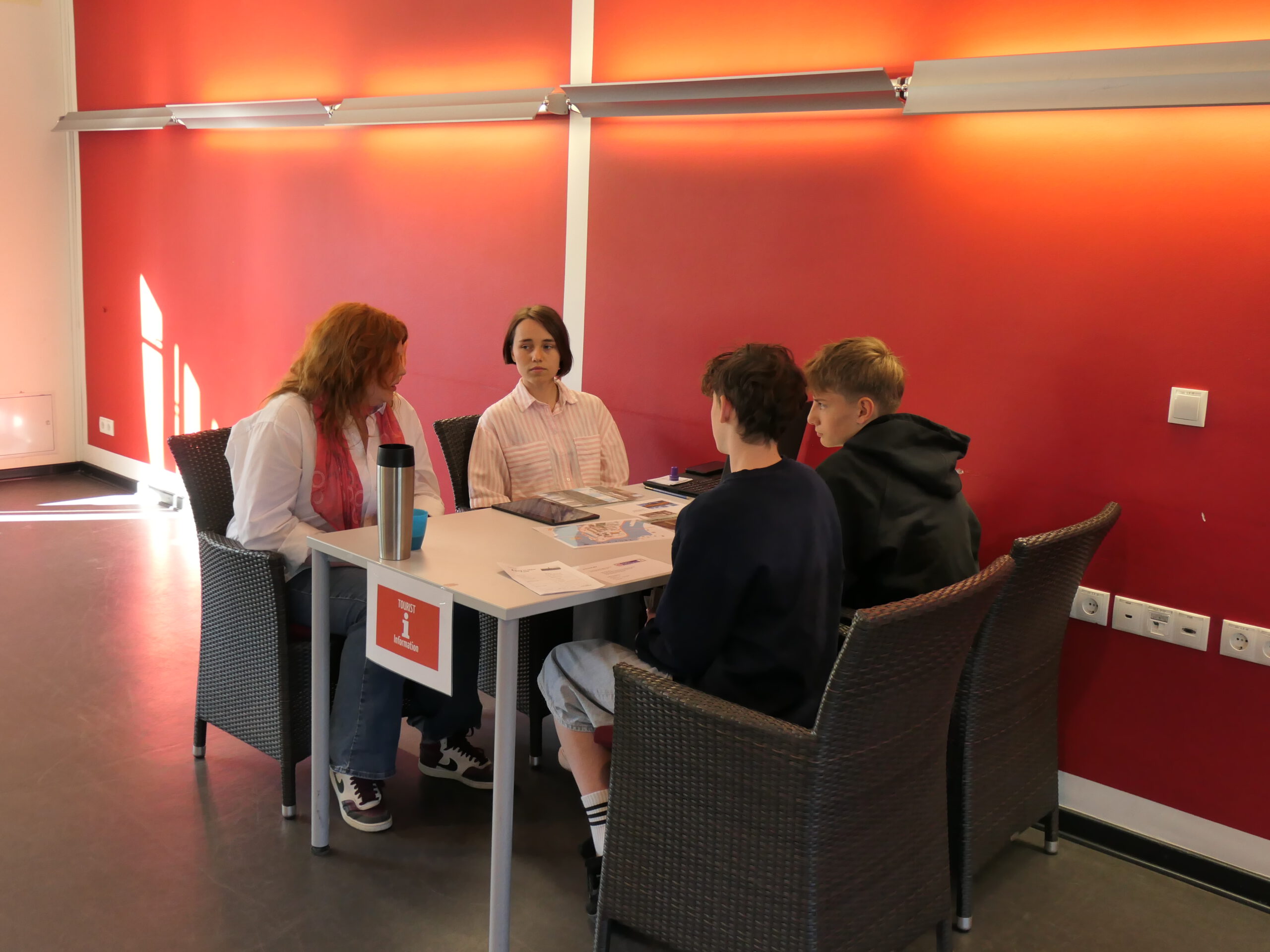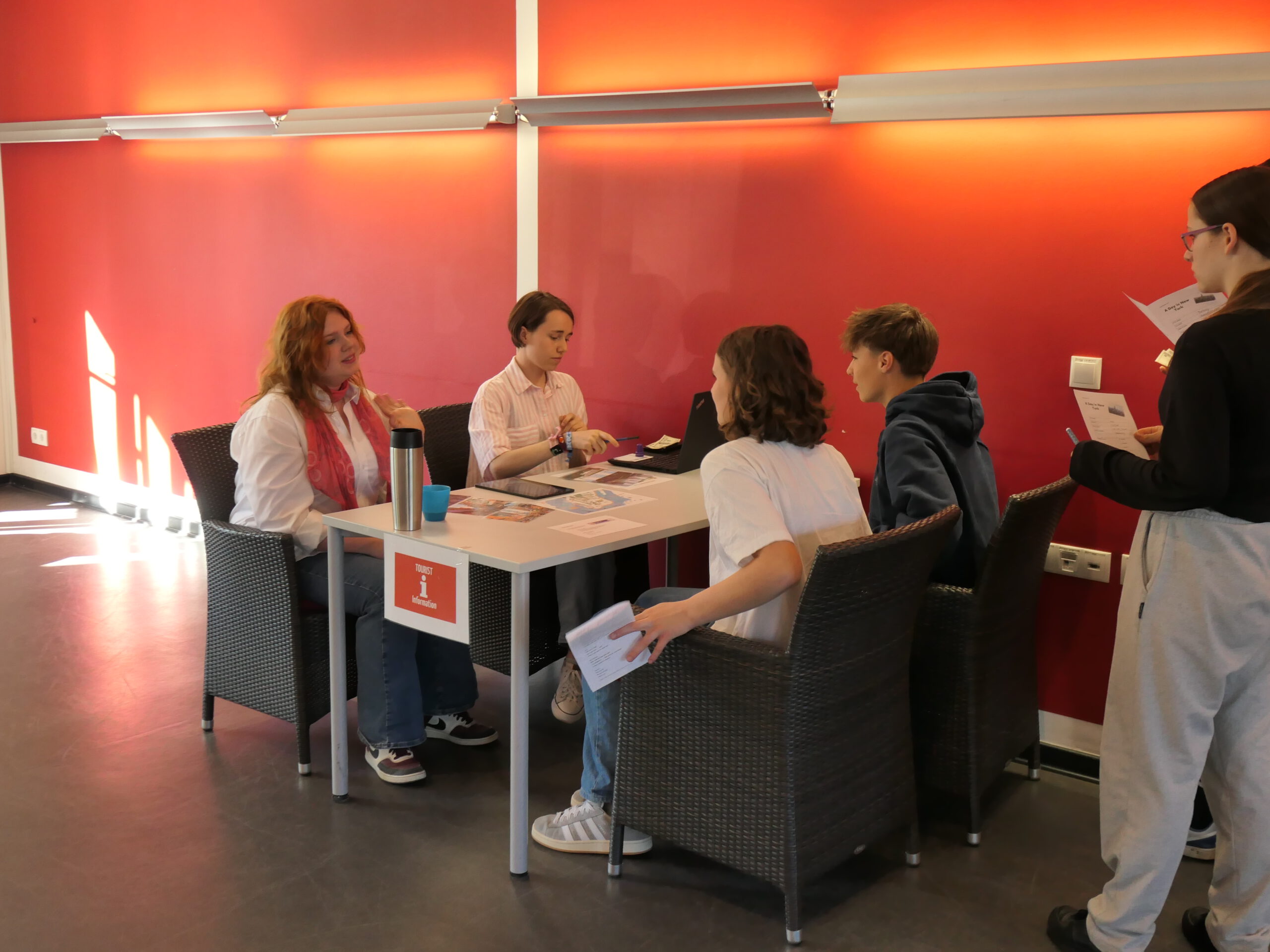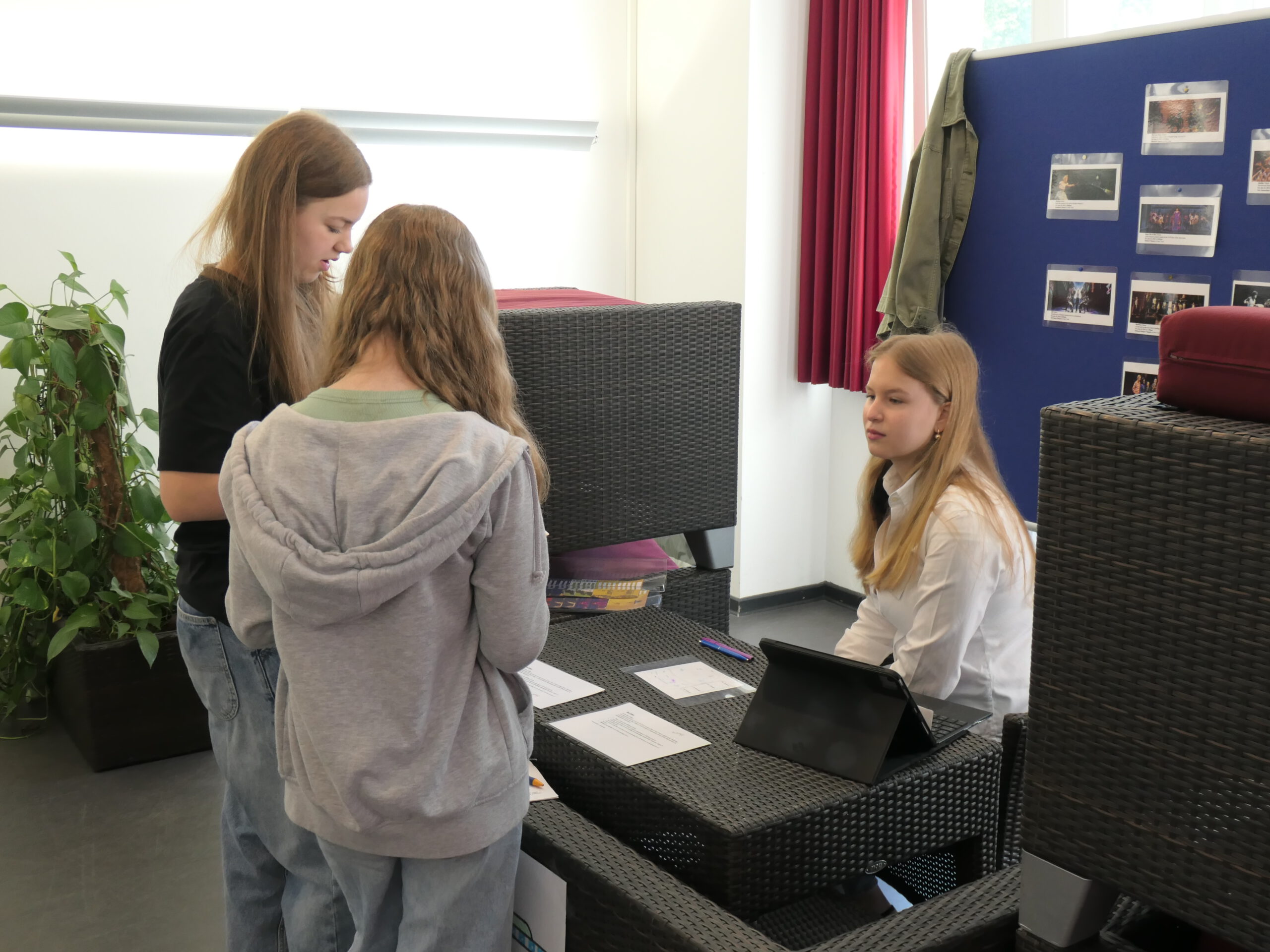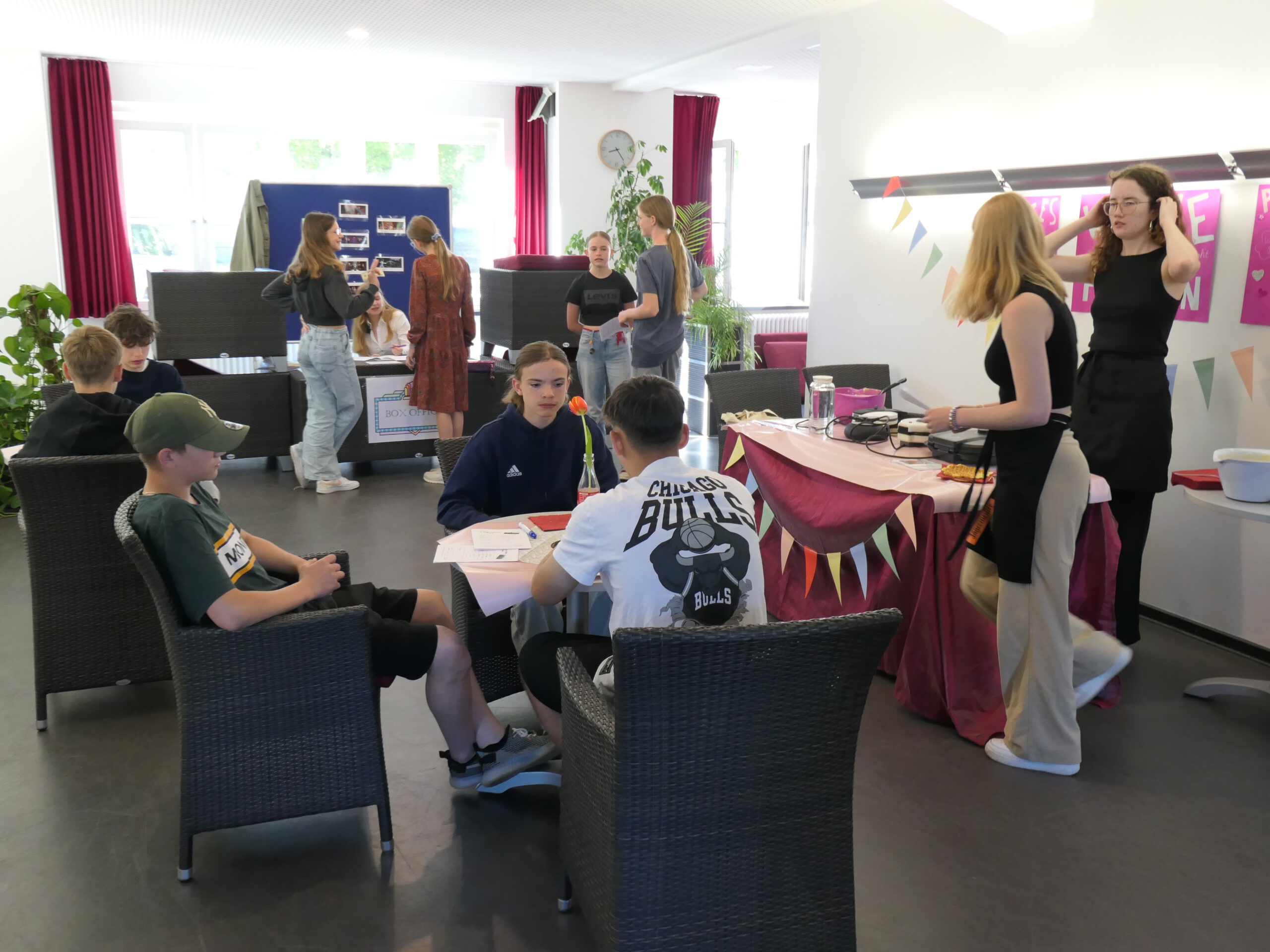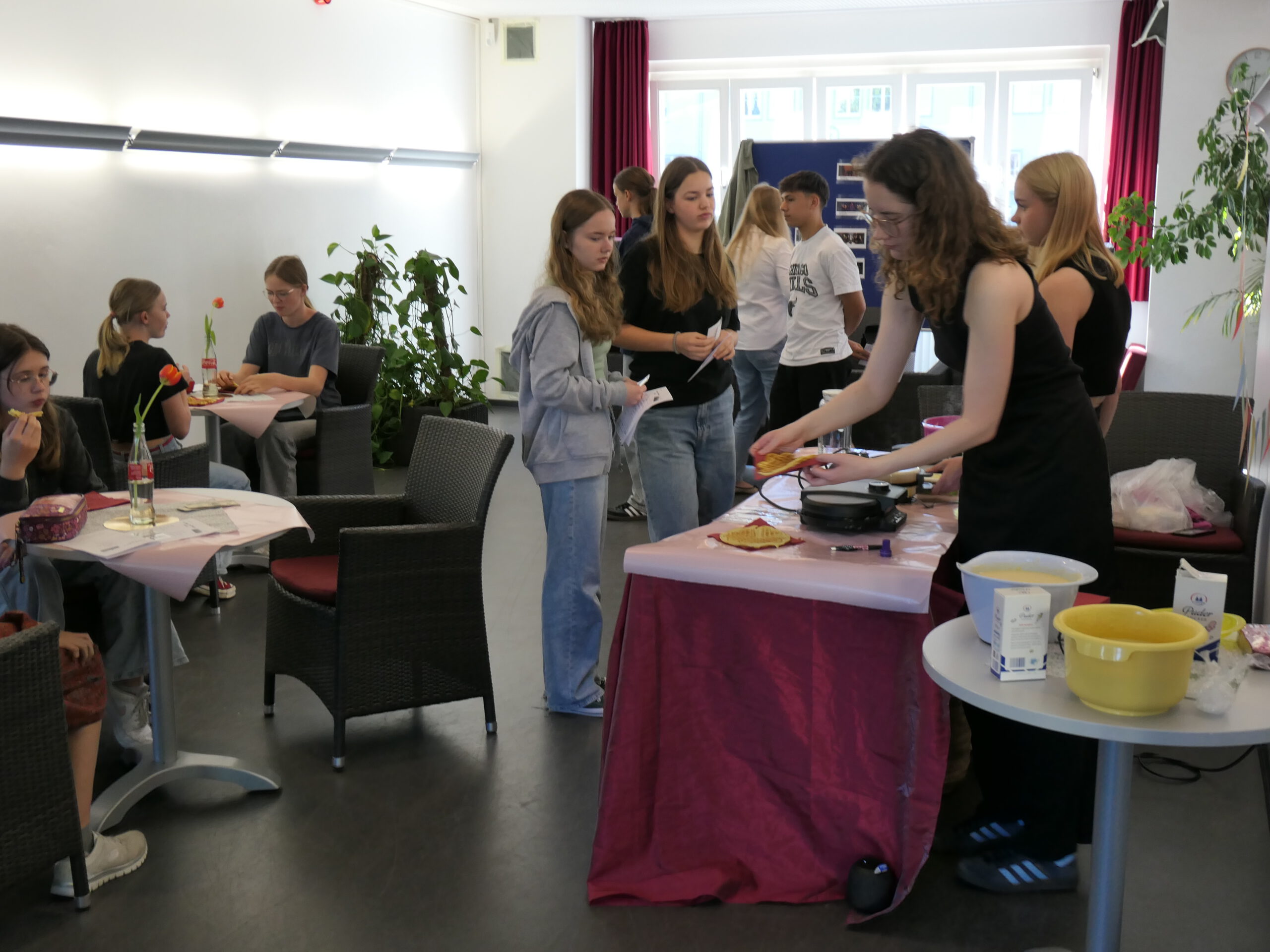 An einem Mittwoch im Mai öffneten sich die Pforten zum Sprachendorf „A Day in New York“, welches vom Deep-Profil 12 (LK Deutsch, Englisch, Politik) für den 8. Jahrgang im Rahmen des Seminarfachs durchgeführt wurde. Da wir zahlenmäßig die verschiedenen Stationen nicht hätten abdecken können, bekamen wir in diesem Jahr Unterstützung von englischsprechenden Menschen aus dem Einstein-Profil und dem 11. Jahrgang, letztere SchülerInnen, die im nächsten Jahr das Deep-Profil besuchen werden. Vielen Dank für eure großartige Unterstützung!