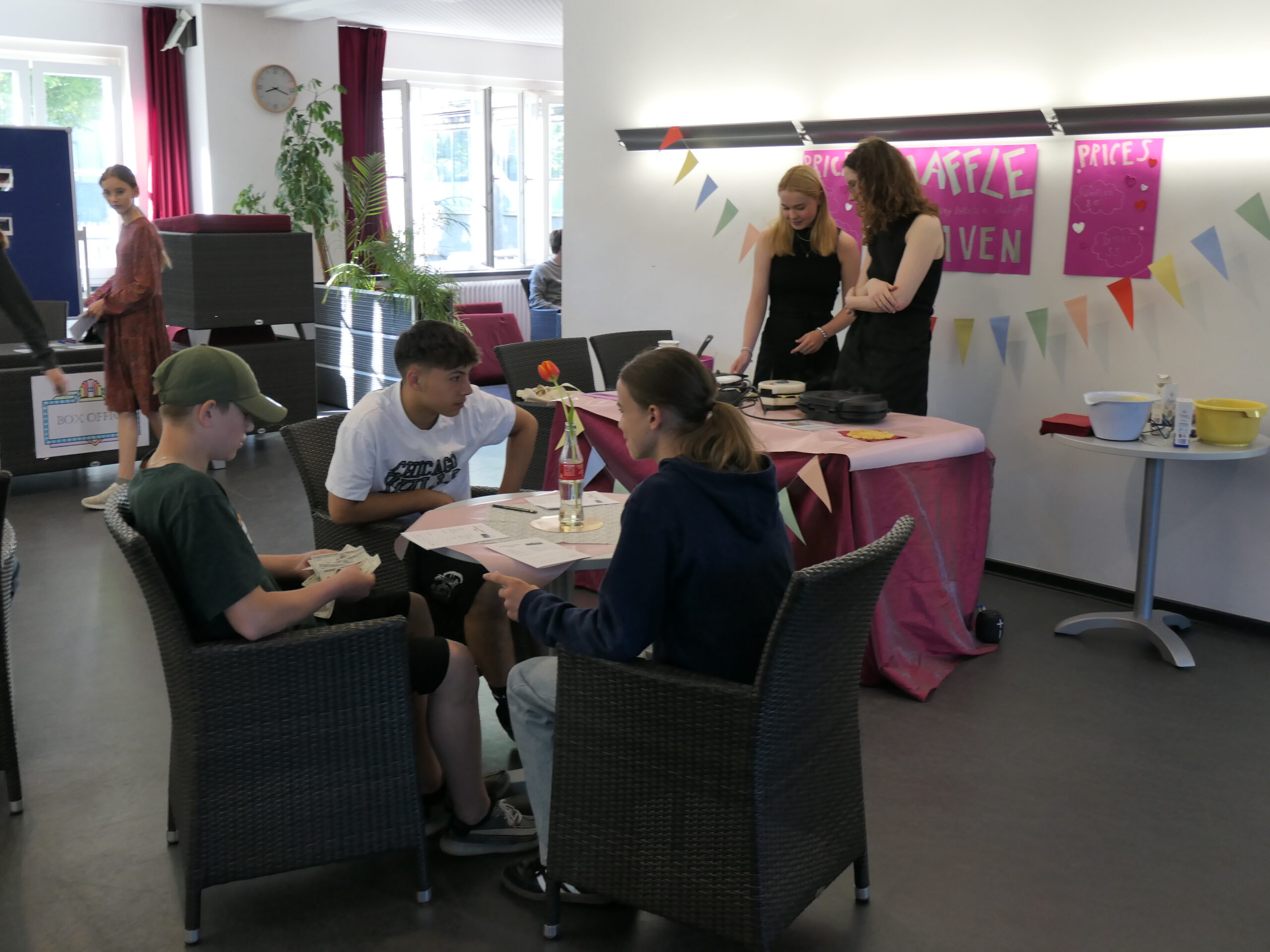 All in all eine fantastische Erfahrung für die 8. KlässlerInnen, die sich spielfreudig auf die Situationen einließen und sich auch von überraschenden Ereigniskarten nicht aus der Ruhe bringen ließen. (You left your cellphone in one of the shops! What do you do?)