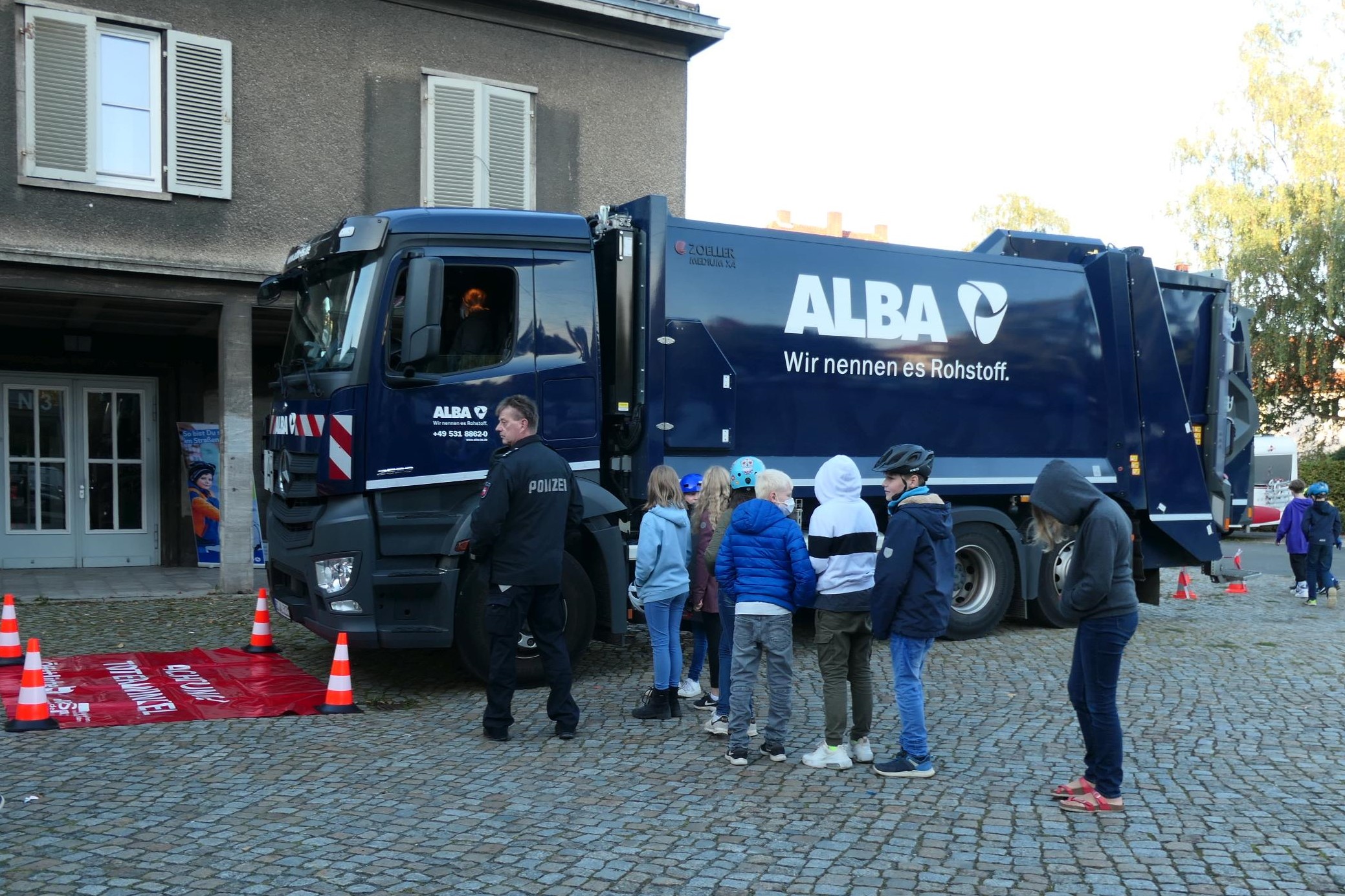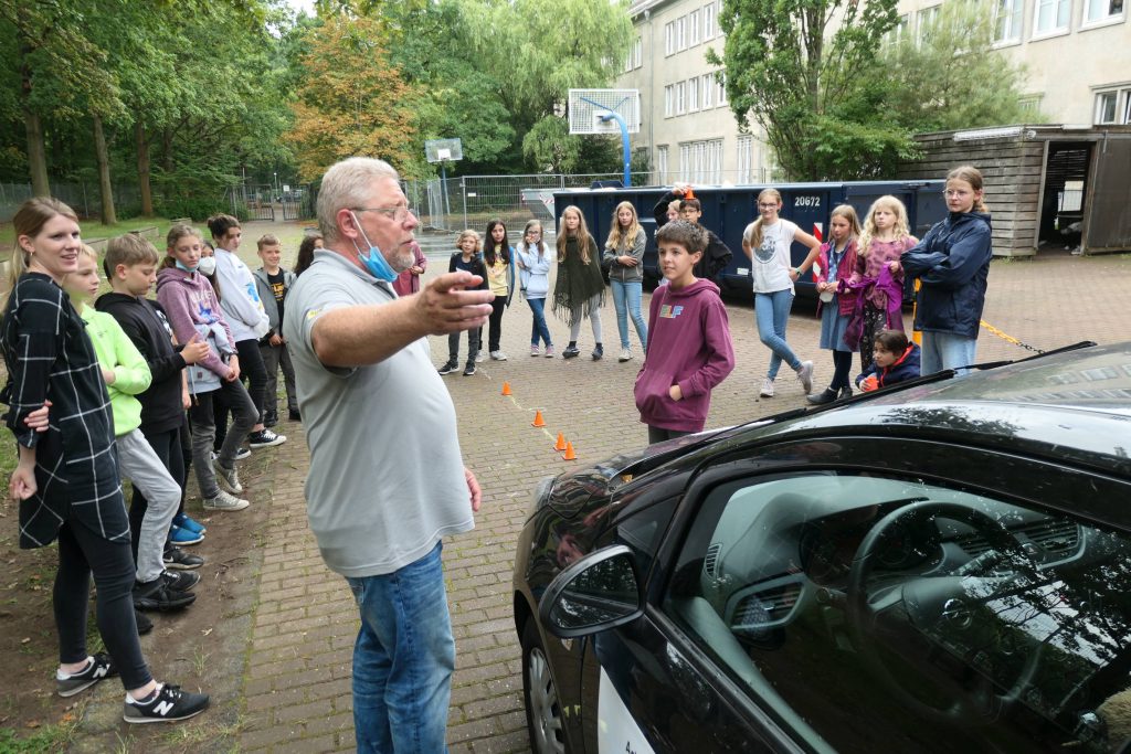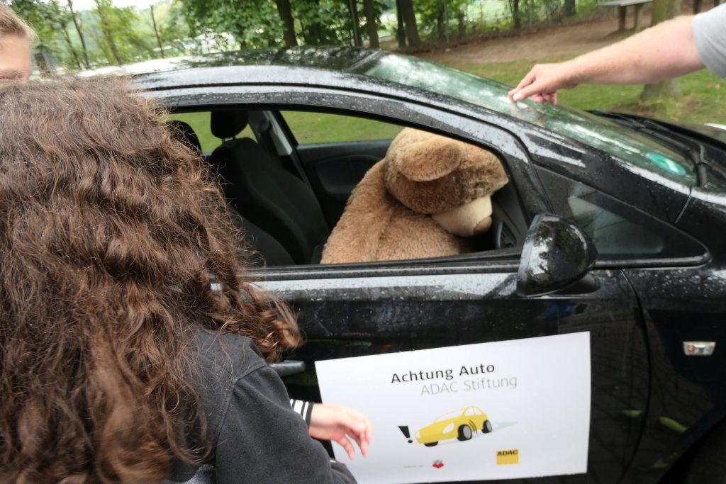Sie staunten nicht schlecht, die 4 Klassen des 6. Jahrgangs unserer Schule, als auf dem Schulhof eine Übungsstrecke samt Kfz auf sie wartete. Anhalteweg, Reaktionsweg und Bremsweg, das waren die Begriffe, die die Kinder in einer lehrreichen Doppelstunde hautnah erleben durften. Wer kann am schnellsten auf Kommando anhalten? Wer hat den kürzesten Bremsweg? Wer schätzt die Geschwindigkeit eines Autos richtig ein? Diese Fragen klärte Herr Pinkpank vom ADAC Niedersachsen/Sachsen-Anhalt mit anschaulichen Versuchen und deutlichen Schilderungen. Der Höhepunkt war dann eindeutig der Teil des Vormittags, als ein Kraftfahrzeug mit Straßengeschwindigkeit in die Vollbremsung ging. Schnell wurde allen Beteiligten klar, wie wichtig Aufmerksamkeit im Straßenverkehr ist. Denn, wenn man nur auf sein Smartphone schaut und nicht auf die Verkehrssituation allgemein, dann kann man schnell in den langen Bremsweg eines Autos kommen. Übrigens hatte unser Moderator auch seinen Kollegen Kurt mitgebracht. Ein echt starker Bären-Typ. Etwas leichtsinnig war der aber schon. Nicht angeschnallt und vorne im Auto sitzend, hat er die Vollbremsung nicht gut überstanden. Somit war deutlich klar, wie wichtig der Gurt im Kfz ist. Als dann noch ein gekochtes Ei eine wichtiges Argument für das Tragen eines Fahrradhelmes wurde, staunten alle. Warum? Da fragt doch mal die Schüler:innen der 6.1, 6.2, 6.3 und 6.4. Ihr werdet staunen!