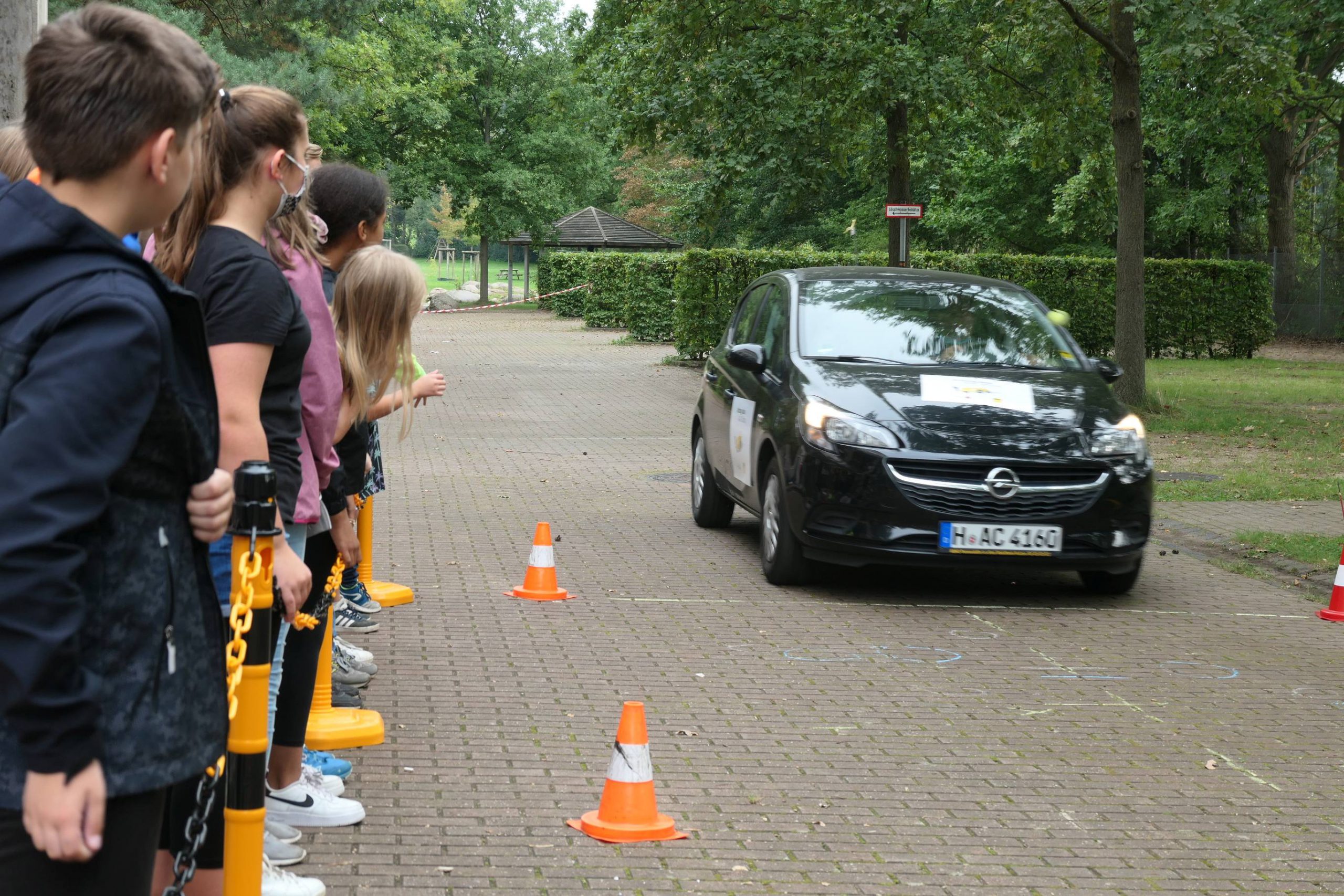 11. Oktober 2021Der 6. Jahrgang lernt die Gefahren des Bremsweges kennen