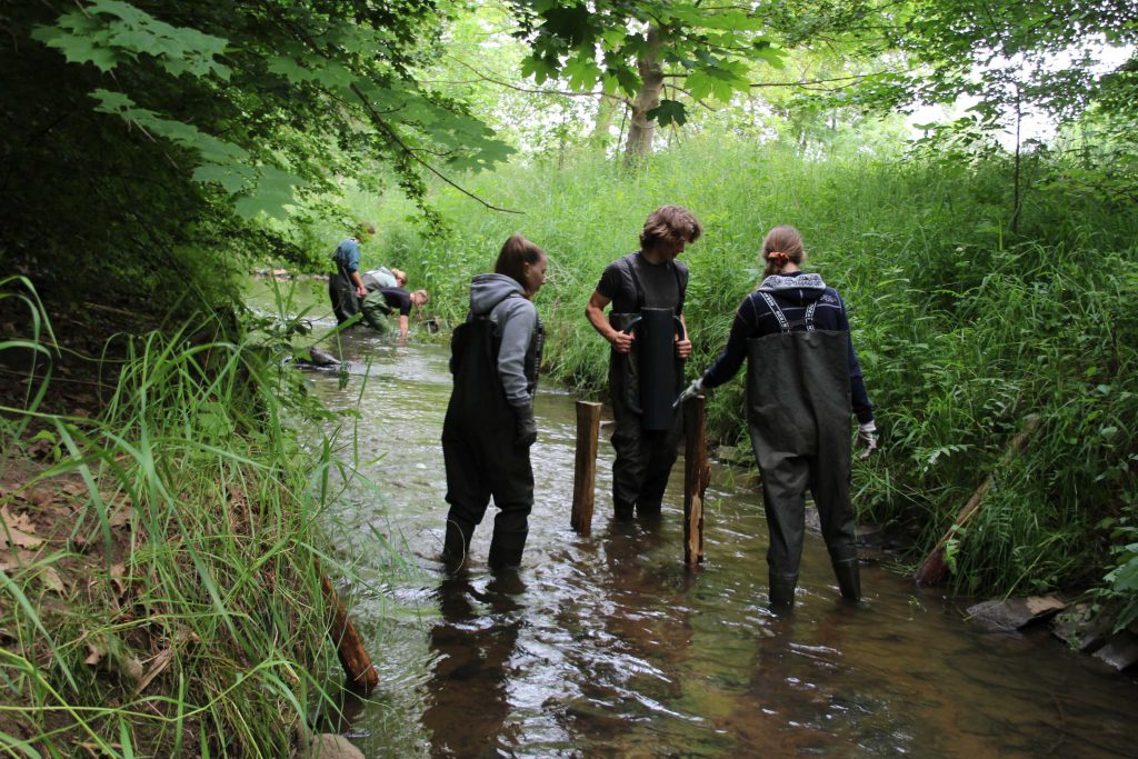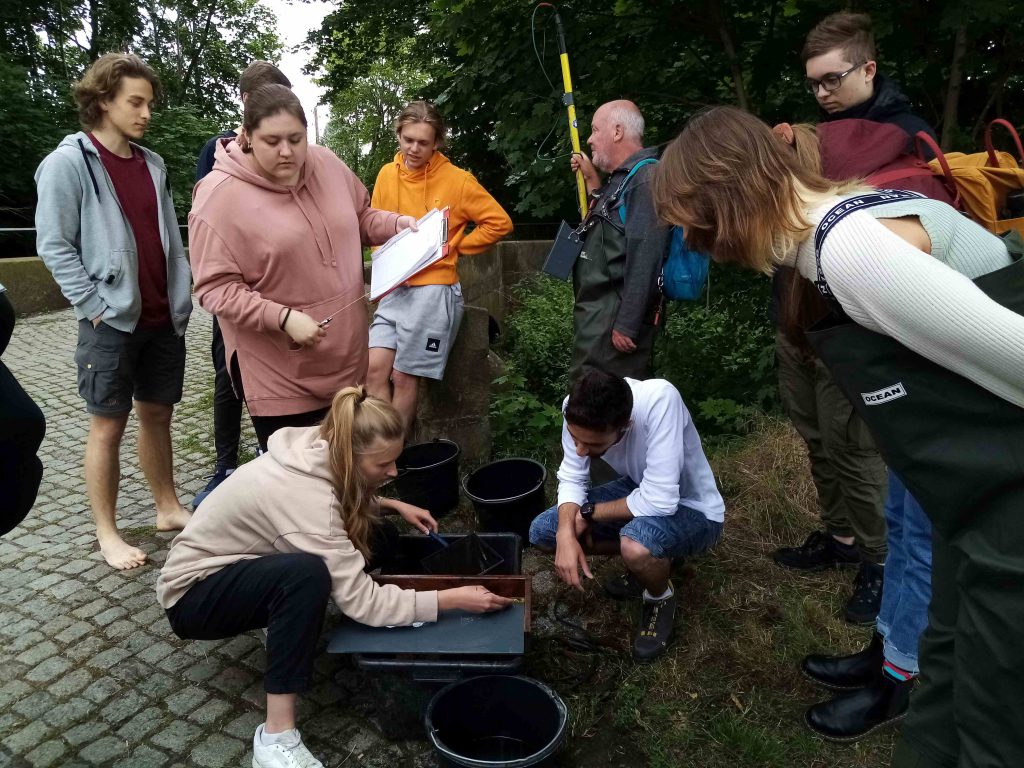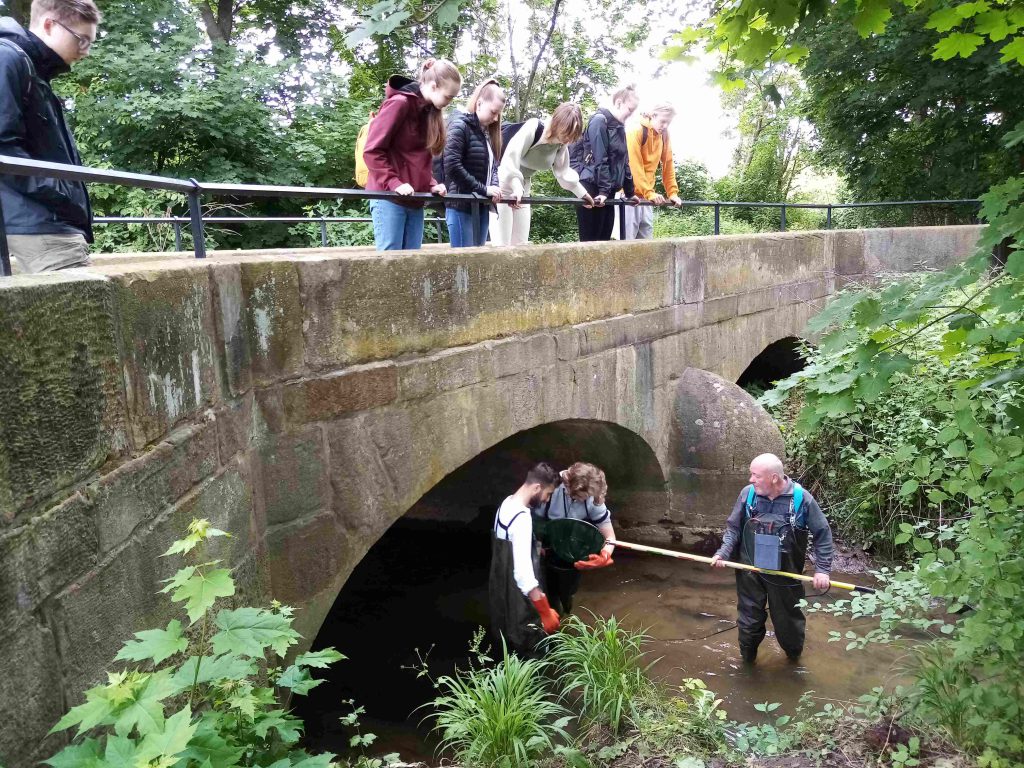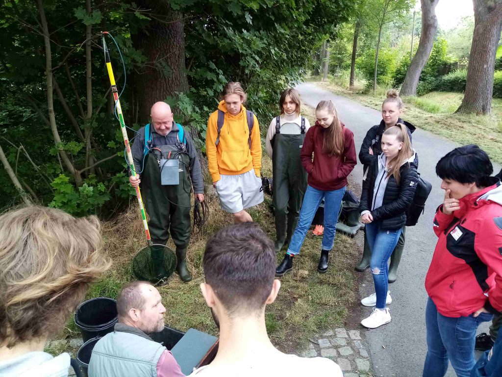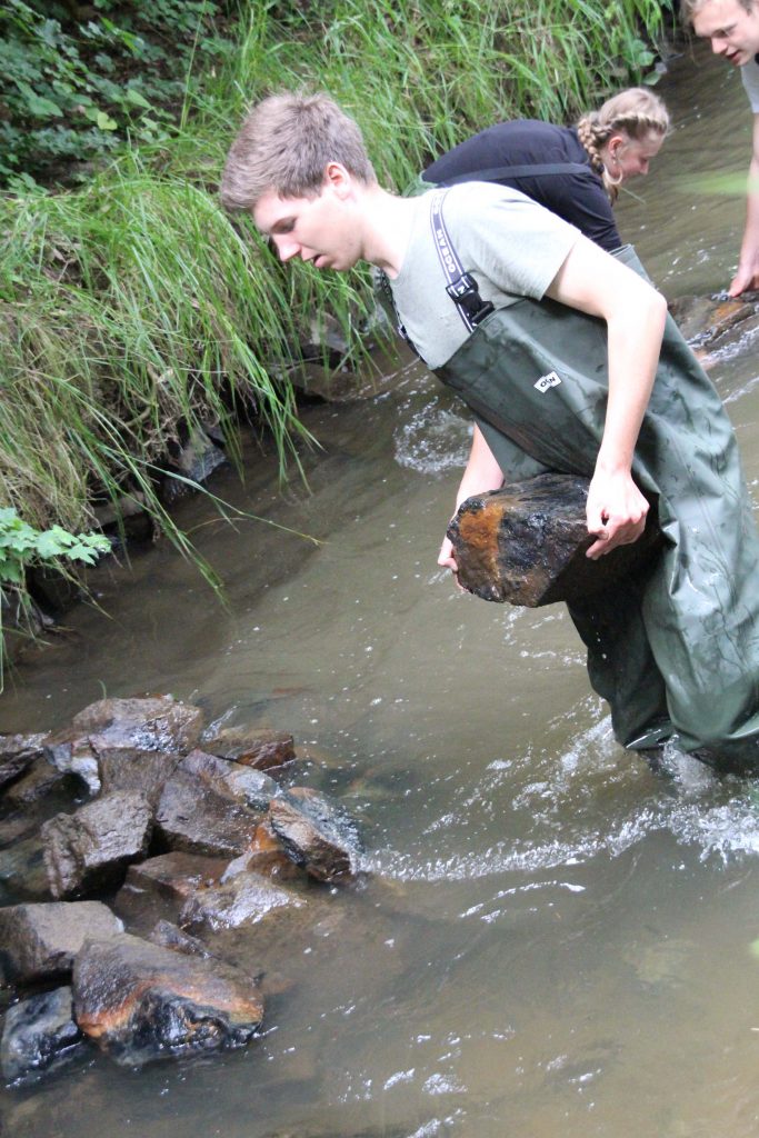 4. Juli 2021Nun schon fast traditionell nutzten die SchülerInnen des EMU-Profils des 12. Jahrgangs die Projekttage vom 23./24.06.2021 um aktiv an der Mittelriede ihr diesjähriges Fließgewässerprojekt zu einem krönenden Abschluss zu bringen. Nachdem sich die SchülerInnen (trotz Corona-Bedingungen) wochenlang mit Gewässer-Strukturgüte, chemischen Parametern und biologischer Gewässergüte mittels wirbelloser Tiere an unterschiedlichen Abschnitten der Mittelriede beschäftigt und anschließend im Rahmen des Seminarfaches präsentiert haben, folgten nun zum Abschluss des Projekts zwei weitere aktive Tage im Dienste des Naturschutzes. Am ersten Tag untersuchten die SchülerInnen unter Anleitung des Fischökologen, Herrn Ingo Brümmer den Fischbestand an ausgewählten Abschnitten des Fließgewässers. Dabei wurden die mittels einer behördlich genehmigten Elektro-Befischung gefangenen Fische bestimmt, vermessen und ordnungsgemäß protokolliert. Nicht wenige staunten dabei über den in der Mittelriede vorkommenden Fischreichtum, welcher mit bloßem Auge nicht wahrnehmbar ist. Neben Rotaugen, Döbeln, Gründlingen, Schmerlen, Groppen, Stichlingen, Forellen, Hechten, Aalen, … waren auch eine Reihe Flusskrebse nachweisbar. Getreu dem Motto: Strukturvielfalt = Artenvielfalt wurden am zweiten Tag unter Anleitung von Herrn Michal Stephan von der Unteren Wasserbehörde einige Maßnahmen im Gewässer zur weiteren Erhöhung der Strukturvielfalt tatkräftig umgesetzt. So wurden beispielsweise größere Steine bewegt und als Strömungslenker aufgeschichtet, Totholz eingebraucht und mit Pfählen fixiert oder die Uferböschung abgegraben. In diesem Jahr erstmals dabei war auch Frau Anke Kätzel (Rangerin der Stadt) von der Unteren Naturschutzbehörde. Unter ihrer Anleitung arbeiteten einige Schüler an einer künstlichen Eisvogelbrutwand, um dieser mittlerweile regelmäßig an der Mittelriede vorkommenden Vogelart eine Nistgelegenheit zu bieten. Es wurde gebohrt, geschraubt und jede Menge Spezialsand bewegt. Trotz dieser körperlich nicht immer einfachen Tätigkeiten waren alle SchülerInnen mit guter Laune und vollem Einsatz dabei und haben sich somit aktiv im Braunschweiger Naturschutz beteiligt.