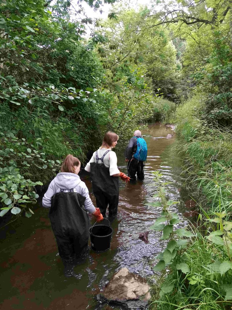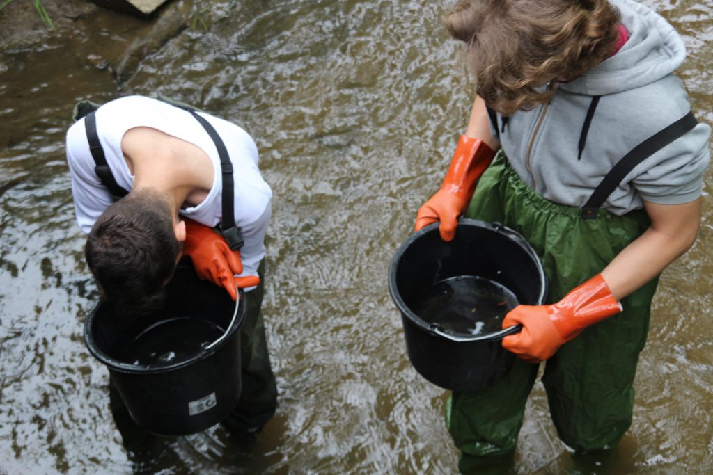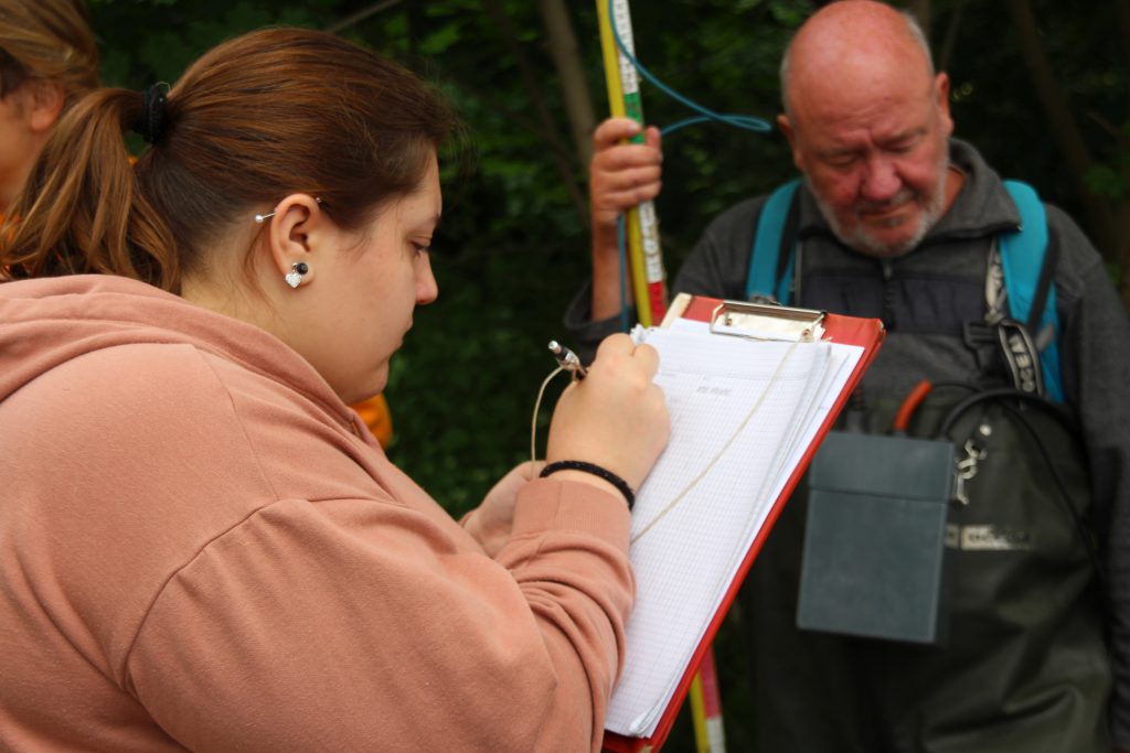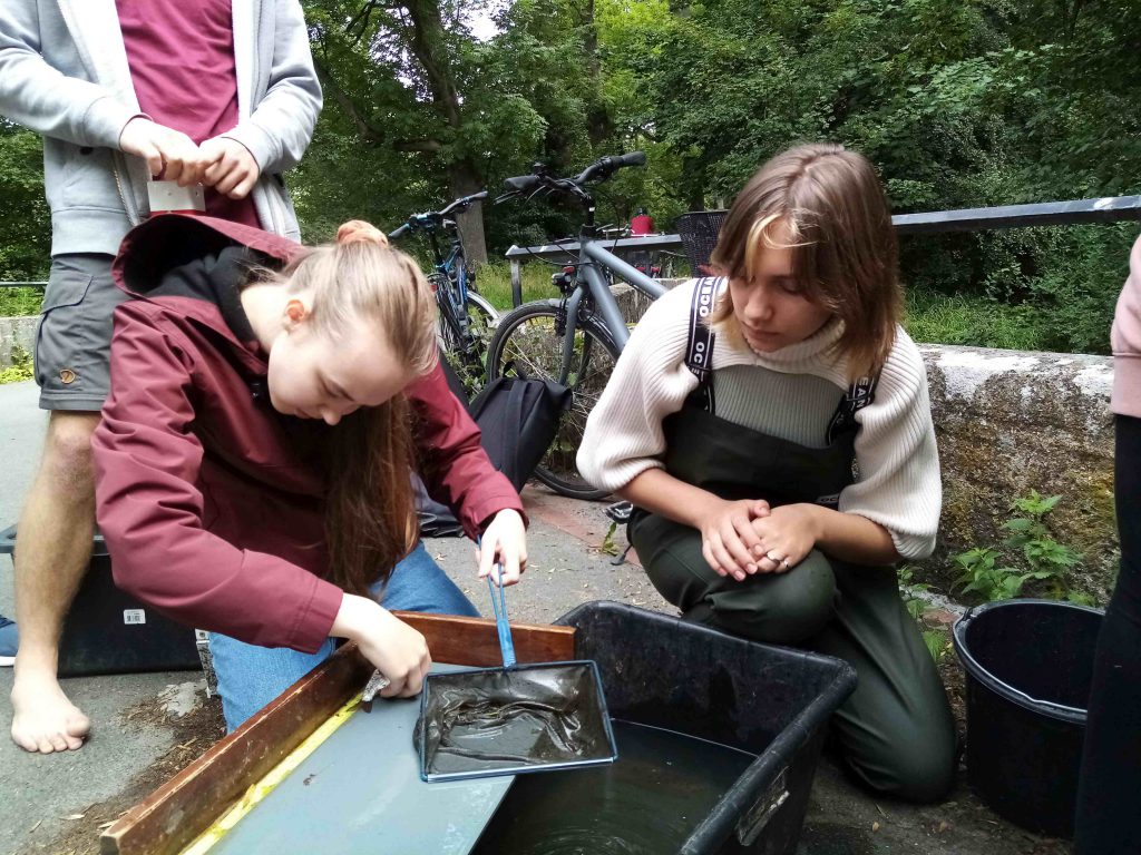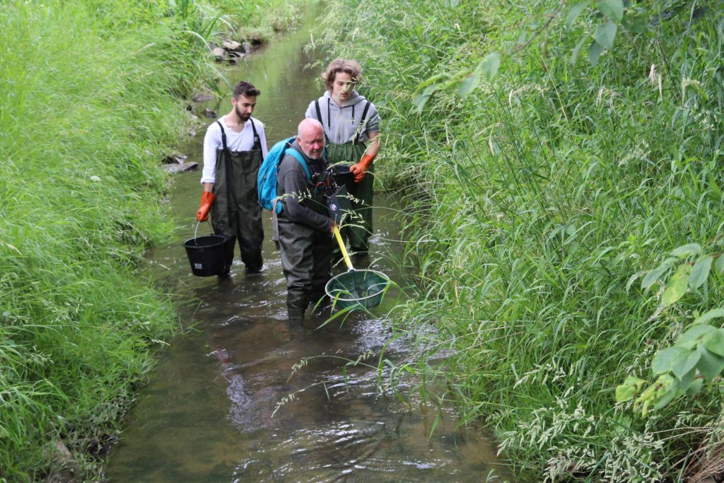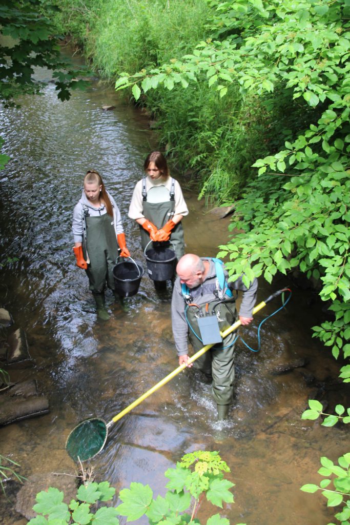 4. Juli 2021Nun schon fast traditionell nutzten die SchülerInnen des EMU-Profils des 12. Jahrgangs die Projekttage vom 23./24.06.2021 um aktiv an der Mittelriede ihr diesjähriges Fließgewässerprojekt zu einem krönenden Abschluss zu bringen. Nachdem sich die SchülerInnen (trotz Corona-Bedingungen) wochenlang mit Gewässer-Strukturgüte, chemischen Parametern und biologischer Gewässergüte mittels wirbelloser Tiere an unterschiedlichen Abschnitten der Mittelriede beschäftigt und anschließend im Rahmen des Seminarfaches präsentiert haben, folgten nun zum Abschluss des Projekts zwei weitere aktive Tage im Dienste des Naturschutzes. Am ersten Tag untersuchten die SchülerInnen unter Anleitung des Fischökologen, Herrn Ingo Brümmer den Fischbestand an ausgewählten Abschnitten des Fließgewässers. Dabei wurden die mittels einer behördlich genehmigten Elektro-Befischung gefangenen Fische bestimmt, vermessen und ordnungsgemäß protokolliert. Nicht wenige staunten dabei über den in der Mittelriede vorkommenden Fischreichtum, welcher mit bloßem Auge nicht wahrnehmbar ist. Neben Rotaugen, Döbeln, Gründlingen, Schmerlen, Groppen, Stichlingen, Forellen, Hechten, Aalen, … waren auch eine Reihe Flusskrebse nachweisbar. Getreu dem Motto: Strukturvielfalt = Artenvielfalt wurden am zweiten Tag unter Anleitung von Herrn Michal Stephan von der Unteren Wasserbehörde einige Maßnahmen im Gewässer zur weiteren Erhöhung der Strukturvielfalt tatkräftig umgesetzt. So wurden beispielsweise größere Steine bewegt und als Strömungslenker aufgeschichtet, Totholz eingebraucht und mit Pfählen fixiert oder die Uferböschung abgegraben. In diesem Jahr erstmals dabei war auch Frau Anke Kätzel (Rangerin der Stadt) von der Unteren Naturschutzbehörde. Unter ihrer Anleitung arbeiteten einige Schüler an einer künstlichen Eisvogelbrutwand, um dieser mittlerweile regelmäßig an der Mittelriede vorkommenden Vogelart eine Nistgelegenheit zu bieten. Es wurde gebohrt, geschraubt und jede Menge Spezialsand bewegt. Trotz dieser körperlich nicht immer einfachen Tätigkeiten waren alle SchülerInnen mit guter Laune und vollem Einsatz dabei und haben sich somit aktiv im Braunschweiger Naturschutz beteiligt.