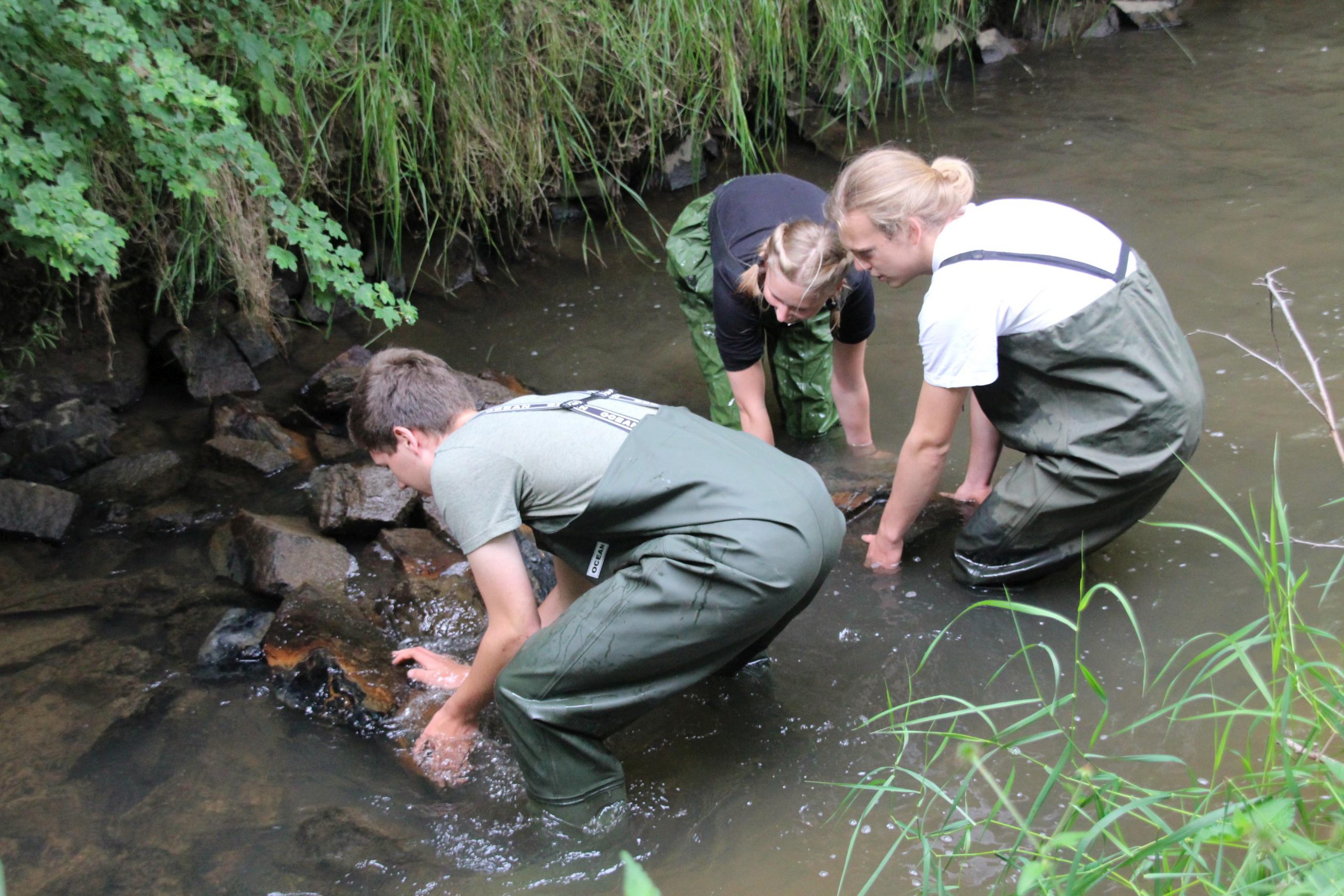 4. Juli 2021Nun schon fast traditionell nutzten die SchülerInnen des EMU-Profils des 12. Jahrgangs die Projekttage vom 23./24.06.2021 um aktiv an der Mittelriede ihr diesjähriges Fließgewässerprojekt zu einem krönenden Abschluss zu bringen. Nachdem sich die SchülerInnen (trotz Corona-Bedingungen) wochenlang mit Gewässer-Strukturgüte, chemischen Parametern und biologischer Gewässergüte mittels wirbelloser Tiere an unterschiedlichen Abschnitten der Mittelriede beschäftigt und anschließend im Rahmen des Seminarfaches präsentiert haben, folgten nun zum Abschluss des Projekts zwei weitere aktive Tage im Dienste des Naturschutzes. Am ersten Tag untersuchten die SchülerInnen unter Anleitung des Fischökologen, Herrn Ingo Brümmer den Fischbestand an ausgewählten Abschnitten des Fließgewässers. Dabei wurden die mittels einer behördlich genehmigten Elektro-Befischung gefangenen Fische bestimmt, vermessen und ordnungsgemäß protokolliert. Nicht wenige staunten dabei über den in der Mittelriede vorkommenden Fischreichtum, welcher mit bloßem Auge nicht wahrnehmbar ist. Neben Rotaugen, Döbeln, Gründlingen, Schmerlen, Groppen, Stichlingen, Forellen, Hechten, Aalen, … waren auch eine Reihe Flusskrebse nachweisbar. Getreu dem Motto: Strukturvielfalt = Artenvielfalt wurden am zweiten Tag unter Anleitung von Herrn Michal Stephan von der Unteren Wasserbehörde einige Maßnahmen im Gewässer zur weiteren Erhöhung der Strukturvielfalt tatkräftig umgesetzt. So wurden beispielsweise größere Steine bewegt und als Strömungslenker aufgeschichtet, Totholz eingebraucht und mit Pfählen fixiert oder die Uferböschung abgegraben. In diesem Jahr erstmals dabei war auch Frau Anke Kätzel (Rangerin der Stadt) von der Unteren Naturschutzbehörde. Unter ihrer Anleitung arbeiteten einige Schüler an einer künstlichen Eisvogelbrutwand, um dieser mittlerweile regelmäßig an der Mittelriede vorkommenden Vogelart eine Nistgelegenheit zu bieten. Es wurde gebohrt, geschraubt und jede Menge Spezialsand bewegt. Trotz dieser körperlich nicht immer einfachen Tätigkeiten waren alle SchülerInnen mit guter Laune und vollem Einsatz dabei und haben sich somit aktiv im Braunschweiger Naturschutz beteiligt.