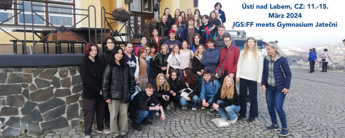 In dieser Woche ist eine Lerngruppe aus dem 10., 11. und 12. Jahrgang zu Besuch in Ústí nad Labem, nördlich von Prag in Tschechien. Gemeinsam mit den Ausrauschschüler:innen vom Gymnasium Jatečni begeben sie sich auf die Spuren von Franz Kafka. Und der NDR war dabei!