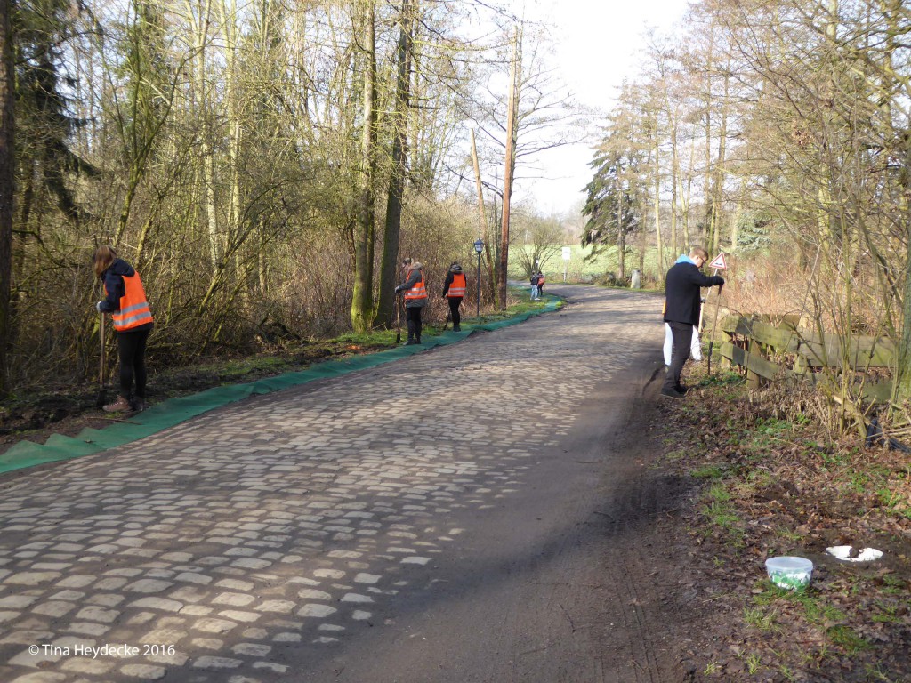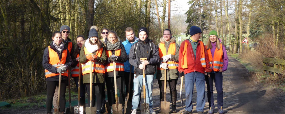 14. März 2016Am Samstag unterstützten 13 Schülerinnen und Schüler des EMU-Profils den Aufbau der Schutzzäune am Aquarius. Bei schönem Wetter wurden Gräben gezogen, Eimer in den Boden vergraben und insgesamt 400 m Zaun aufgestellt. Der Wechsel steht nun wieder als außerschulischer Lernort zur Verfügung. Während die Schülerinnen und Schüler die Wanderung der Amphibien in den Abendstunden begleiten werden, wird der 5. Jahrgang mit den Klassen morgens die in der Nacht gewanderten Frösche, Kröten und Molche in den Kauleteich aussetzen. Alle Amphibien werden dabei im Rahmen des Monitorings bestimmt und gezählt. Die Daten werden dann dem NABU übermittelt.