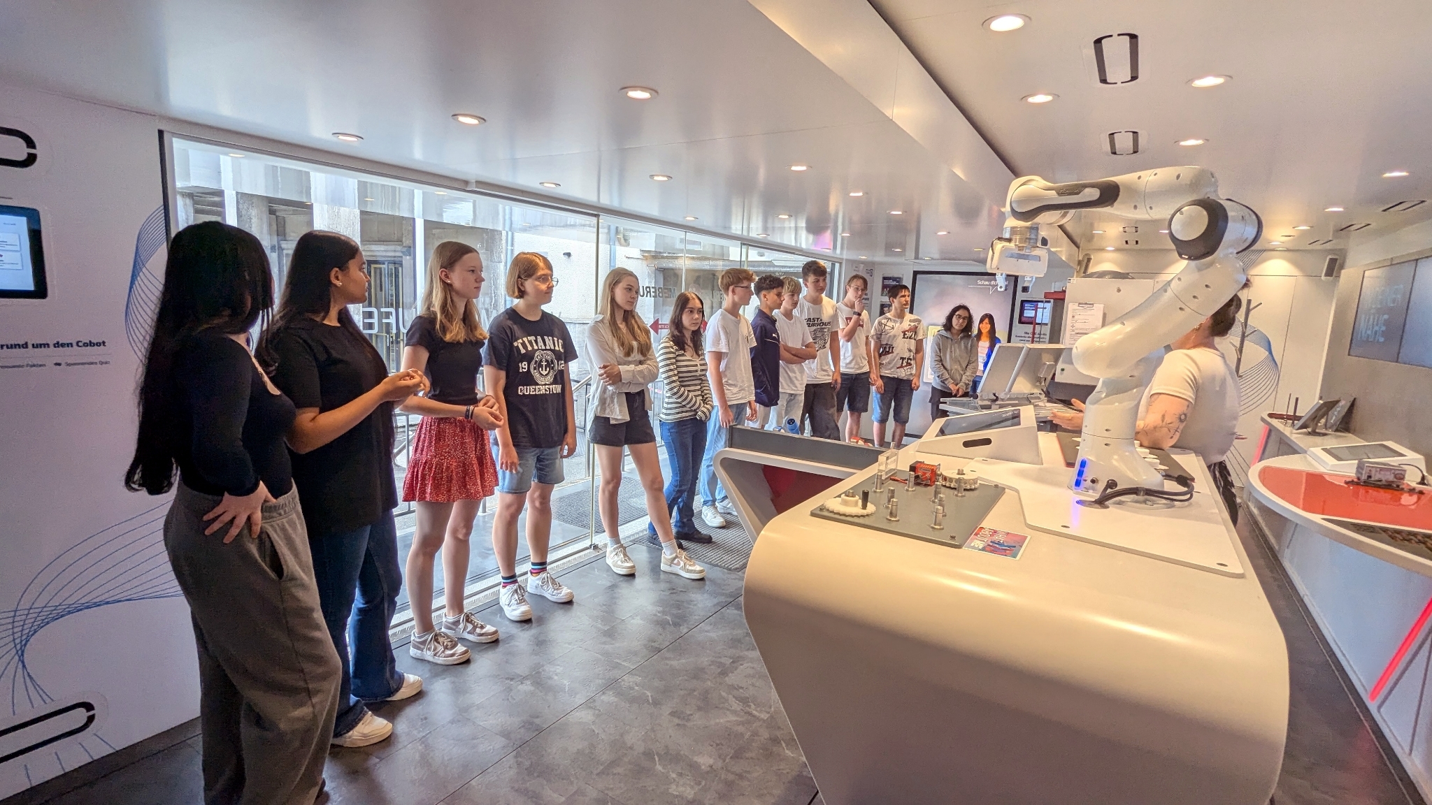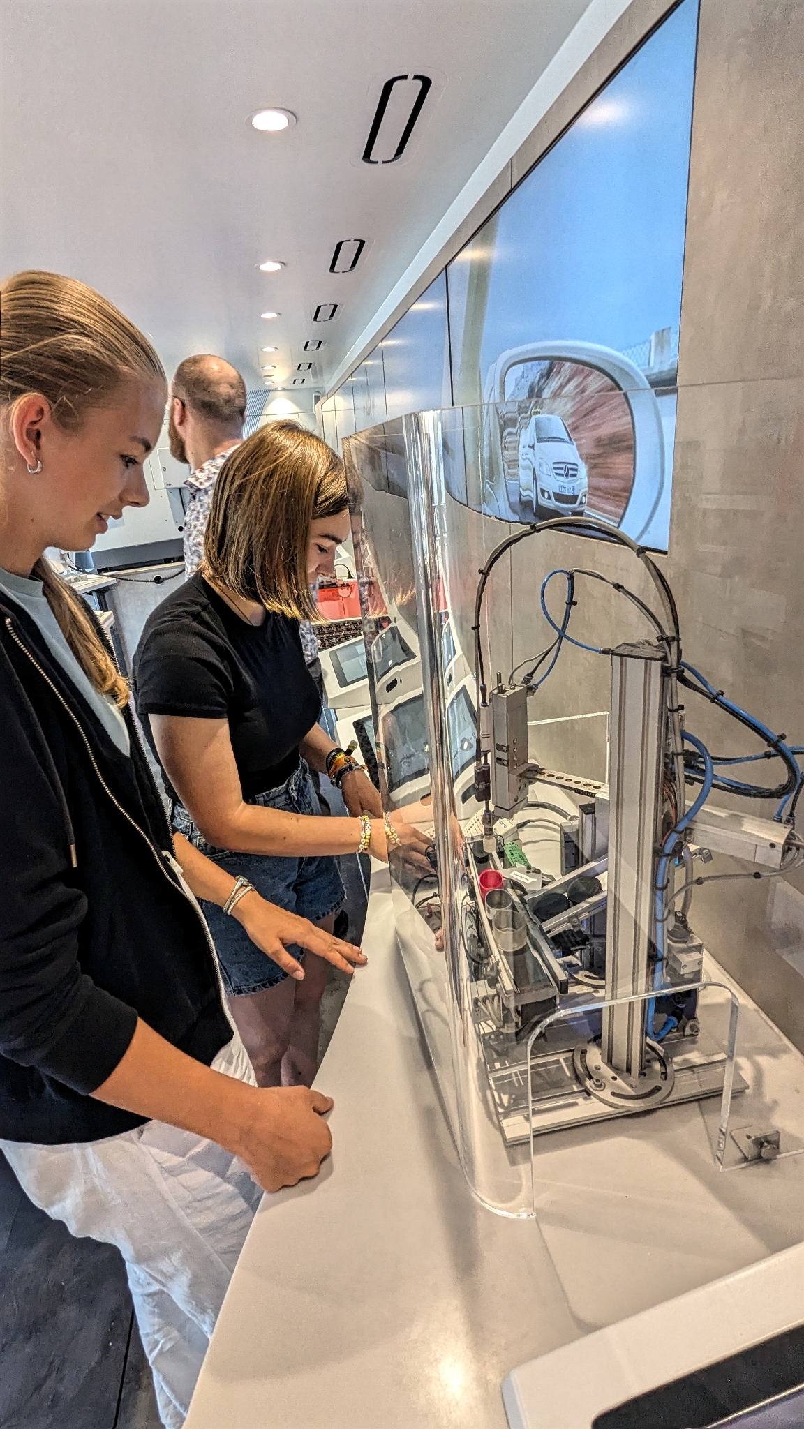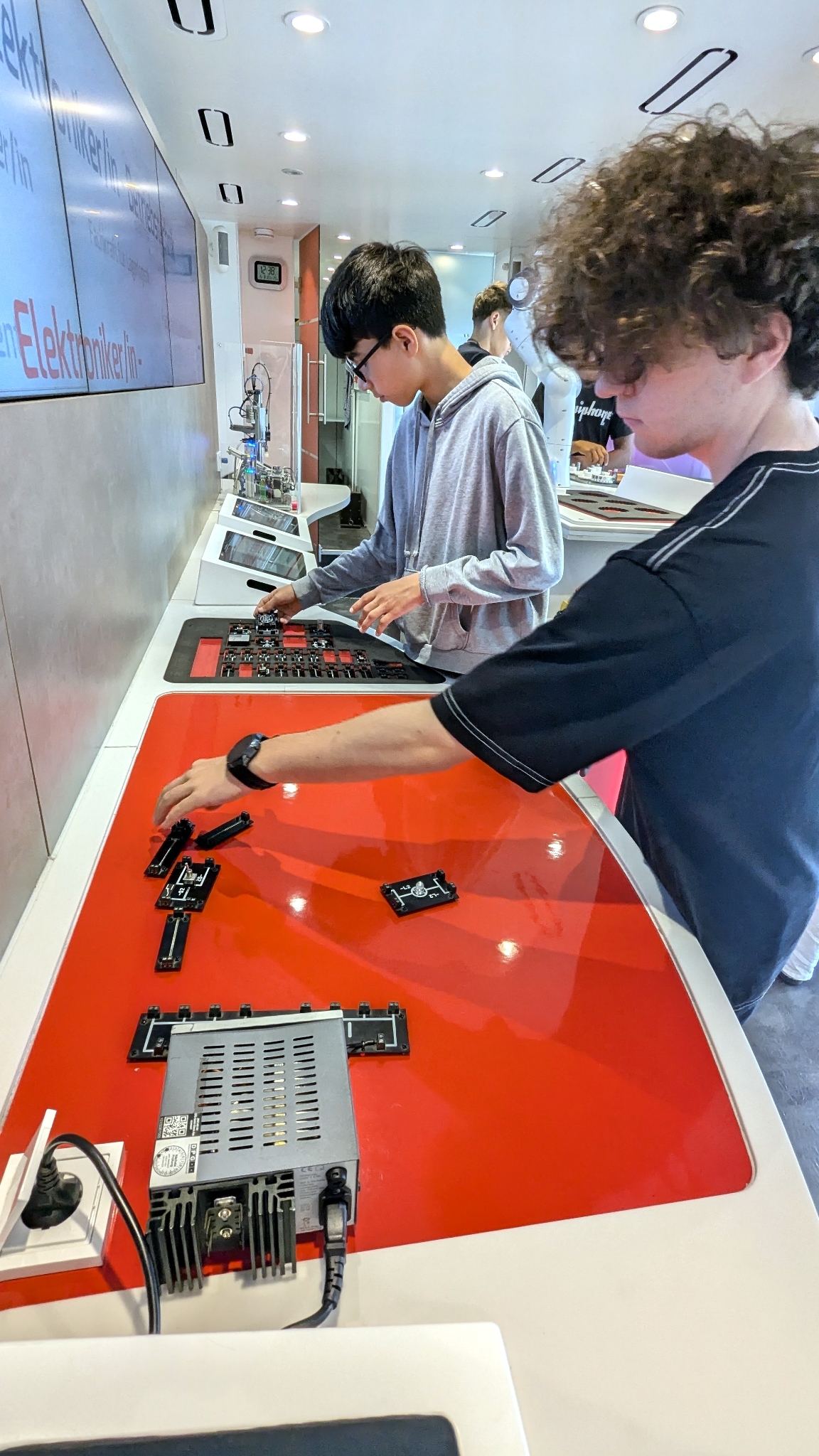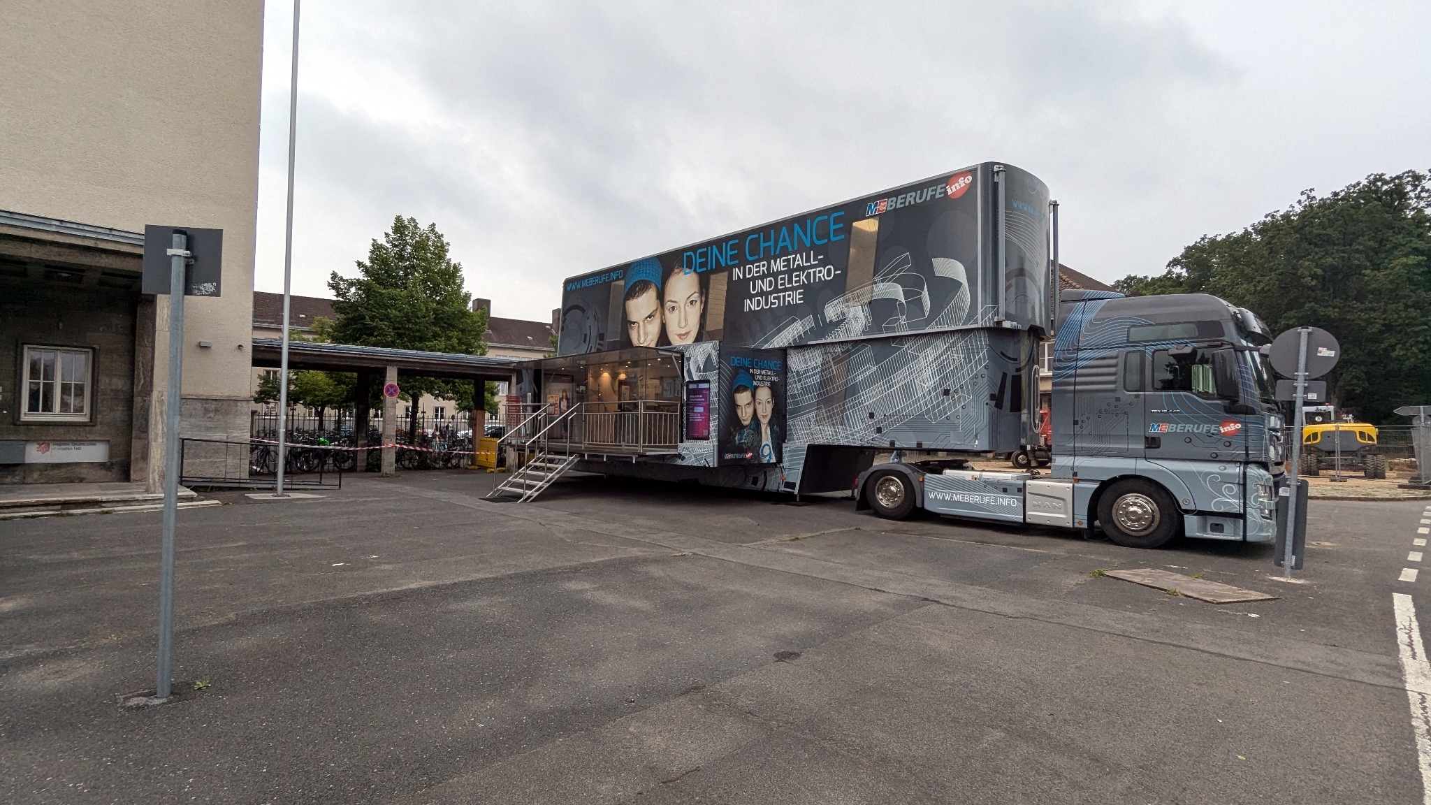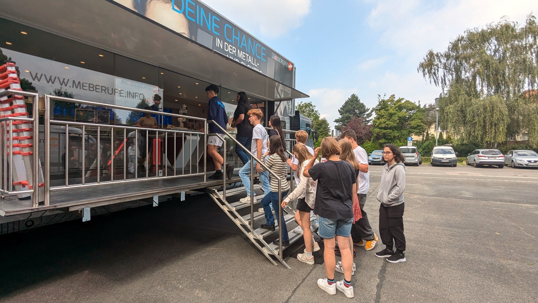 Ein LKW, 7 Meter Höhe, 2 Etagen, 80 Quadratmeter Berufserkundung zu Metallberufen und Elektronik, das bot uns der Metall- und Elektronik-Truck von der Stiftung der Metall- und Elektronik-Industrie vom 16.08. bis 19.08.2024.
