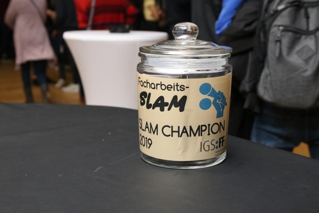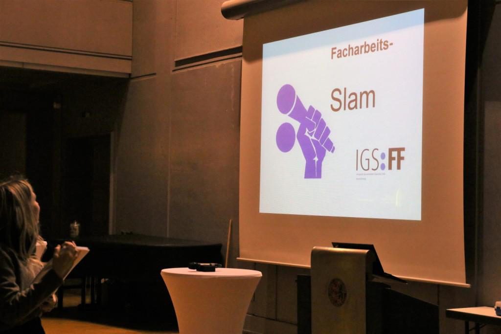 Aber was ist ein Facharbeits-Slam? Um sie auf ihr Studium vorzubereiten, müssen Schüler der Oberstufe eine wissenschaftliche Arbeit schreiben. Normalerweise wird diese dann in einem drögen Referat präsentiert. Nicht so an der IGS Franzsches Feld. Dort versuchen die Referenten, ihre Mitschüler von ihrer Arbeit zu überzeugen – und das kann auch schon mal den Schauspieler in ihnen herauskitzeln. Die besten acht Präsentationen wurden nun öffentlich von den Schülern vorgetragen.