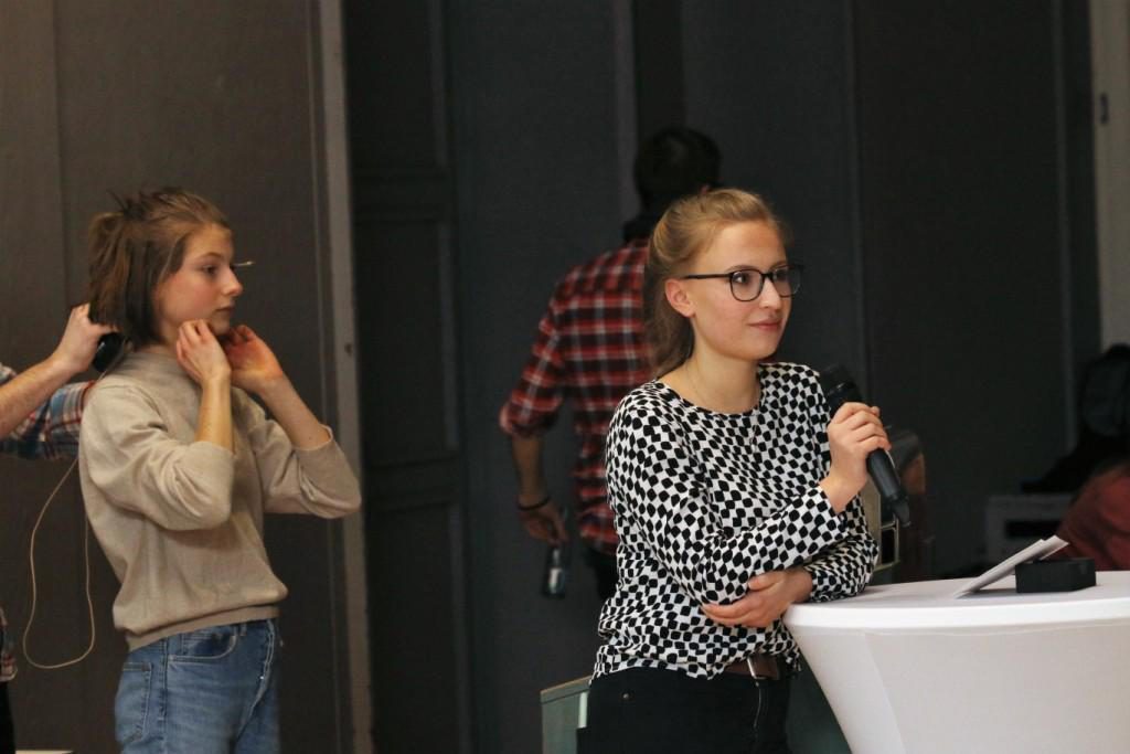 Nach der ersten Runde gibt es eine zehnminütige Verschnaufpause für Teilnehmer und Publikum. Eltern und Freunde, Lehrer und Schüler diskutieren die bisherigen Slams. Lehrerin Ute Friedrich ist stolz auf ihre Schüler. Zwar wurden die besten Präsentationen schon immer vor der ganzen Schule vorgestellt. Aber noch nie in einem so großen Rahmen wie bei diesem Slam an der Universität – zu dem einfach jeder kommen kann.