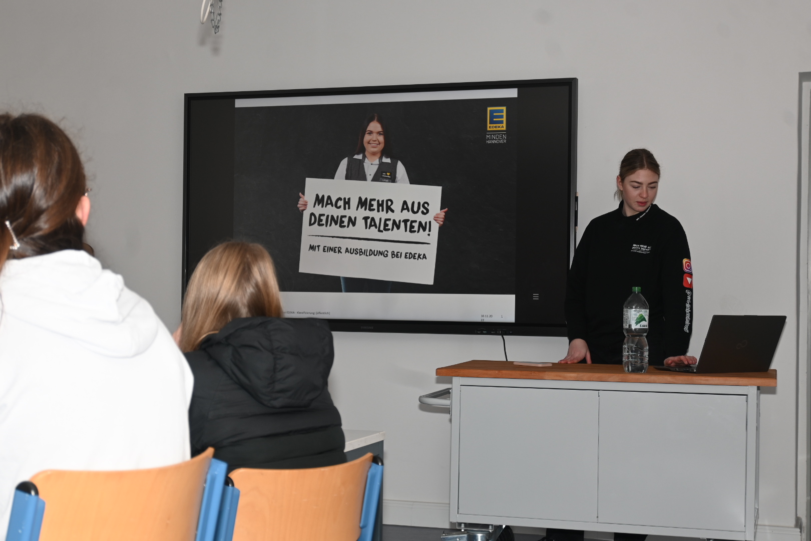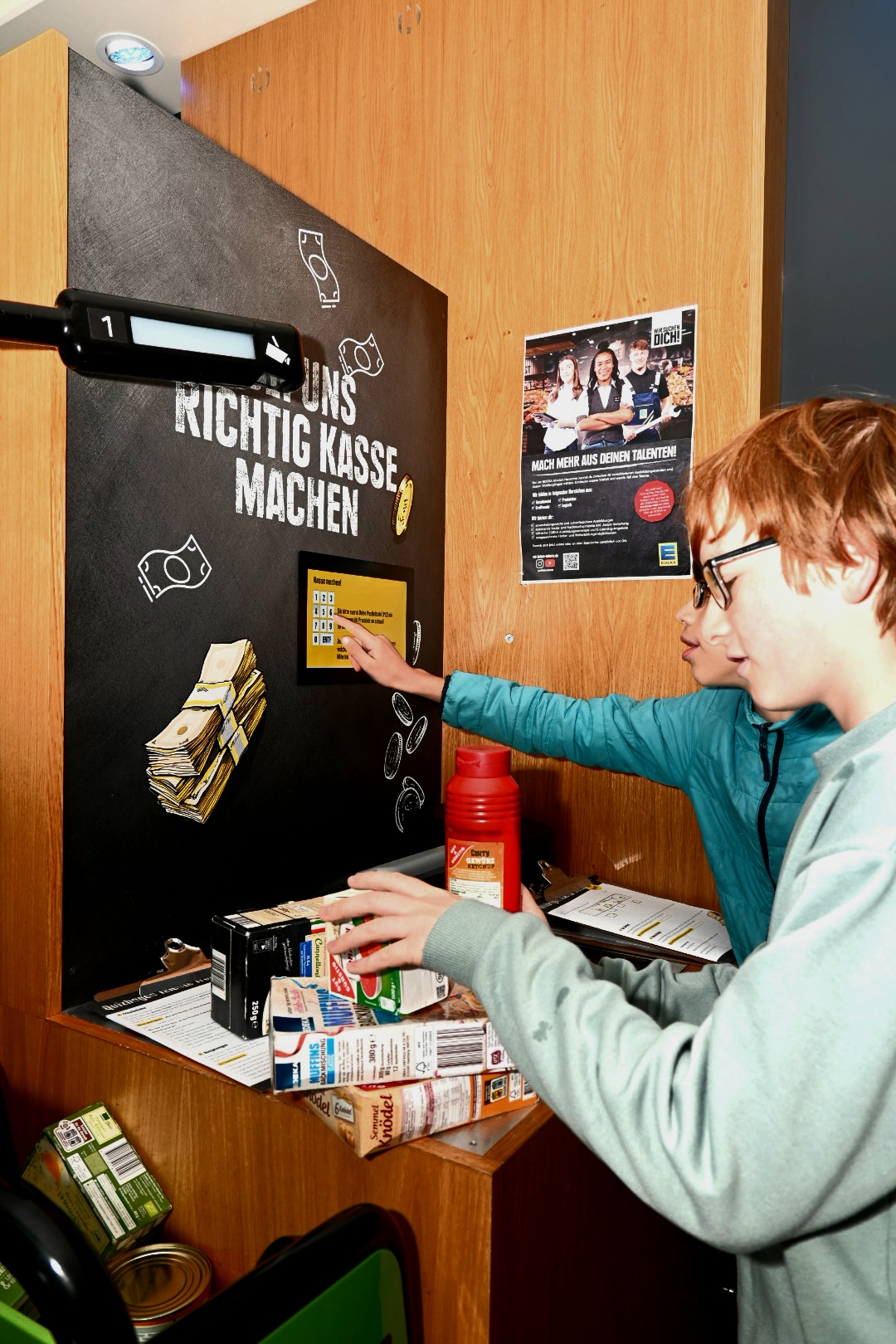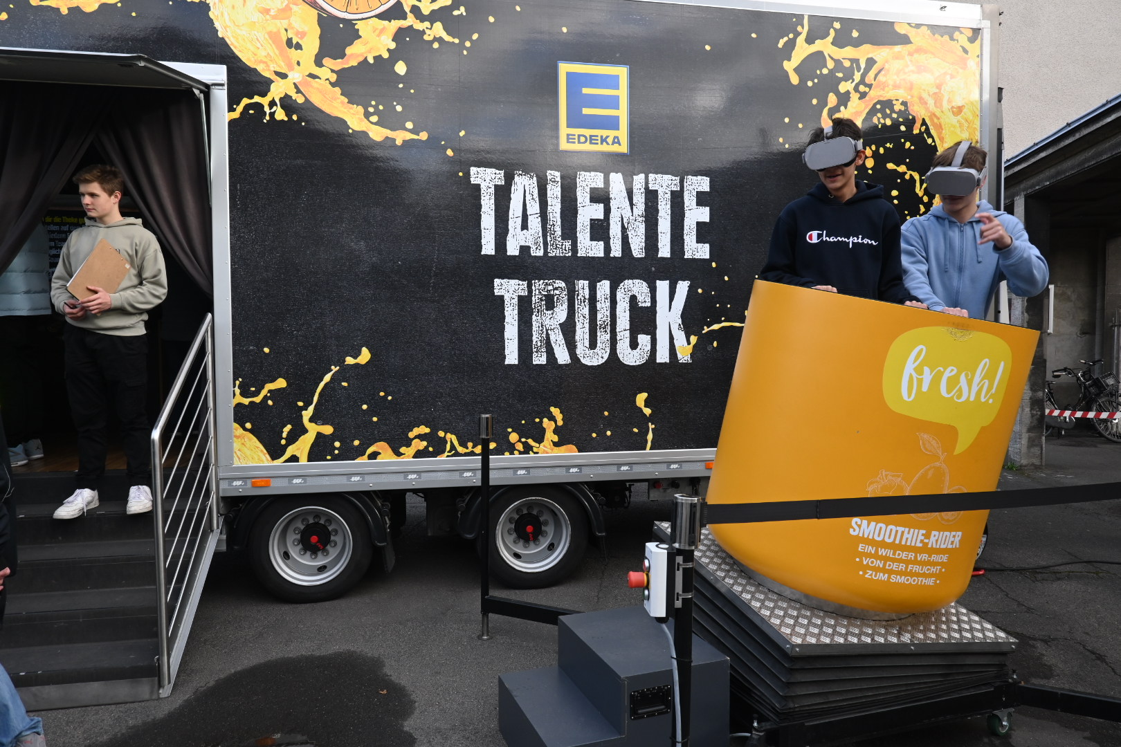 „11 Milliarden Euro Umsatz in Mitteldeutschland, 68 bundesweit!“ Bei dieser Mitteilung war allen Schüler:innen klar, dass die Berufe im Einzelhandel Zukunft haben und doch erstrebenswert sein könnten. Mit vielfältigen Aktionen klärte die Einzelhandelsbranche unsere Jugendlichen ab Klasse 8 über fachlich-praktische und theoretische Inhalte ihrer Ausbildung auf. Die Teilnehmer:innen staunten nicht schlecht, als sie die vielfältigen Mitmachaktionen ausprobierten, die der LKW hervorzauberte. Regale einräumen, Gewicht schätzen und portionieren – die Betreuer:innen Jamie-Lynn, Amanda und Sascha hatten jede Menge Stationen vorbereitet, die man als Auszubildende(r) in einem Supermarkt als tägliches Geschäft erledigen darf.