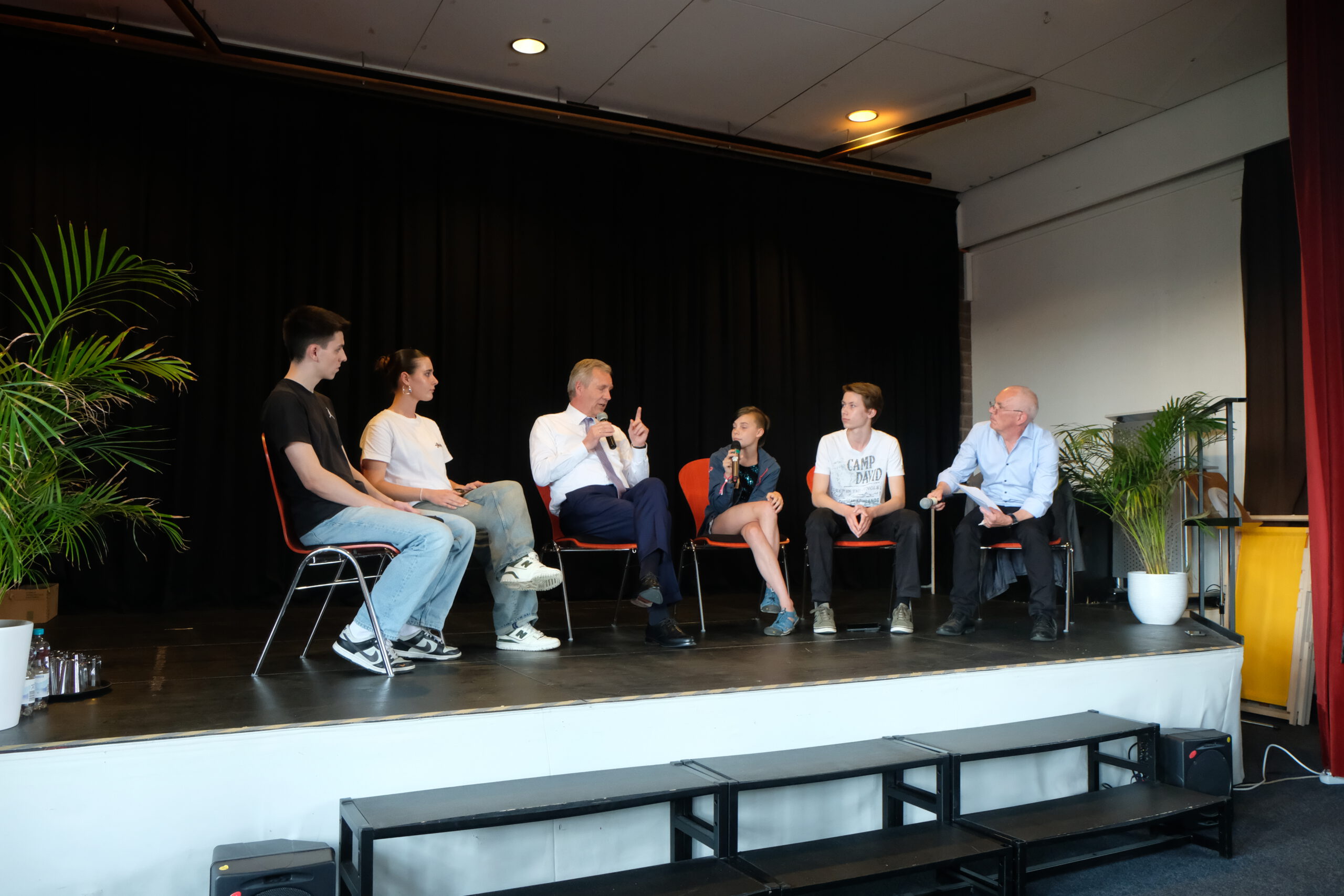 Die Moderation der Veranstaltung teilten sich zwei Schüler:innen der Kleinen Burg, Henning Noske von der BZ sowie Jette und Thede aus dem SV-Team unserer Schule. Dabei entstanden spannende Diskussionen und Redebeiträge von allen. Auch unangenehme Themen, wie beispielsweise, dass sich Christian Wulff in seiner politisch-aktiven Zeit gegen Gesamtschulen aussprach und wie er jetzt dazu steht, kamen zur Sprache.