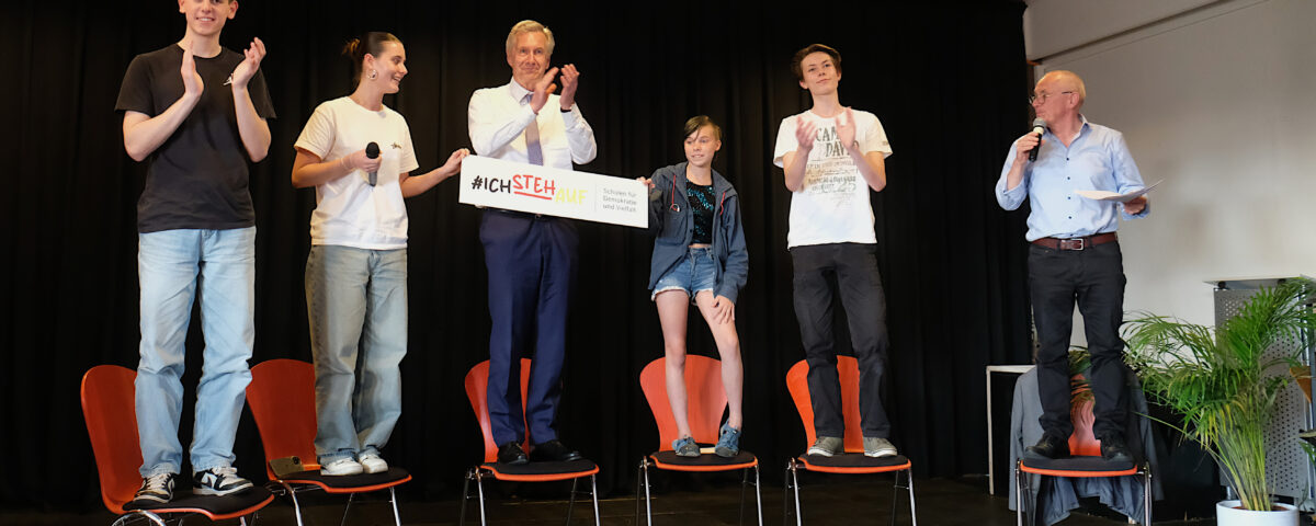 Die SV erklärte dazu, sie wolle mit der Aktion zeigen, dass sie gemeinsam mit allen Teilnehmer:innen der Veranstaltung stellvertretend für die gesamte Schüler:innenschaft unserer Schule für Demokratie ein- und aufsteht. Dies solle nicht nur ein leeres Verprechen, nicht nur eine Geste sein. Deshalb habe die SV die #IchStehAuf-Aktion auch nicht isoliert für sich, sondern im Kontext einer Auseinandersetzung mit Demokratie durchgeführt.