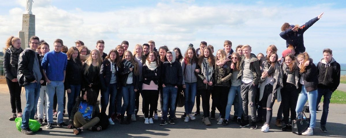 6. Mai 2017Auch in diesem Jahr machten wir uns wieder auf den Weg nach Frankreich, um unsere Partnerschule in der Normandie zu besuchen. Wir waren alle mächtig aufgeregt, schließlich erwarteten uns nicht nur eine elfstündige Reise, sondern auch Austauschschüler, die wir ja noch gar nicht richtig kannten.