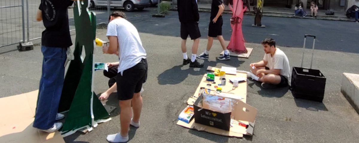Nach einer ausgiebigen Diskussionsrunde kamen die SchülerInnen auf die Idee, die Figurengruppe vor dem Haupteingang mit einer Erinnerungsstele zu ergänzen.