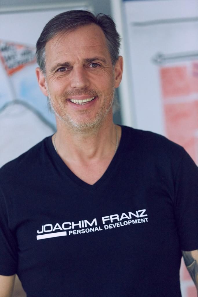 Zu Beginn des Vortrages sah man auf einer Leinwand die drei Wörter: Verantwortung, Veränderung und Vertrauen. Dann kam ein großer, tätowierter und sehr muskulöser Mann auf die Bühne: Joachim Franz. Er fing an, uns von seinem Leben zu erzählen. Er zeigte uns unter anderem ein Foto von sich, als er dreißig Jahre alt war. Man spürte wie jeder im Raum verwundert war, denn auf diesem Foto sah man keinen schlanken, sportlichen Mann, wie es wahrscheinlich jeder erwartet hätte. Nein, man sah einen dicken Mann auf einem Stuhl sitzen, der überhaupt keine Ähnlichkeit mit dem Mann hatte, der in diesen Moment vor uns stand.