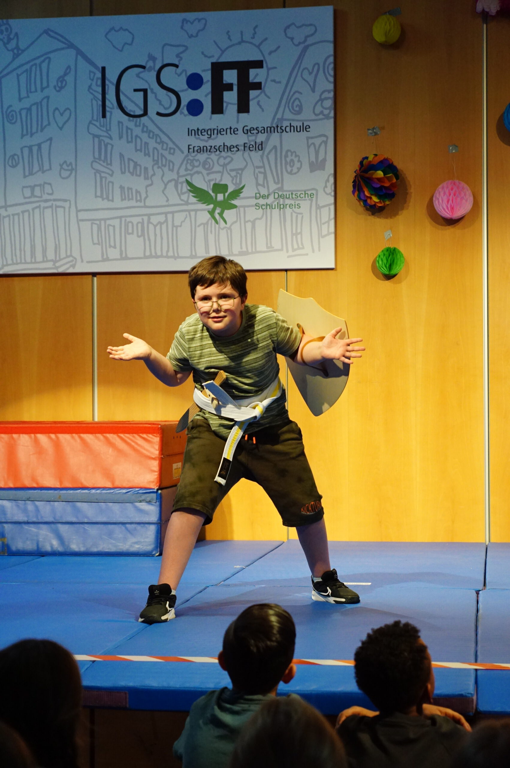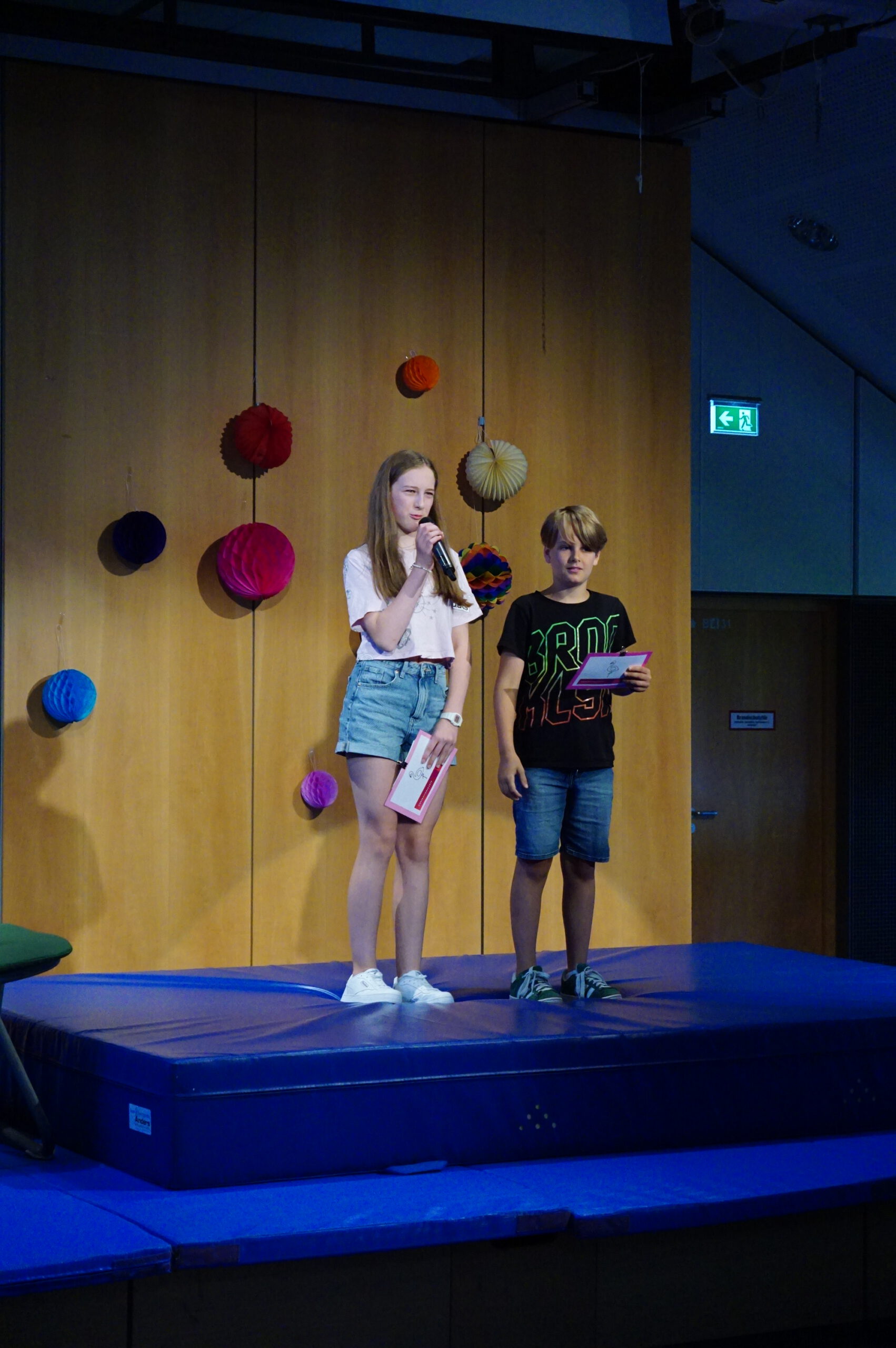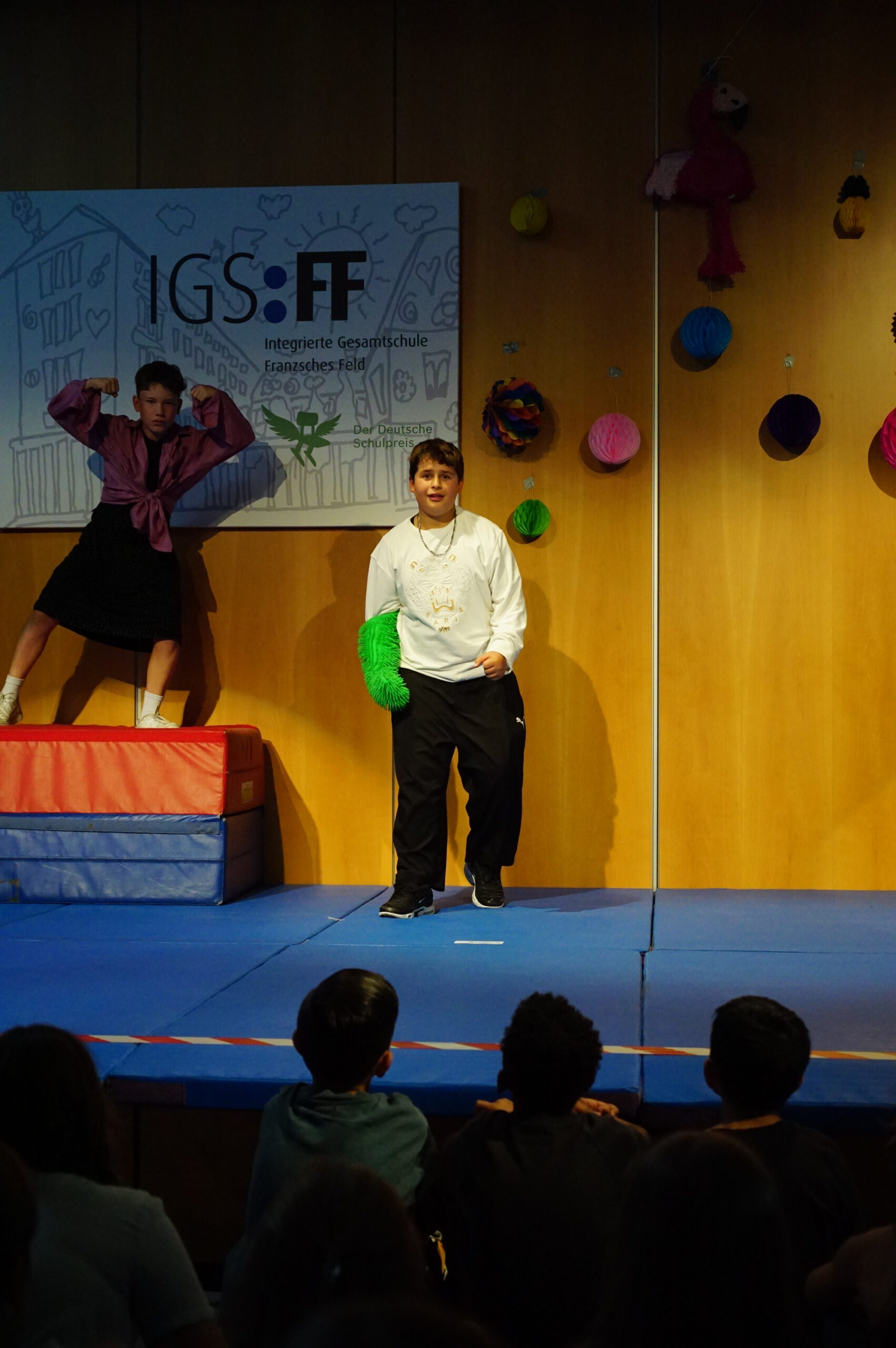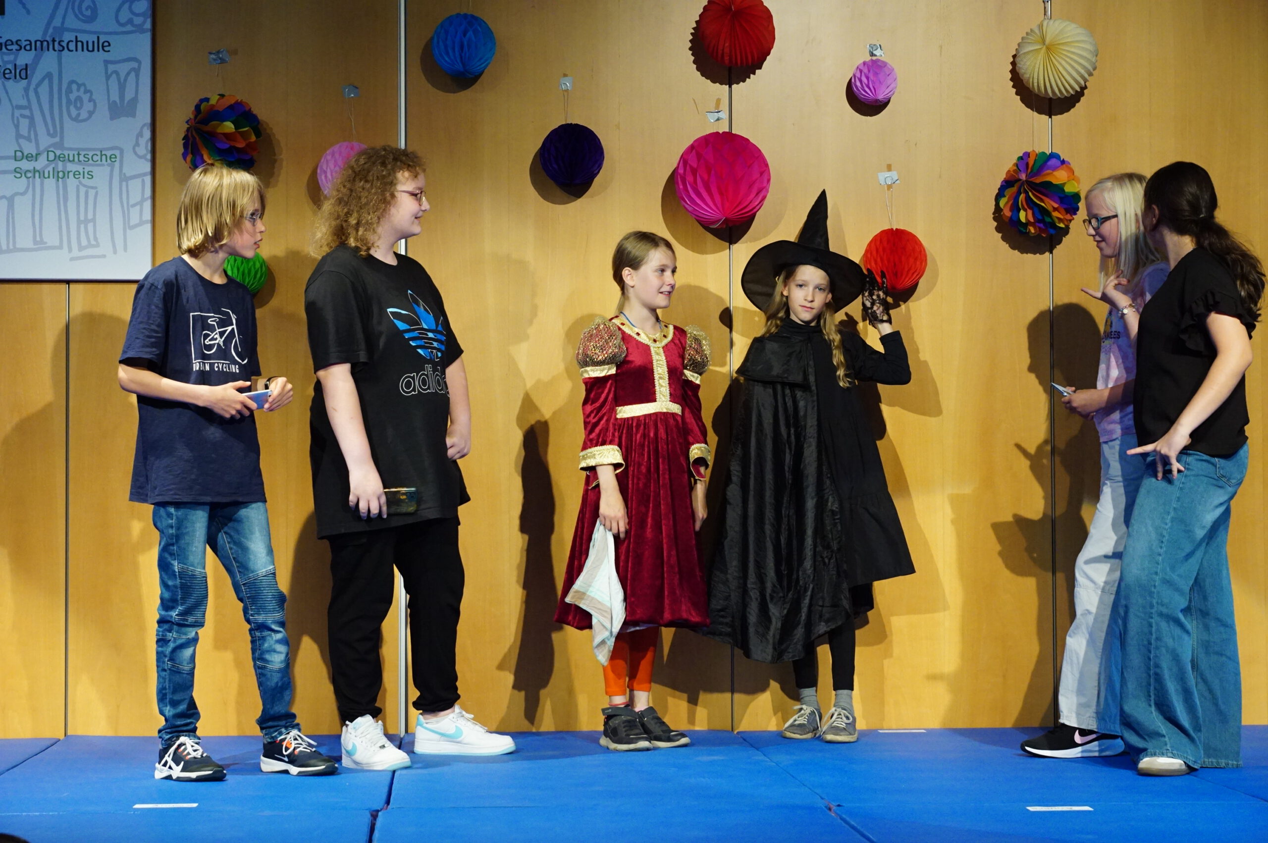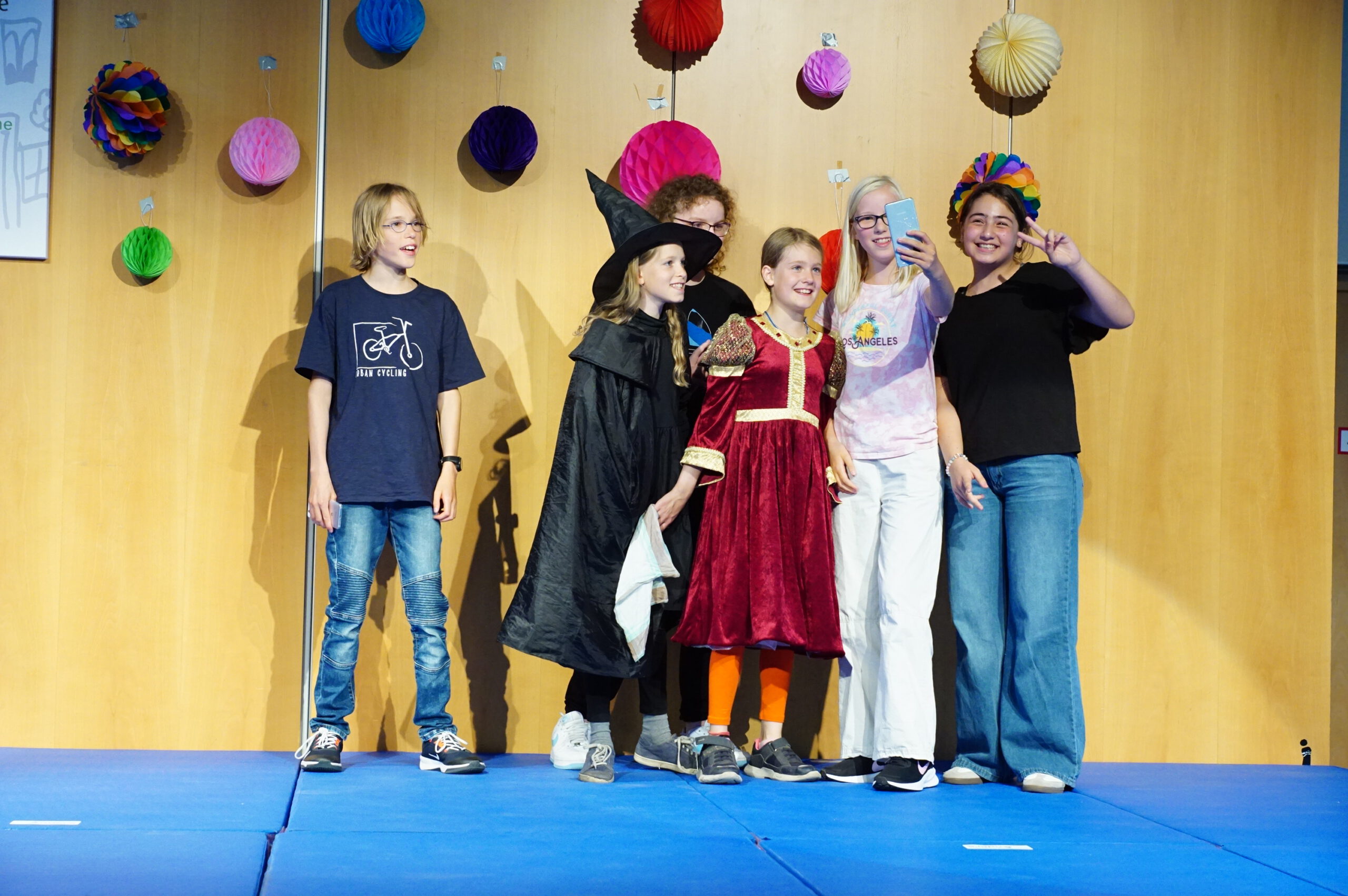 Der Nachmittag begann mit einer herzlichen Begrüßung durch Kinder aus dem 6. Jahrgang, die zu acht souverän durch das Programm moderierten. Es folgte ein mehrteiliges Theaterstück zum Thema „Märchen und Influencer“, das für viele Lacher im Publikum sorgte. Besonders die Szene mit „Rapunzel und der verspätete Prinz“ kam bei den Zuschauern gut an.