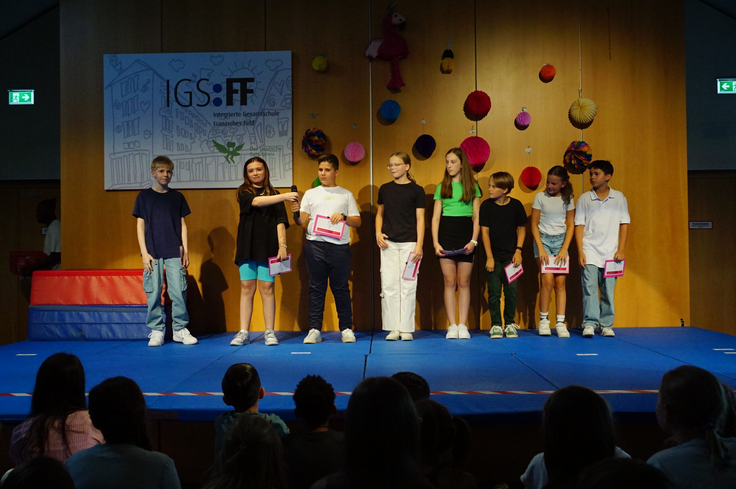 19. August 2024Am Dienstag, den 06.08.2024, gegen 14 Uhr war es so weit: Etwa 100 aufgeregte zukünftige „Fünfis“ des Flamingo-Jahrgangs flatterten gemeinsam mit ihren Familien in die Mensa der IGS:FF, um ihren ersten großen Schritt in die weiterführende Schule zu feiern.