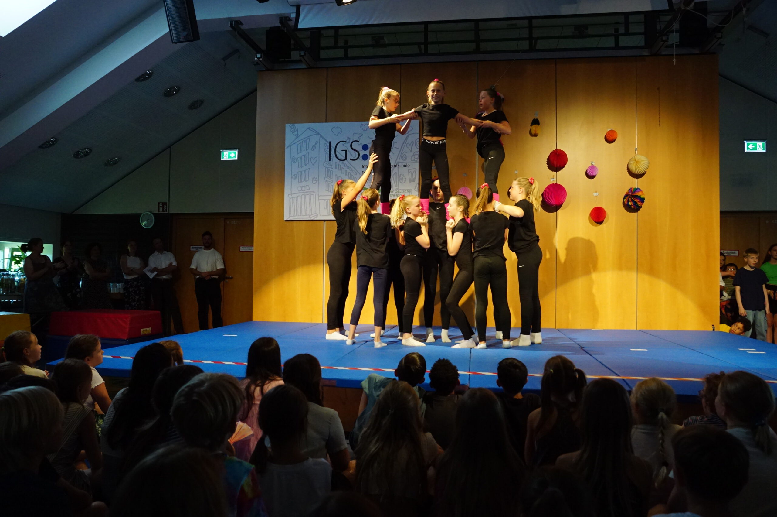 Der feierliche Nachmittag fand seinen Abschluss, als der gesamte Jahrgang, in türkisfarbenen T-Shirts gekleidet, unseren Begrüßungs-Song „Wir sind die Neuen an der IGS“ sang. Dieses beeindruckende Bild und die erleichterten Gesichter der Kinder werden sicherlich vielen in Erinnerung bleiben.