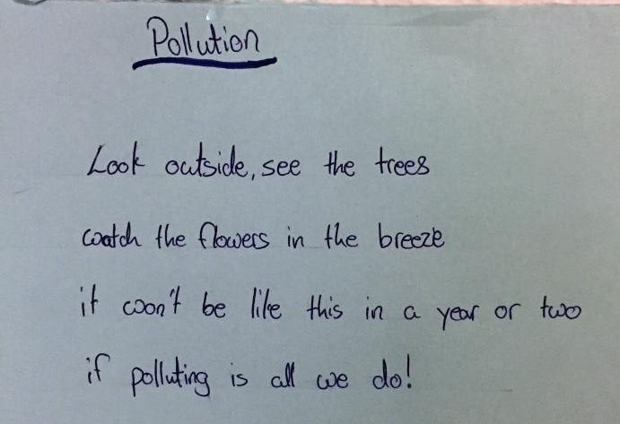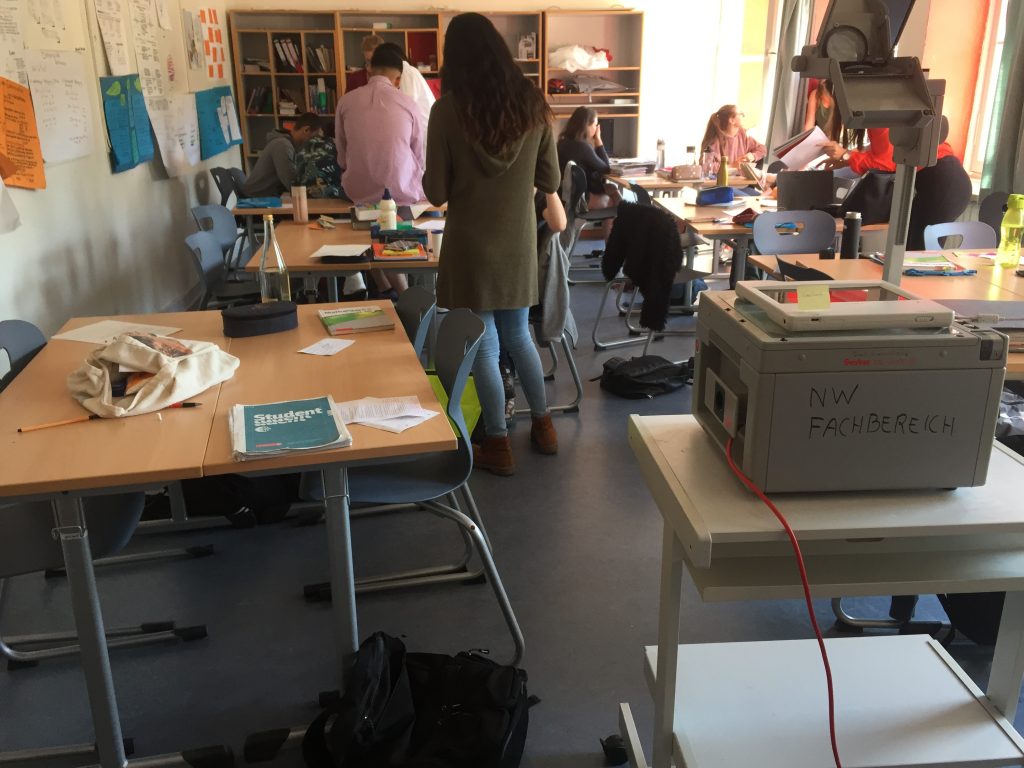 In den darauffolgenden Stunden erwiesen sich keine neuen Probleme. Der Unterricht verlief ohne Blätter zu verteilen und sonst ganz „normal“. Dem ein oder anderen wurde dann der Tag erschwert, als es um den Verzicht auf Zigaretten ging. Dem starken Bedürfnis wurde dann leider nachgegangen, sodass wir doch ein bisschen Müll auf dem Gewissen haben.