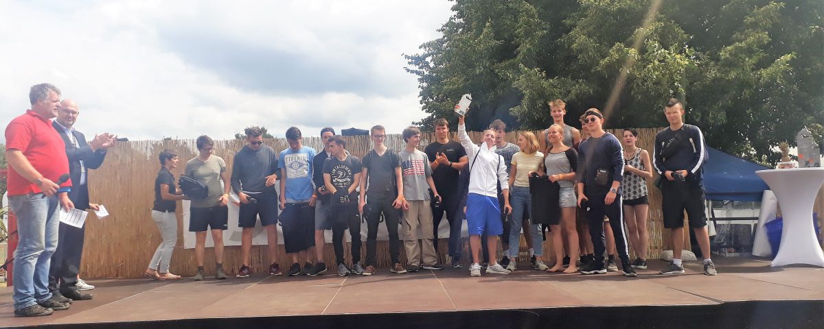 28. Juni 2018Am 18.6.18 trafen sich 18 hochmotivierte Schüler des Profils E:M-U 12, um am traditionellen Schüler-Drachenboot-Cup auf dem Salzgittersee teilzunehmen. Die Erwartungen waren hoch, schließlich hatten der Kurs gefühlt ein Dutzend riesiger und kräftiger Schülerinnen und Schüler dabei, so dass eine kleine Tutorin ausgleichbar erschien. Zudem hatte der Tutor mit der Parole „Ein Sieg für das Abitur!“ eine gewisse extrinsische Motivation gesetzt. Ausgestattet mit allerlei Dingen, die eine vorzügliche Verpflegung der Mann-/Frauschaft sowie eine Überbrückung zwischen Trainings- und Qualifikationsläufen sicherstellten, wurde schon vor dem ersten Rennen das Erreichen der Fachhochschulreife gefeiert. Schon beim Trainingslauf wurde klar, dass der Kurs den hohen Erwartungen gerecht werden kann. Im Qualifikationsrennen, das locker mit einer Bootslänge Vorsprung gewonnen werden konnte, wurde dann gleich die zweitbeste Zeit des gesamten Teilnehmerfelds gepaddelt und die direkte Qualifikation für das große Finale erreicht werden. Angestachelt von Mikas furchteinflößendem Schlachtruf, angetrieben von Constis präzisem Trommelschlag und getragen vom adrenalingeschwängerten Siegeswillen konnten wir im Finale unsere Zeit um noch einmal 3 Sekunden verbessern, mussten uns aber u.a. dem Titelverteidiger und Local Hero aus Salzgitter geschlagen geben. Ein verdienter 3. Platz sorgte für großen Jubel und eine stählerne Trophäe, die den Kursraum sicherlich bis zum Abitur schmücken wird.