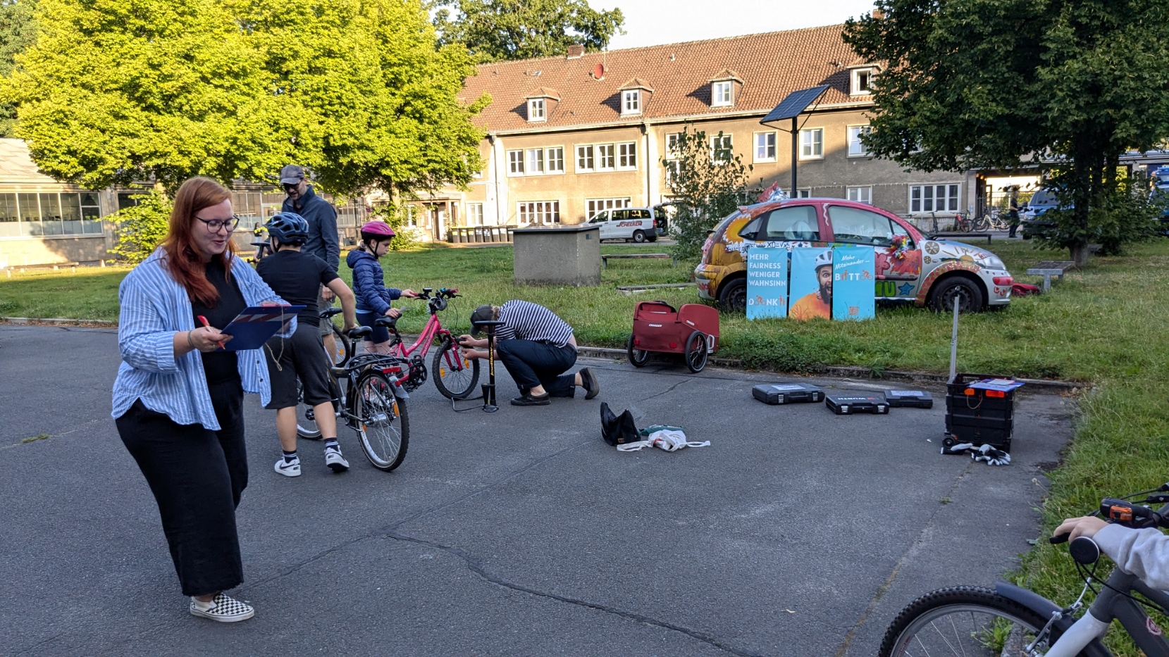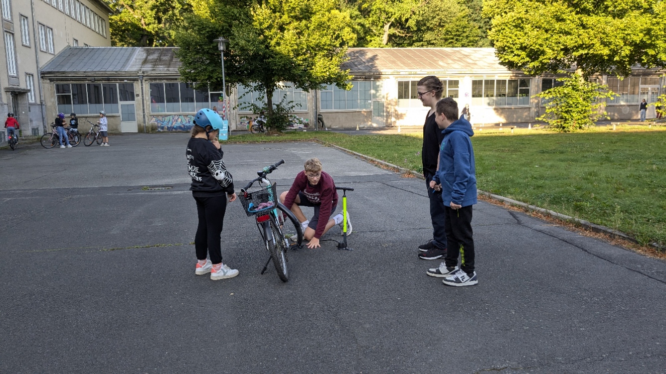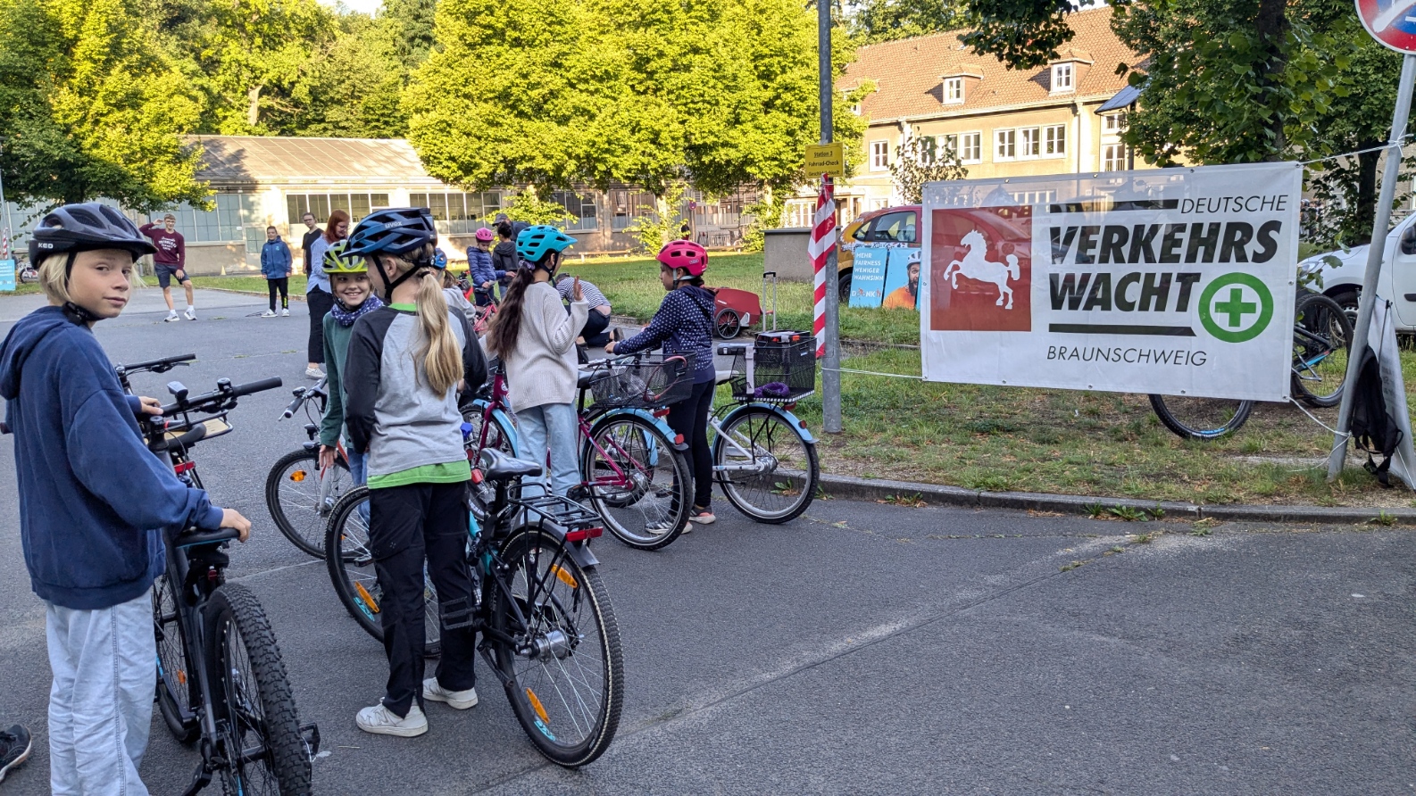 In einzelnen Stationen beschäftigten sich die Kinder der 5. Klassen mit zahlreichen Aspekten der Verkehrserziehung. Ein kleiner 1. Hilfe-Kurs ließ die Kinder kleinere Wunden versorgen. An einer anderen Stelle auf dem Schulhof ging es um die Sicherheit am Fahrrad. Dort wurden die Räder technisch auf Herz und Nieren untersucht. In einem Geschicklichkeits-Parcours, den sich unsere Praktikant:innen der Sozialpädagogik ausgedacht hatten, zeigten die Kinder ihre Fahrkünste. Wie lange ein Bremsweg und wie gefährlich der tote Winkel bei Lastkraftwagen ist, konnten die Kinder beim Präventionsteam der Polizei Braunschweig kennenlernen. Da staunten sie nicht schlecht! Eltern und die Jugendlichen der Mofa-AG checkten die Fahrräder technisch und auf Verkehrssicherheit. Vielen Dank an alle Helfer:innen, die die Aktion unterstützt haben. Ohne den LKW der Bereitschaftspolizei, unsere Sanitäter des ASB, der Verkehrswacht Braunschweig wäre Vieles nicht möglich gewesen und auch unsere engagierten Eltern trugen zu einem gelungenen Vormittag bei.