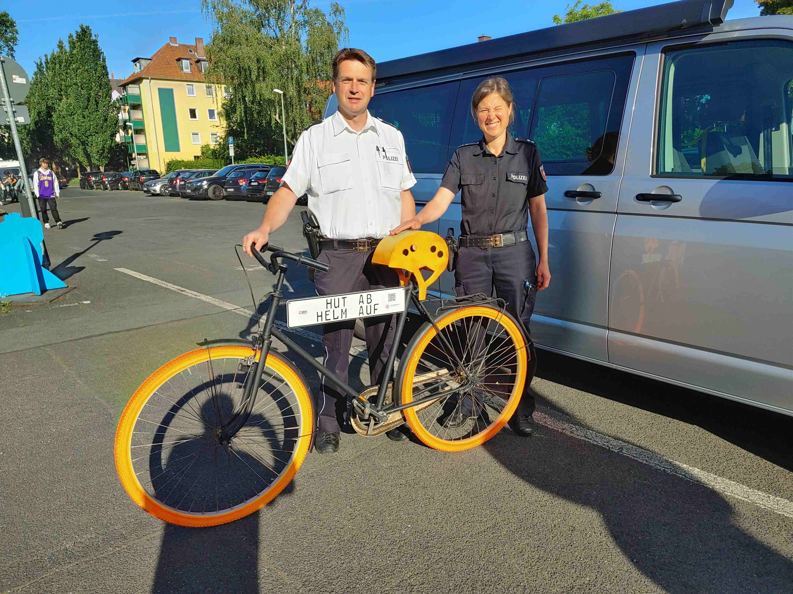 Hut ab – Helm auf!Die Polizei bringt ein Mitmach-Fahrrad vorbei