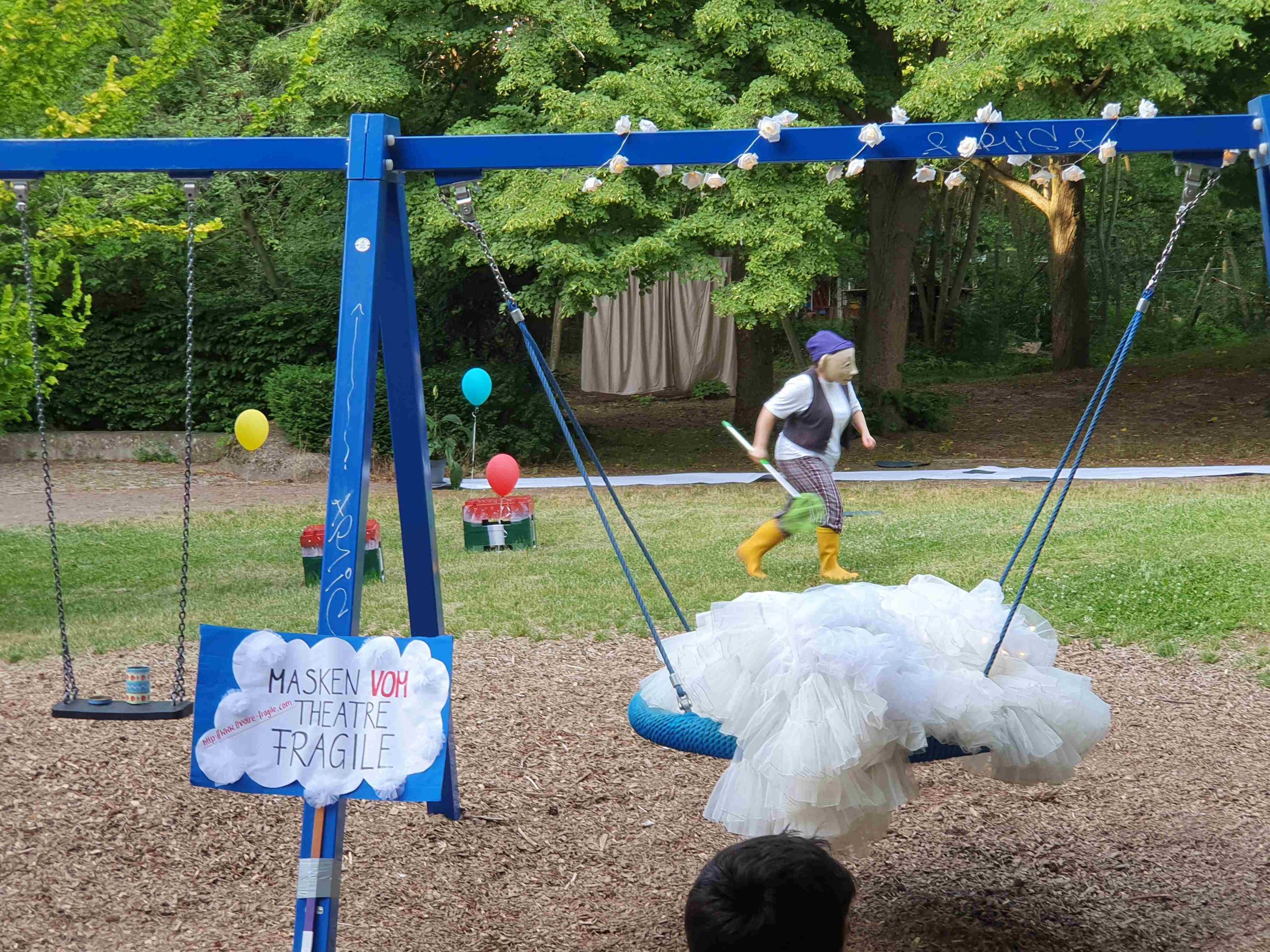 Das Maskenspiel wurde durch die erstmalige (!) und großherzige Leihgabe der professionellen Theater – Compagnie Theatre Fragile ermöglicht. Die Compagnie (Leitung: Luzie Ackers und Marianne Cornil) hat zum ersten Mal die Maskenkreationen von Luzie Ackers verliehen, die ein ästhetisches Merkmal ihrer eigenen Produktionen sind! Durch eine großzügige Spende wurde dies finanziell ermöglicht. Die Compagnie Theatre Fragile (mit Sitz in Berlin und Detmold) ist auch im Braunschweiger Raum ein bereits sehr bekannter Name: www.theatre-fragile.de. Wir bedanken uns sehr herzlich bei der Compagnie Theatre Fragile für diesen „Schatz“ als auch bei dem Spender (der ungenannt bleiben möchte) für diese wundervolle Möglichkeit Theater unter den Umständen einer Pandemie zu spielen.