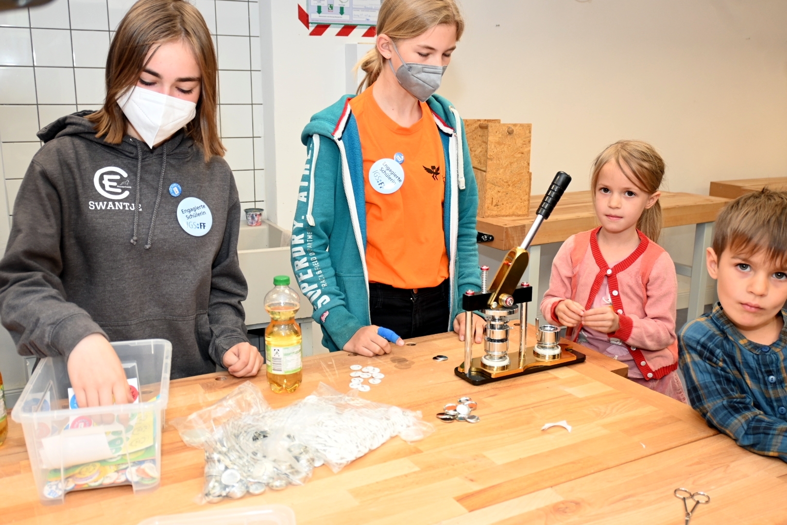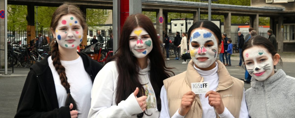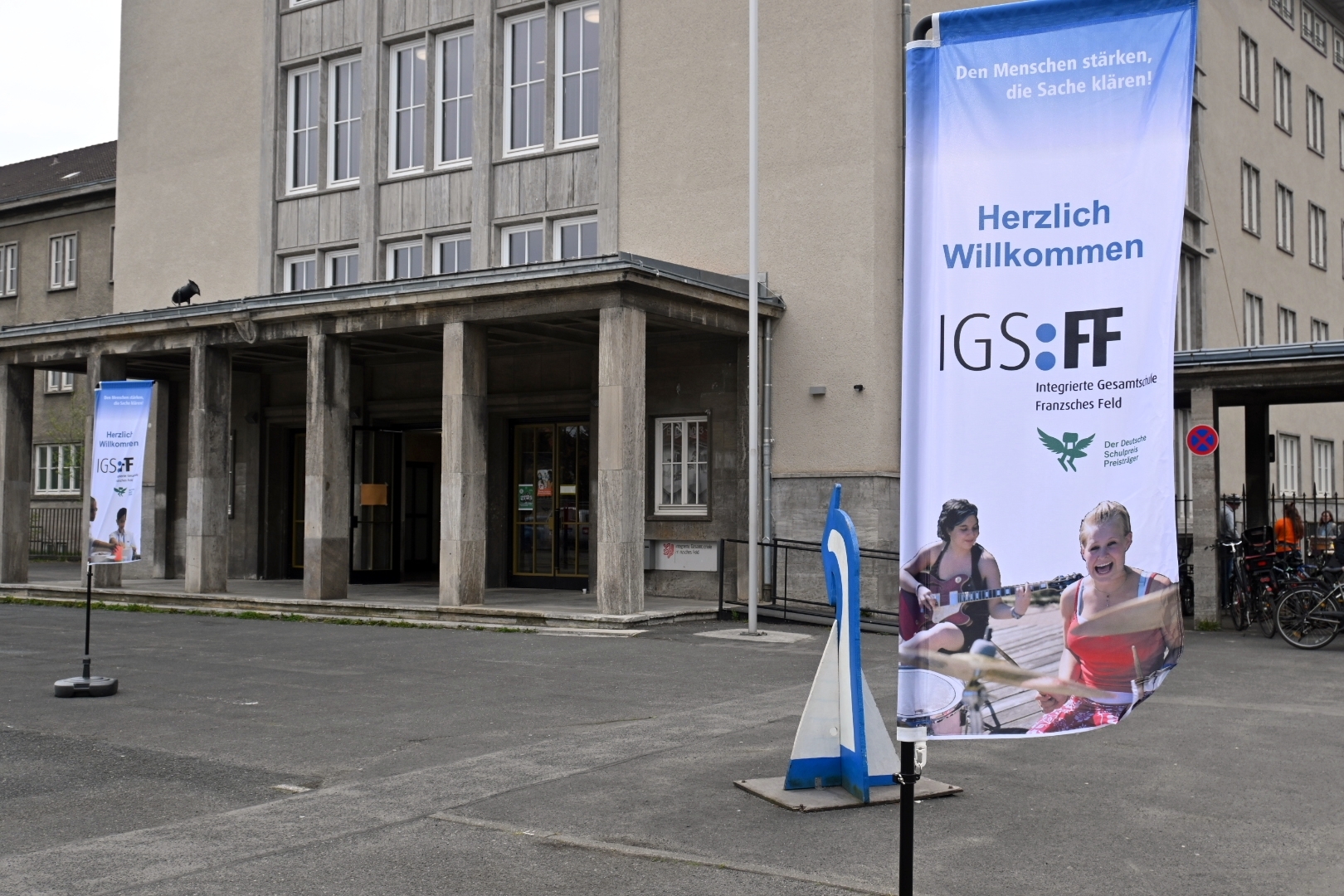 Am Samstag, den 30. April, öffnete die IGS Franzsches Feld in der Zeit von 11.00 Uhr bis 13.00 Uhr ihre Türen für interessierte Kinder und Eltern der vierten Grundschulklassen. Die Gäste wurden durch einen Kurs Darstellendes Spiel vor der Schule begrüßt. Schüler:innen der Schule führten die Kinder durch die Schule und über das Schulgelände und dabei konnten die Kinder an verschiedenen Stationen kennenlernen, wie an der IGS Franzsches Feld gelernt und gelebt wird. Naturwissenschaftliche Experimente, mathematische Knobeleien, Robotik, Harry-Potter-Aktivitäten, Märchen, geografische Themen, Musik an E-Pianos, Kreisel bauen, Pflanzaktion im Schulgarten, Sprachen kennenlernen und sozialem Training werden vielfältige Mitmachaktionen angeboten. Zum Höhepunkt konnte man sich dann mit der Kletter-AG abseilen lassen. Die Eltern können während dieser Zeit bei Kaffee und Kuchen Gespräche mit Eltern der Schule und Lehrkräften des kommenden fünften Jahrgangs führen.