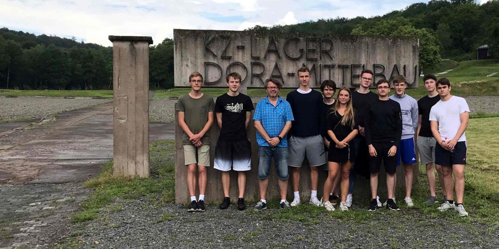 26. Juni 2019Auch das aktuelle Einsteinprofil hat sich während der Exkursionsphase am Ende der Klasse 12 drei Tage Zeit genommen, um sich mit der Geschichte des Konzentrationslagers Dora- Mittelbau in Nordhausen auseinanderzusetzen. In den Tunneln des Kohnsteins in unmittelbarer Nähe des Lagers wurden zwischen Juni 1943 bis April 1945 die von Wernher von Braun entwickelte „V2-Rakete“ produziert. Bei der Produktion starben 20.000 Zwangsarbeiter innerhalb von nur 18 Monaten.