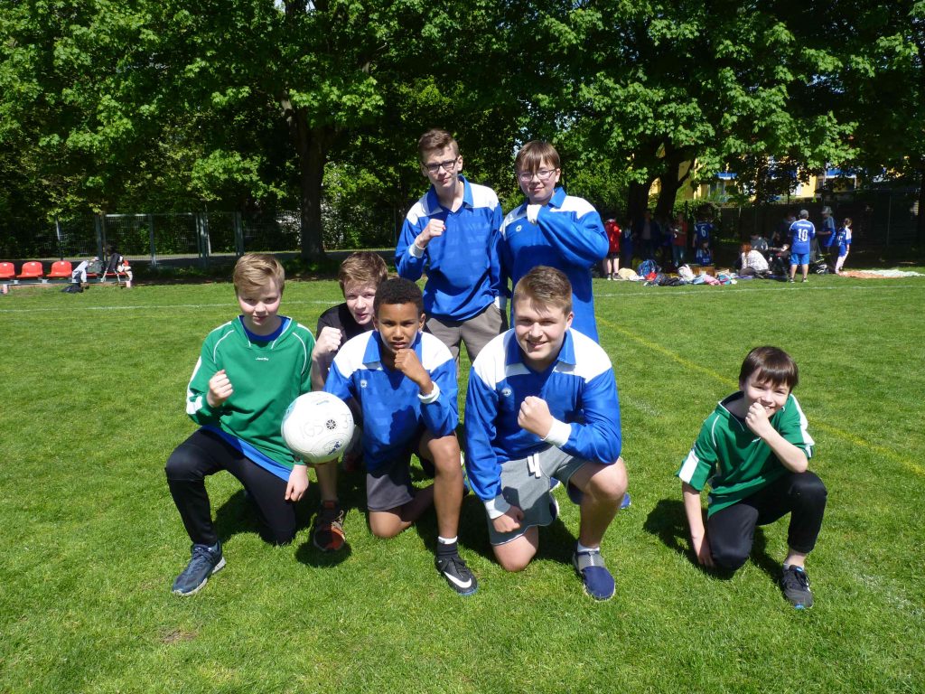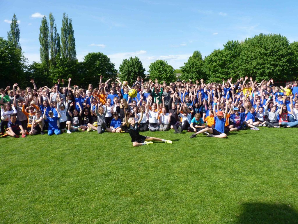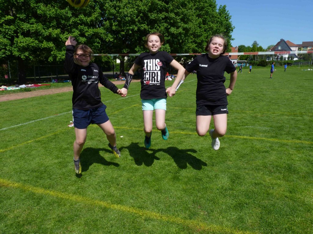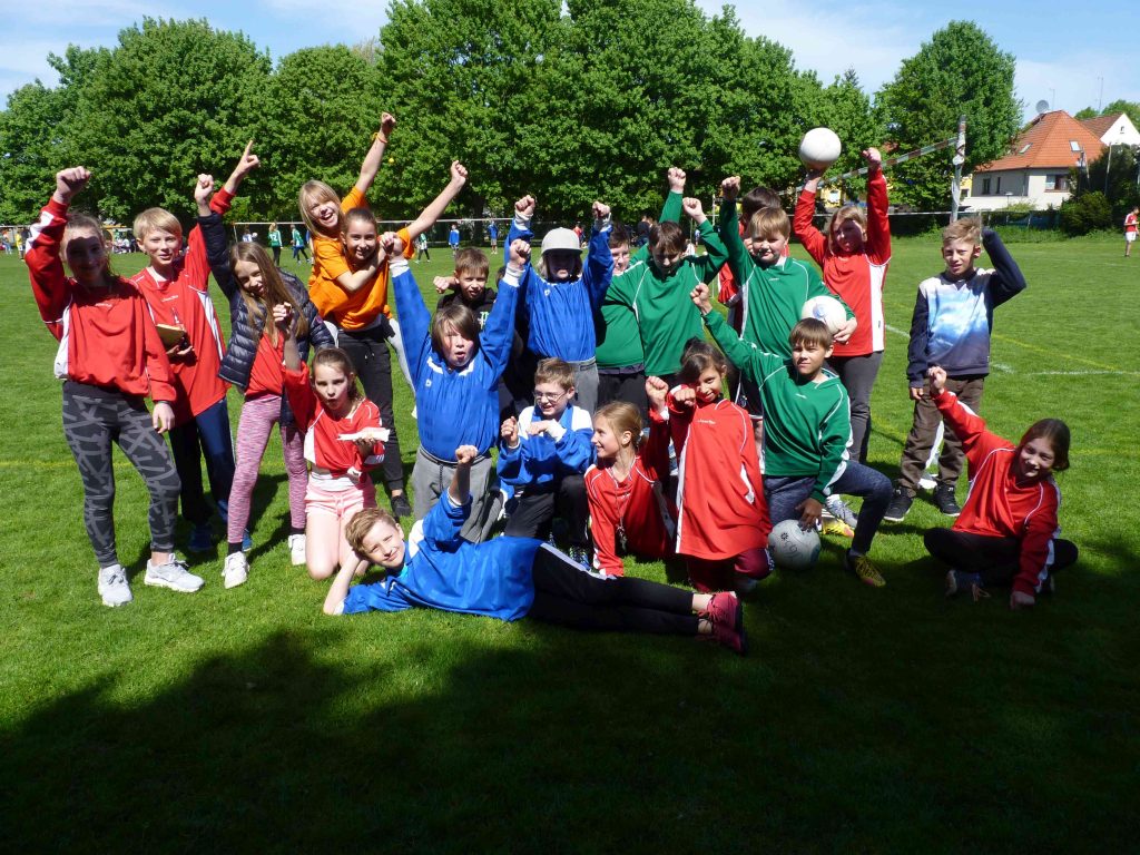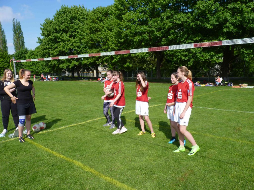 Bei super Sonnenwetter und guter Stimmung auf dem Sportplatz an der Berliner Straße gab es von 10.00 bis 15.00 Uhr viele spannende Faustballspiele zu sehen. Mit viel Eifer konnten sich die Schülerinnen und Schüler in diesem Mannschaftsspiel bewähren, wobei es ebenfalls eine große Herausforderung war, als Schiedsrichter ein Wettkampfspiel zu leiten. Besonders wenn bei lauten Anfeuerungsrufen die Emotionen hoch schwappten, war es nicht immer eine leichte Aufgabe.