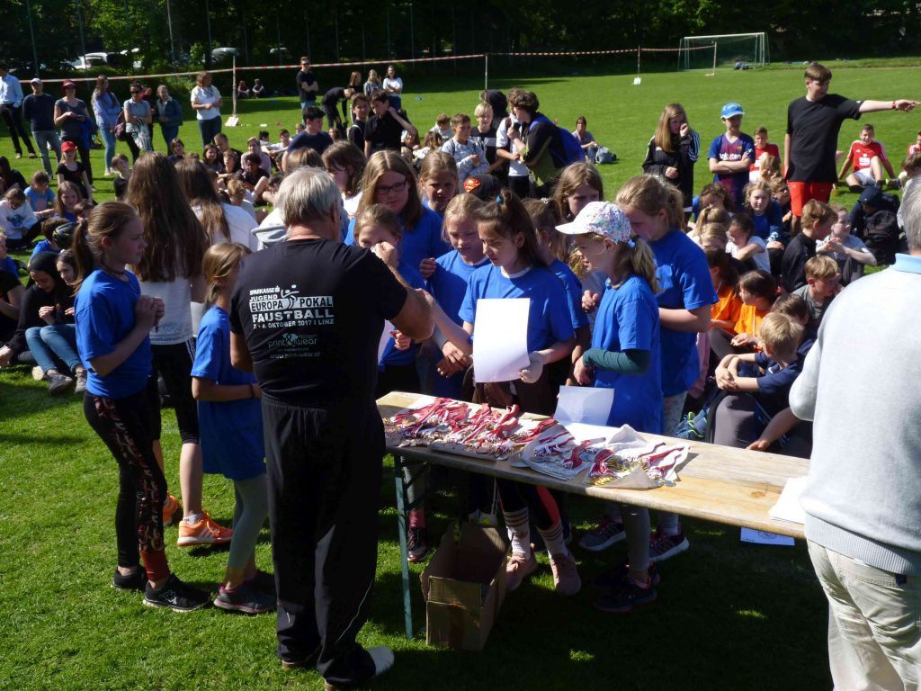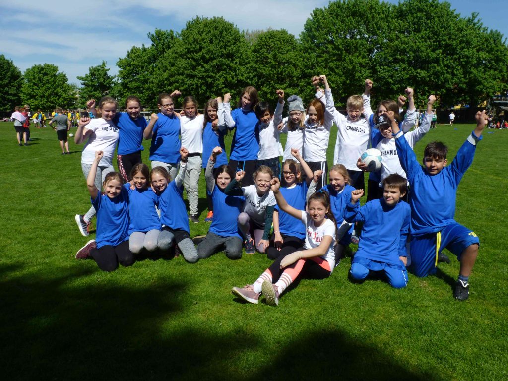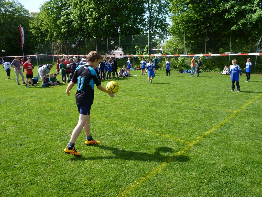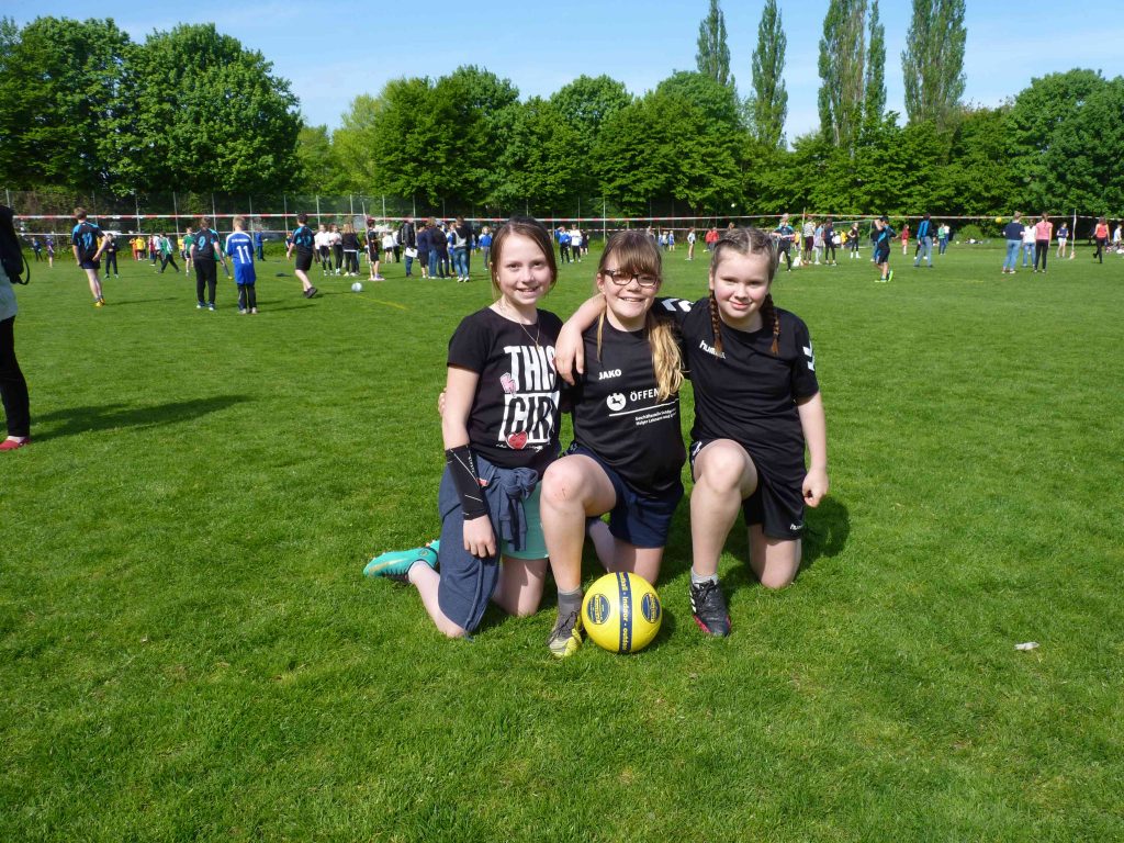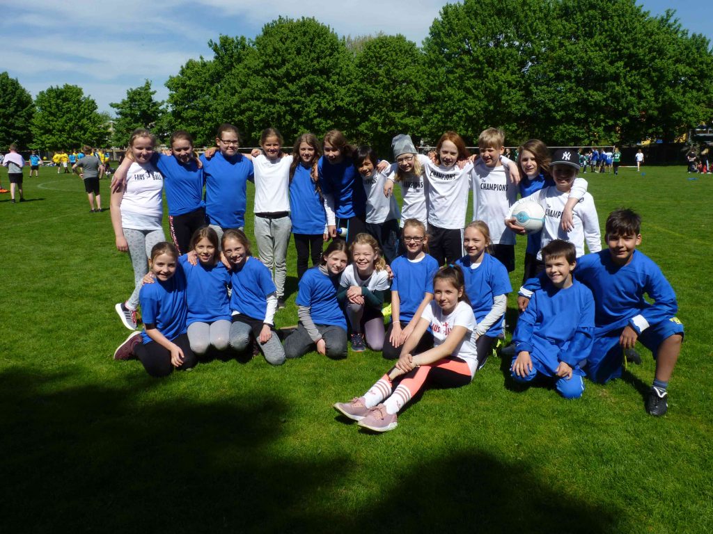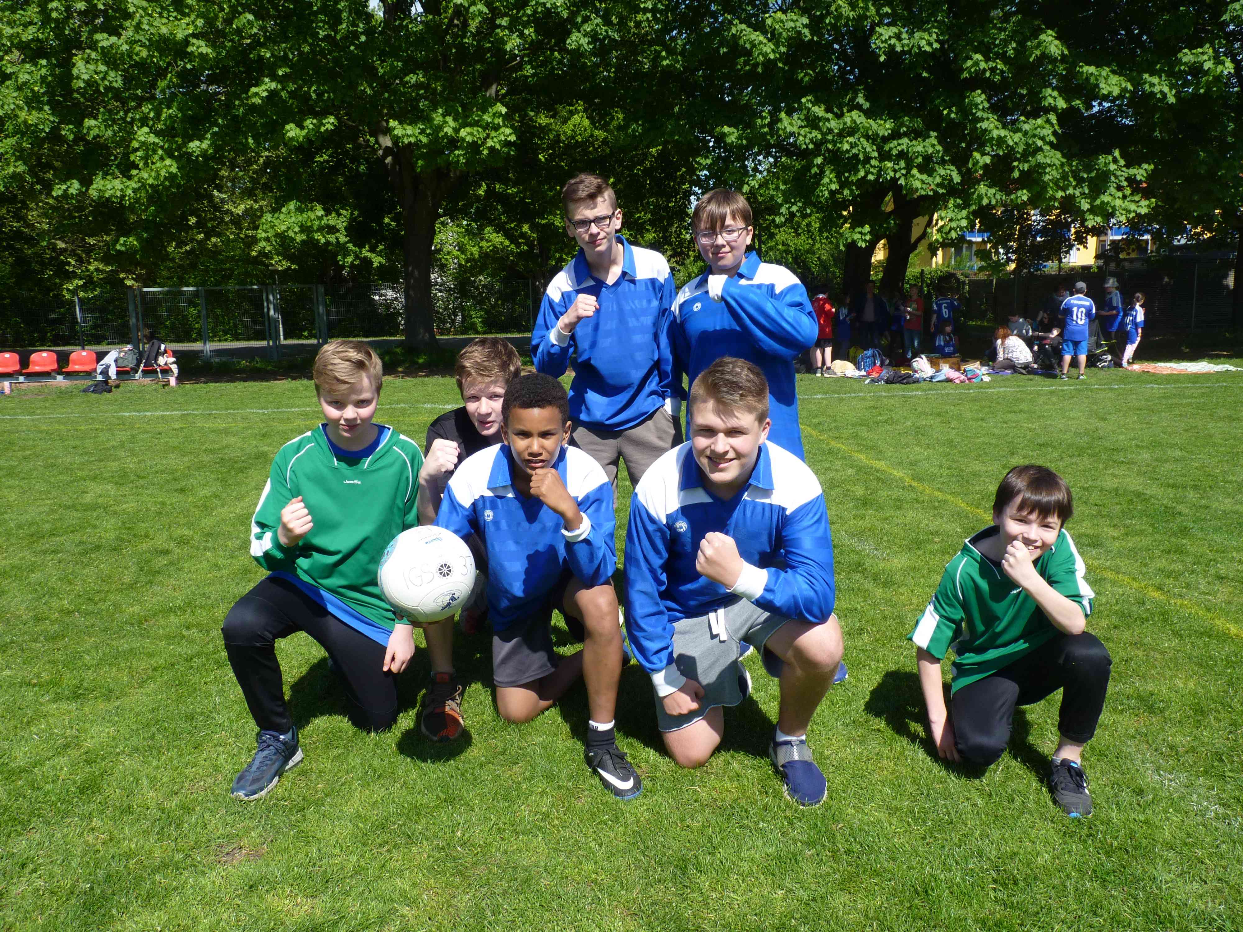 Bei super Sonnenwetter und guter Stimmung auf dem Sportplatz an der Berliner Straße gab es von 10.00 bis 15.00 Uhr viele spannende Faustballspiele zu sehen. Mit viel Eifer konnten sich die Schülerinnen und Schüler in diesem Mannschaftsspiel bewähren, wobei es ebenfalls eine große Herausforderung war, als Schiedsrichter ein Wettkampfspiel zu leiten. Besonders wenn bei lauten Anfeuerungsrufen die Emotionen hoch schwappten, war es nicht immer eine leichte Aufgabe.