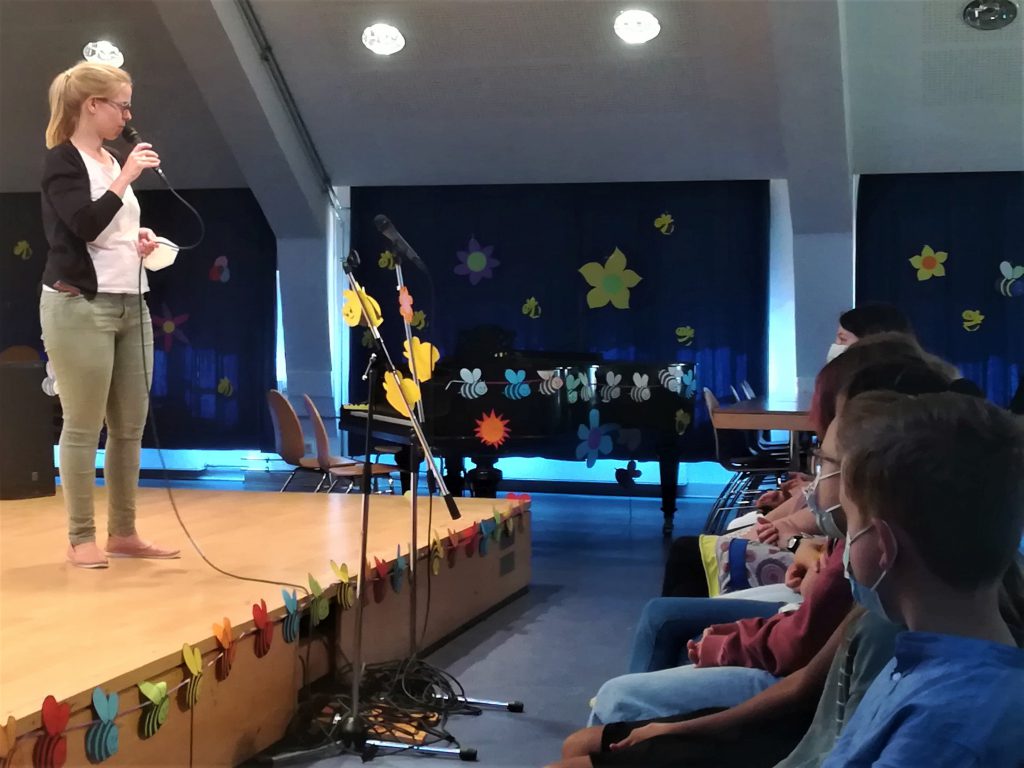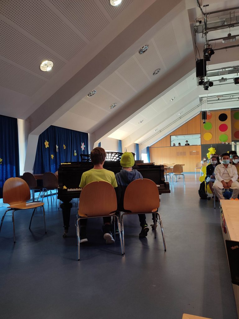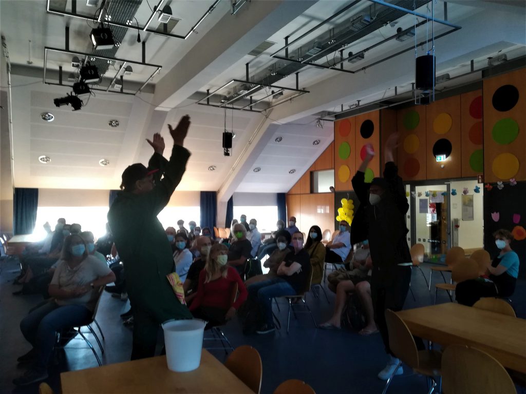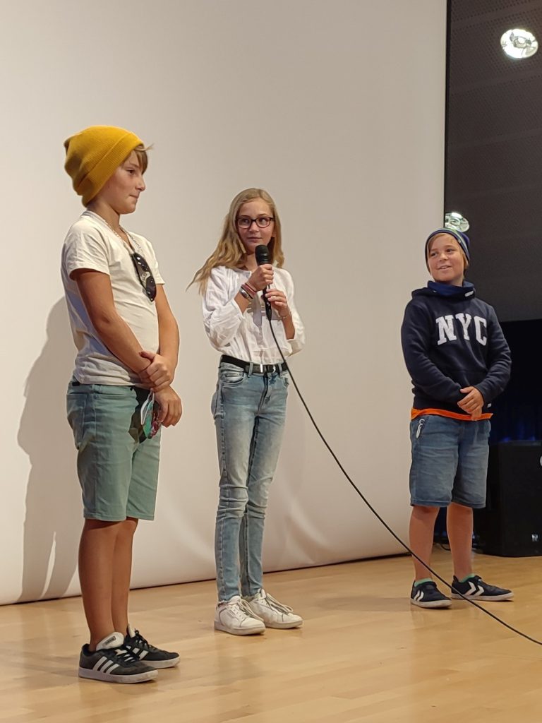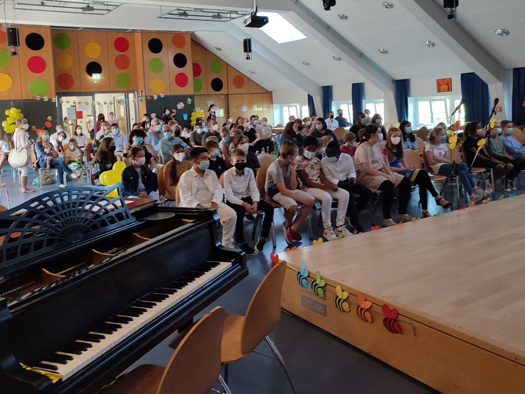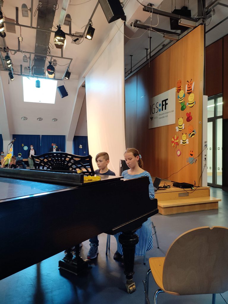 18. September 2021Am Nachmittag des 3. Septembers war es wieder soweit: ein neuer fünfter Jahrgang, der Jahrgang der „Hummeln“, wurde an der IGS:FF begrüßt. Unter Einhaltung der immer noch zu beachtenden Hygienevorschriften kamen die neuen Schüler:innen klassenweise mit ihren Eltern in die Aula. Sie wurden von der Jahrgangsleitung Birte Rothe und einem Moderatorenteam aus Schüler:innen des sechsten Jahrgangs begrüßt. Insgesamt wurde die Einschulungsfeier sehr liebevoll vom sechsten Jahrgang vorbereitet. So gab es auch musikalische Einlagen am Flügel von Sechstklässler:innen. Schulleiter Andreas Meisner sprach als „Tierpfleger“ zu den Neuen und und auch die Eltern wurden aktiv dabei einbezogen. Darauf folgte ein kleiner Film, in dem die jetzigen Sechstklässler:innen beschrieben, wie es ihnen vor einem Jahr ging, als sie als Neue in der Mensa saßen – und sie machten Mut, dass es eine gute Entscheidung gewesen sei, an die IGS:FF zu gehen.