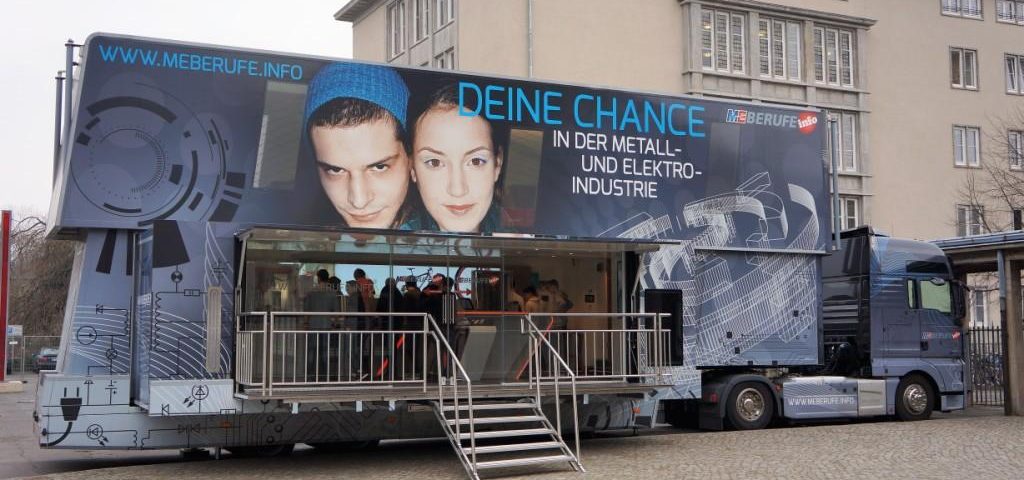 20. März 2017Ab Mittwoch, 15. März 2017 steht der InfoTruck der Metall und Elektroindustrie (M+E InfoTruck) für eine Woche in Braunschweig an der IGS Franzsches Feld.