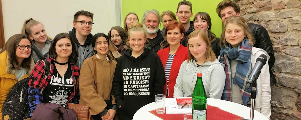 Katja Kipping brauchte nicht lange überredet zu werden, als sie gefragt wurde, ob sie mit unseren Schülern ein Foto macht.