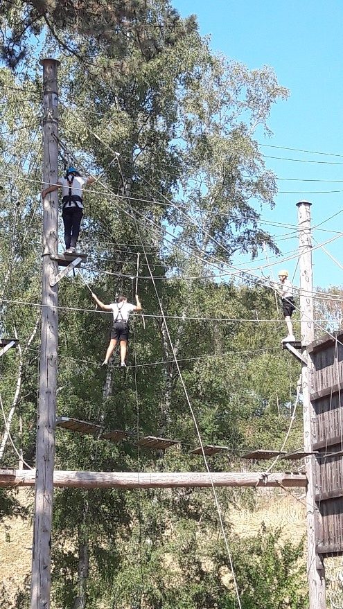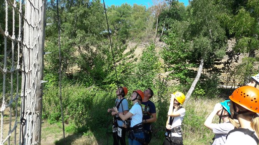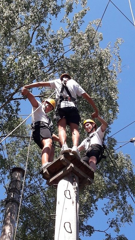 2. September 2018Zum Einstieg in die neue 11. Klasse sind alle Klassen zu Gast im Kletterpark am Kennelbad gewesen. Unsere schuleigenen TrainerInnen haben ein anspruchsvolles und abwechslungsreiches Programm zusammengestellt. Los ging es mit Kennenlern- und Strategiespielen im Niedrigseilgarten. Höhepunkt war der Sprung vom 9 Meter Turm mit der bezeichnenden Übung „High all above“. Begleitet von den neuen KlassenlehrerInnen hatten die Klassen bei schönem Wetter viel Spaß.
