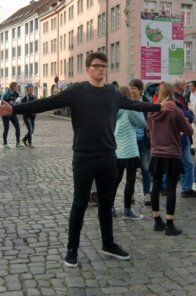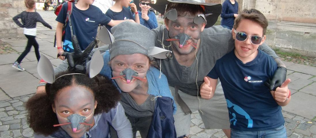 Unsere anfängliche Nervosität baute sich mit der Zeit aufgrund des starken Interesses des Publikums ab. Zudem wurde uns die Anspannung durch ein Zusammenspiel mit den „flitzenden Mäusen“ genommen, die zusammen mit „Engelchen und Teufelchen“ auch die Atmosphäre auf dem ganzen Platz aufgelockert haben.