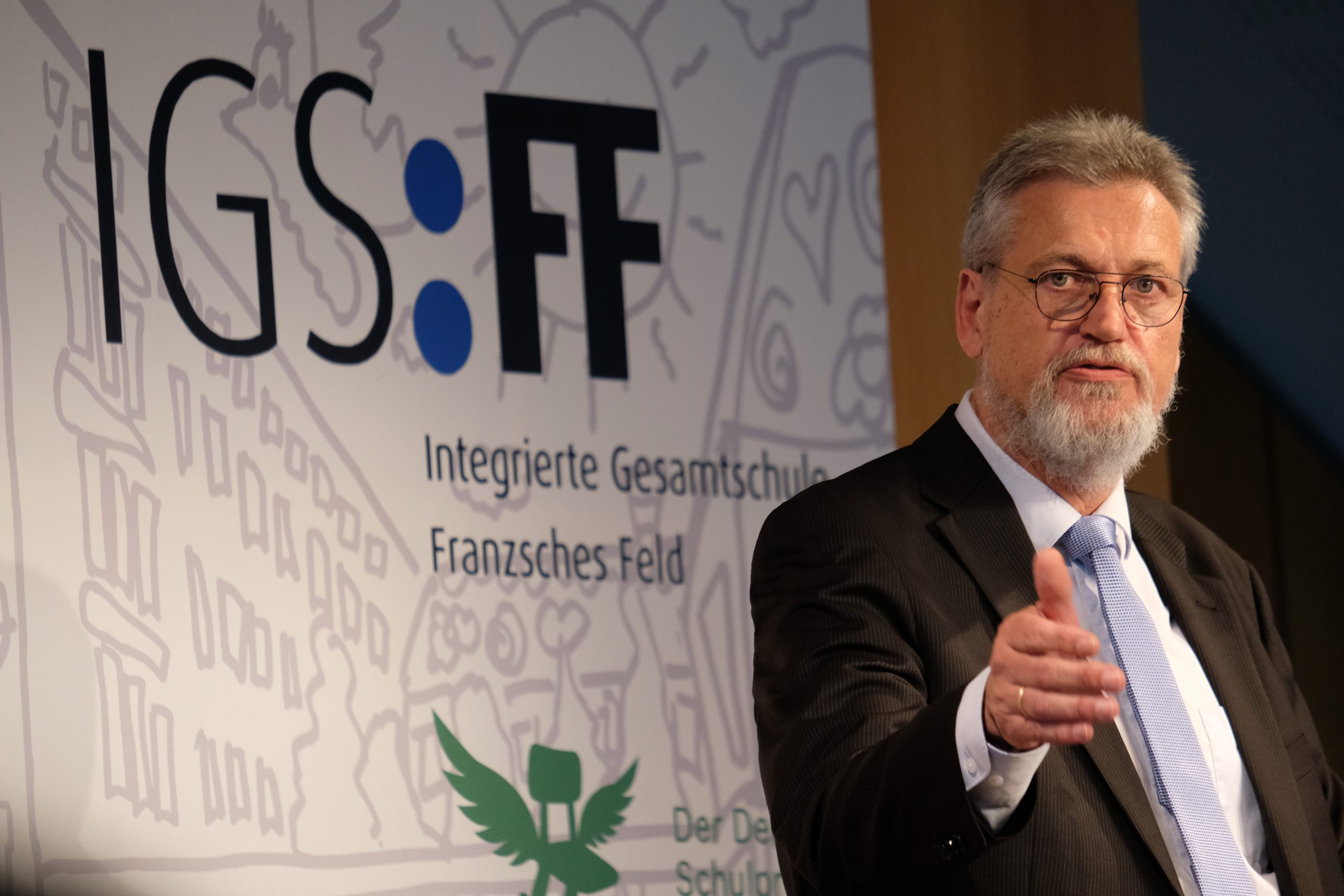 Am 05.09.2022 besuchte Minister Tonne mit der Referentin für den Schwerpunkt Demokratieschule im Kultusministerium, Frau Graf, die IGS:FF, um sie als Demokratieschule in Niedersachsen auszuzeichnen. Der Oberbürgermeister Dr. Kornblum und die Stadträtin Frau Dr. Arbogast sowie die für Schule zuständige Dezernentin des Regionalen Landesamtes für Schule, Frau Pavlidis, nahmen an der Auszeichnungsstunde ebenfalls teil.