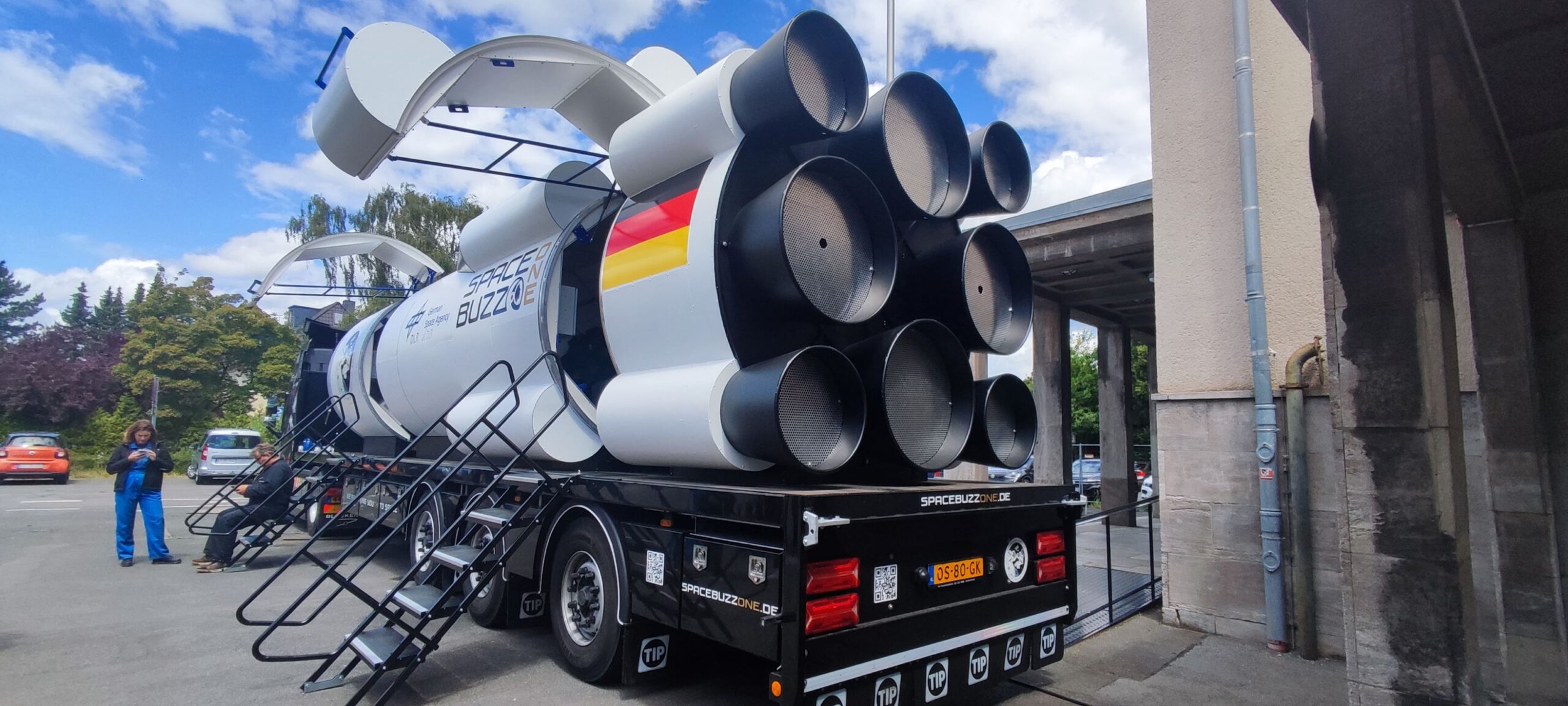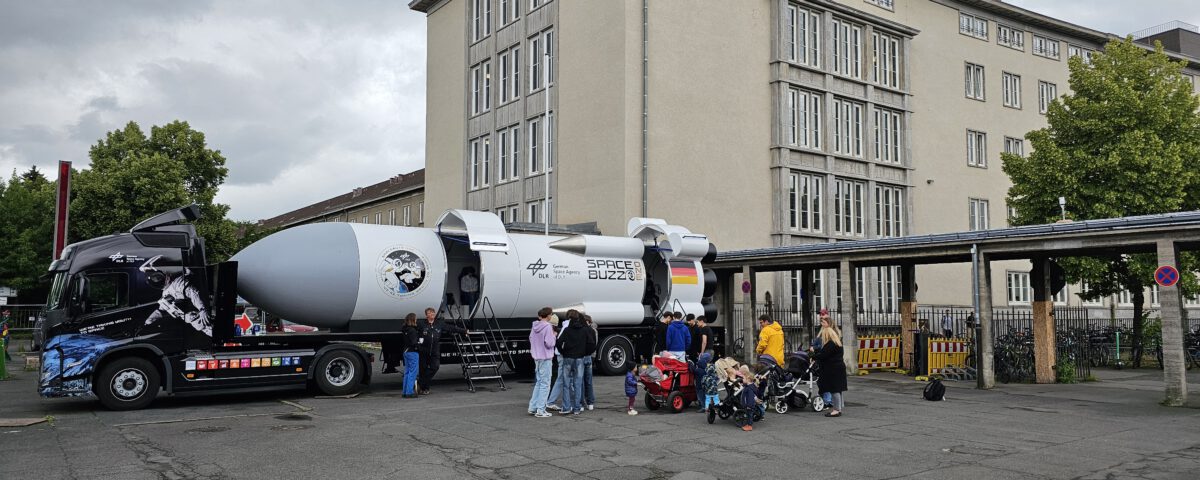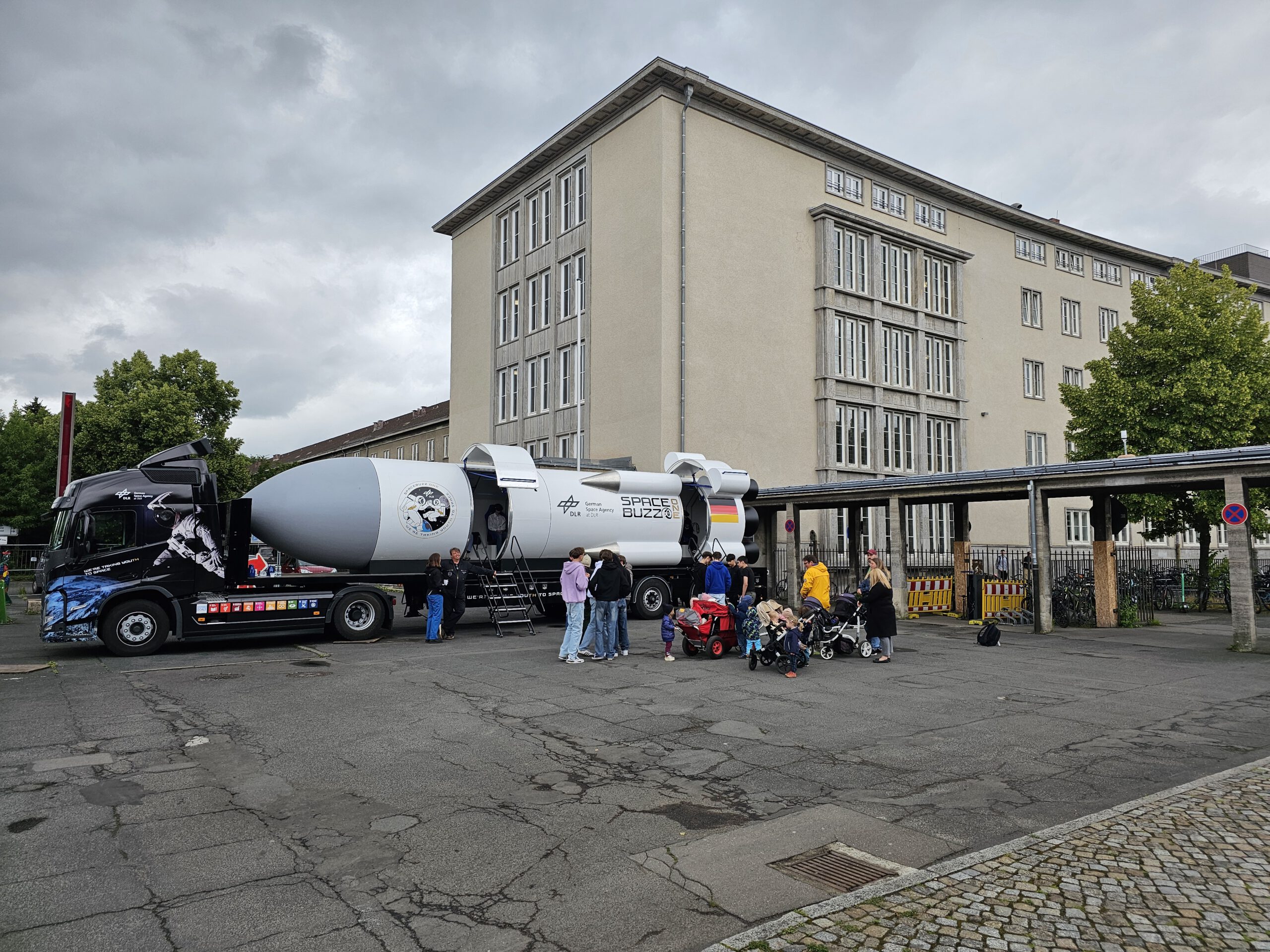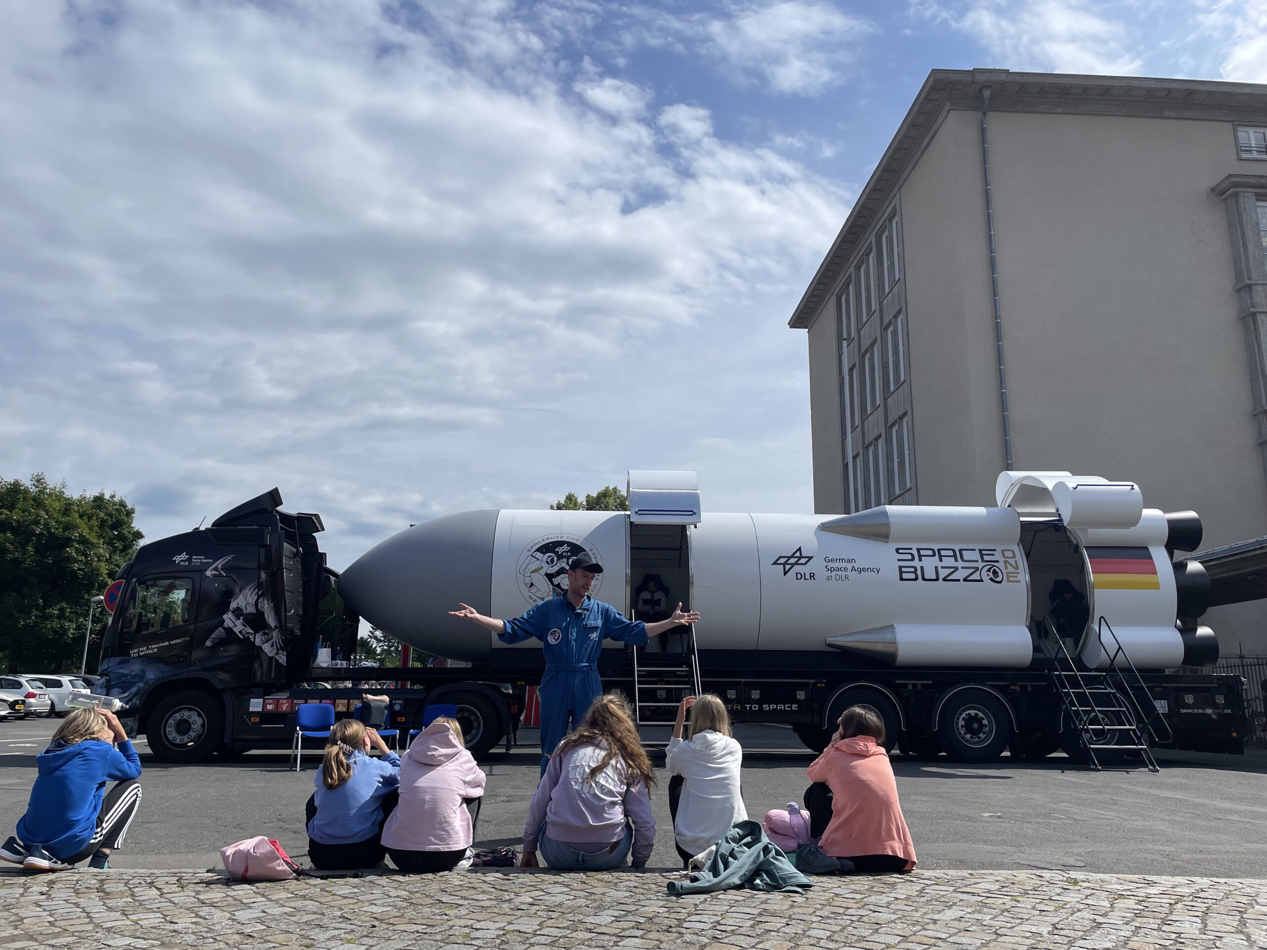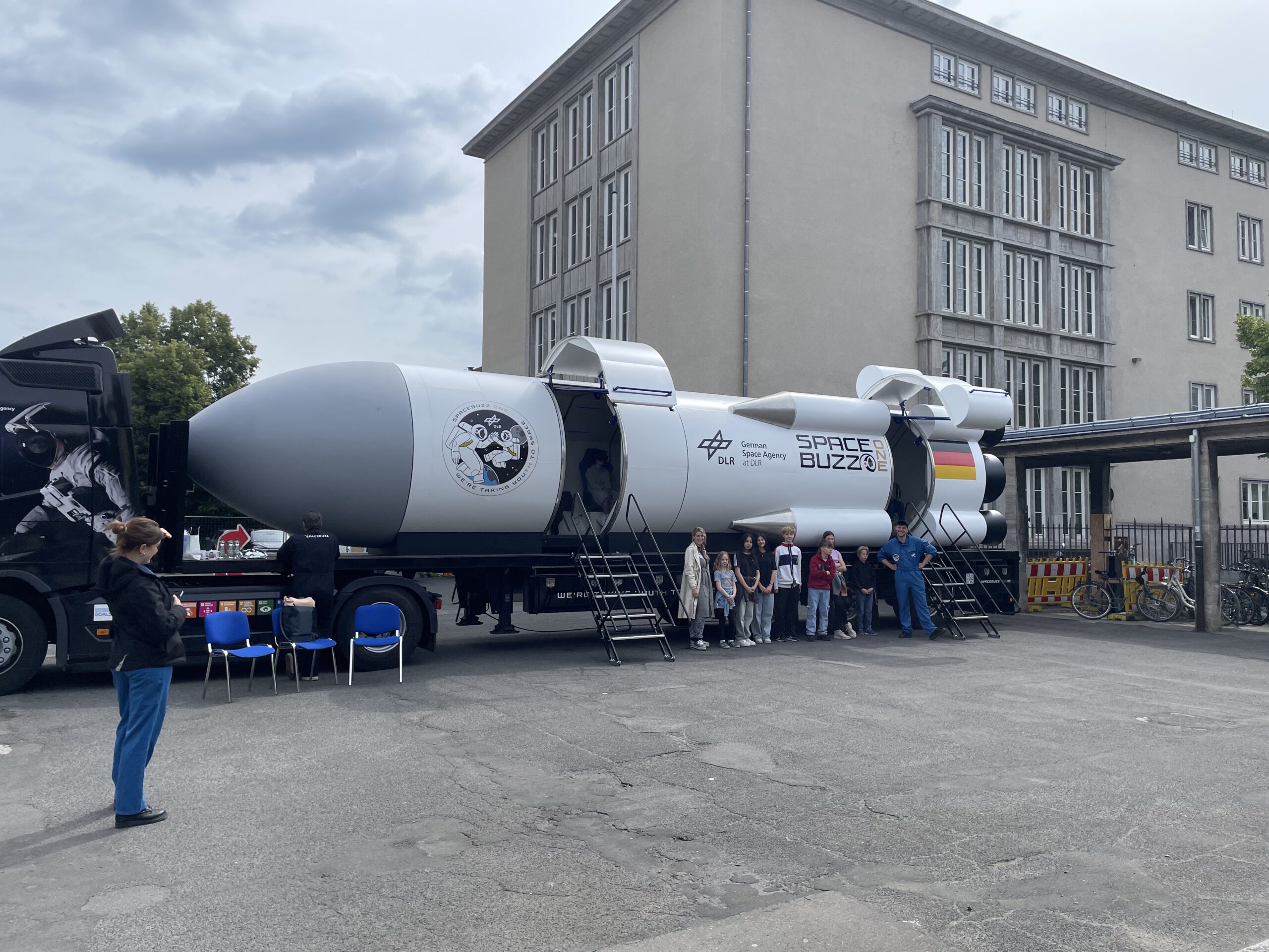 Der beeindruckende Spacebuzz steht derzeit auffällig auf dem Vorplatz unserer Schule und zieht die Blicke der Passanten auf sich. Nach seiner Enthüllung auf der ILA in Berlin hat der Spacebuzz nun auch den Weg zu uns gefunden. Wir sind die erste Schule in Deutschland, die ihn begrüßen darf.