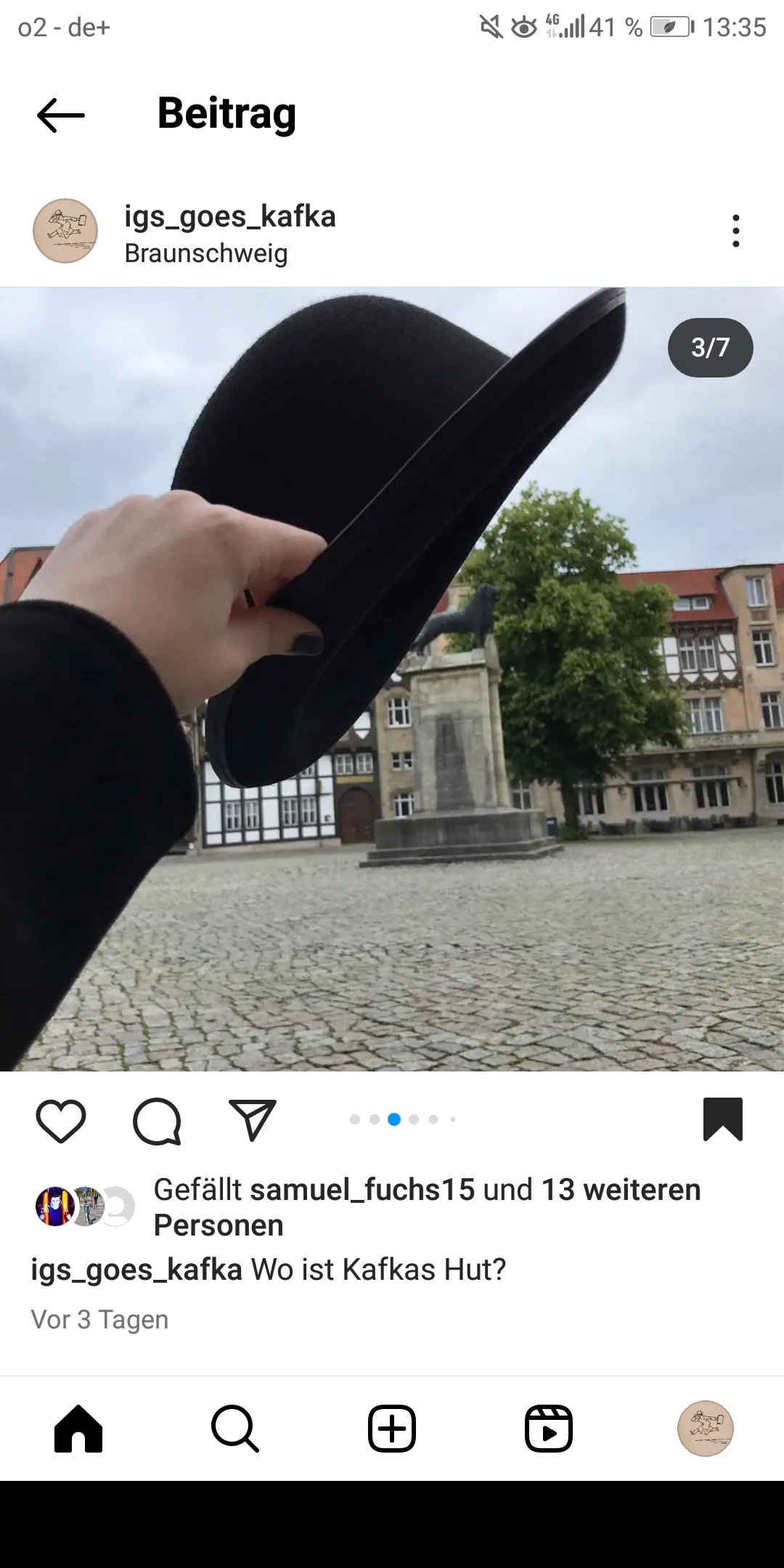 Das gesamte Projekt in diesem Jahr war geprägt von Kafka, wie kann es auch anders sein anlässlich des 100. Todestags dieses tschechischen Autors deutscher Sprache. Für den Aufenthalt in Braunschweig wollten wir den Literaten in die Gegenwart und vor allem nach Braunschweig holen. Somit bekam die Gruppe jeden einen Insta-Post im Kafka-Stil (KI sei Dank), der das Programm des Tages abbildete. Die SchülerInnen hatten die Woche über als feste Aufgabe, Fotos als Illustration zu erstellen. Dazu waren am ersten Tag 6 Hüte à la Kafka verteilt worden, die nun auf die Reise gingen. Einige dieser Hüte machten sich dann auch am Freitag auf die Heimreise nach Tschechien und werden sicherlich einen Platz in der Schule finden.