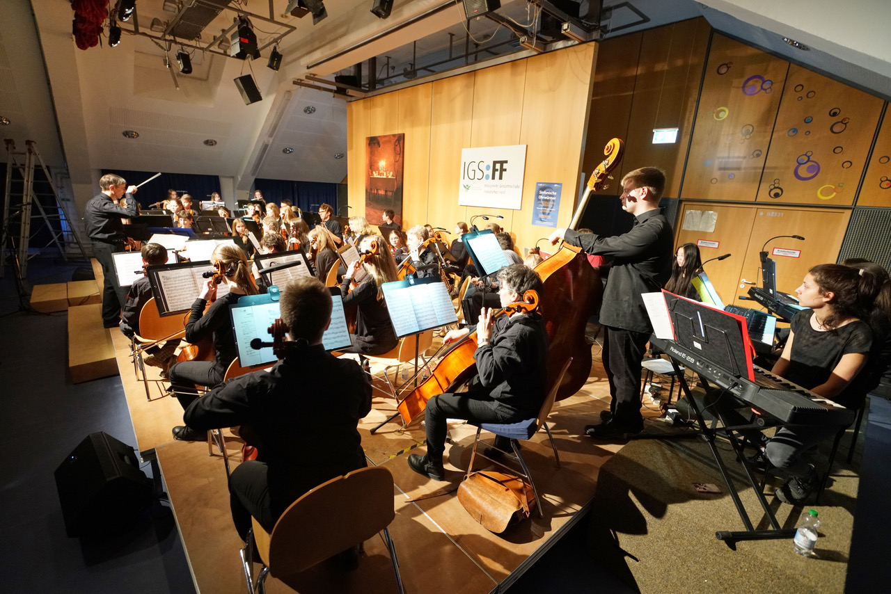21. April 2017Am 16. März war es dann soweit. Beim ersten Konzert der neu zusammengesetzten Franzschen Vielharmonie wurden sinfonische Ohrwürmer von Tschaikowski über Händel, Brahms, Dvorák, Grieg und Schostakowitsch zu Beethoven brilliant und nahezu professionell auf die Bühne gebracht. Durch die Öffnung des Orchesters für Schülerinnen anderer Schulen hat die Franzsche Vielharmonie einen eindrucksvollen Klangkörper und eine Qualität bekommen, die sich hören lassen können. Als i-Tüpfelchen spielten auch noch Profimusiker des Braunschweiger Staatsorchesters mit. Auch schwierige Passagen wurden gemeistert und das Orchester unter der Leitung von Günther Westenberger kann Stolz auf seine Leistung sein. Bei Beethovens „Ode an die Freude“ erhob sich ein Gast und sang den Text mit. Davon angesteckt und mit einer Textvorlage versehen schloss sich das gesamte Auditorium an. Emma und Kübra aus dem siebten Jahrgang moderierten die Stücke unterhaltsam und lehrreich, in dem sie Informationen über die Komponisten und die Stücke in motivierender Form zum Besten gaben.