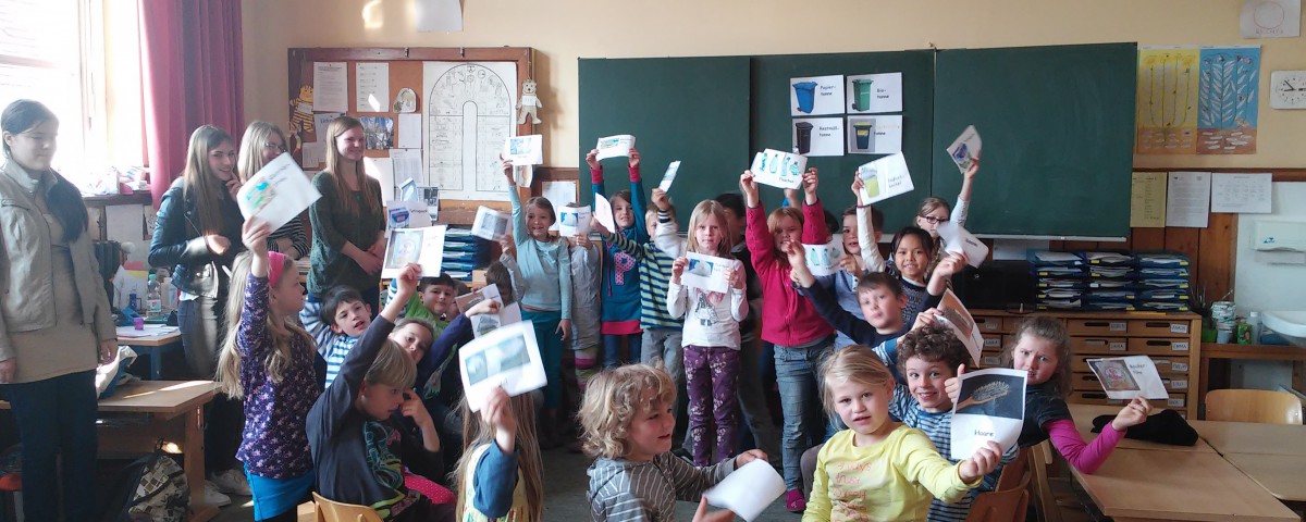 Die 10.4 hatte sich überlegt, an Grundschulen zu gehen und den Kindern die Mülltrennung dort mit vielen verschieden Tätigkeiten vorzustellen.