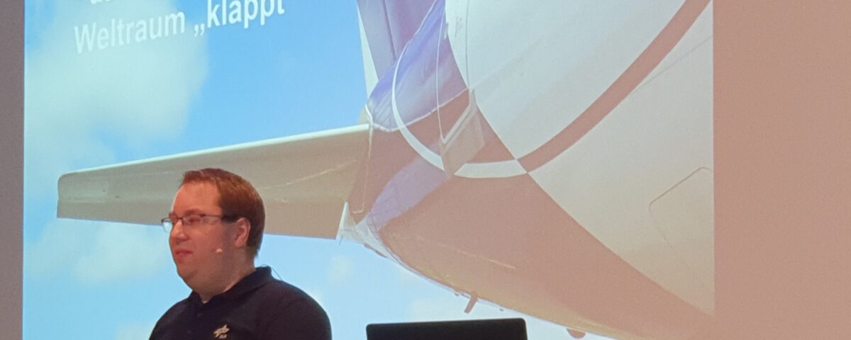 Frank Fischer berichtete sehr unterhaltsam und motivierend über seine Erfahrungen bei Parabelflügen mit dem A310 ZE­RO-G der Firma noveSpace.