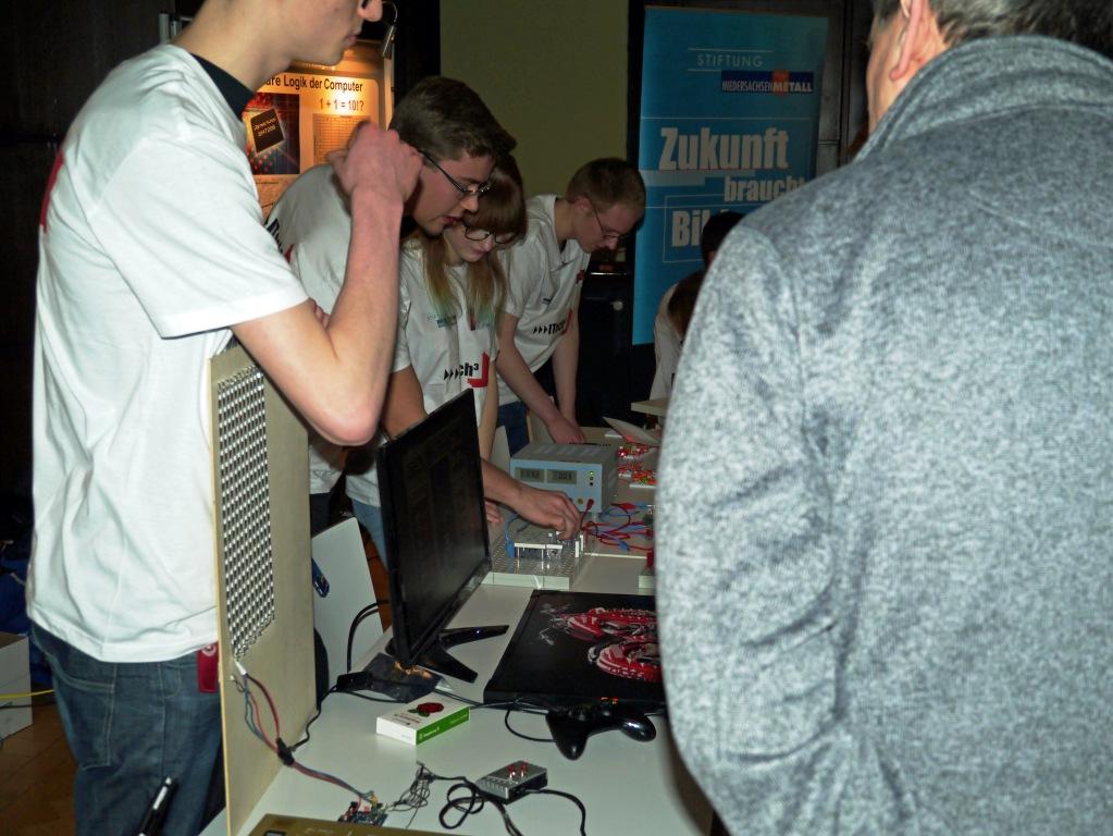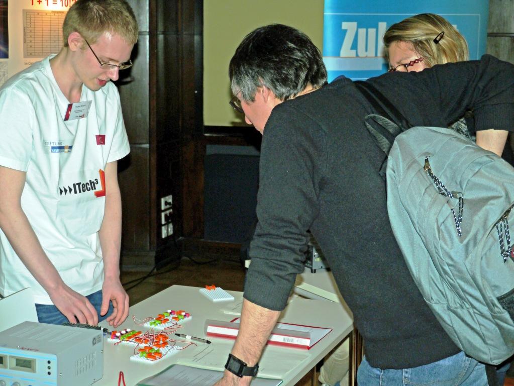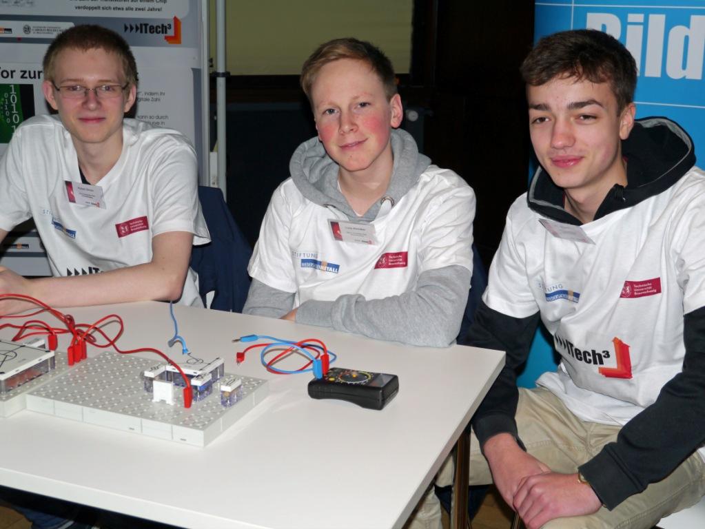 Im Rahmen des ITECH3-Projekts haben sie gemeinsam mit Schüler/innen der Raabeschule und des Hoffmann-von-Fallersleben-Gymnasiums in einem 2-stündigen Workshop für Lehrer/innen Versuche und Modelle zum Thema Informationstechnik präsentiert: Technik live – zum Anfassen.