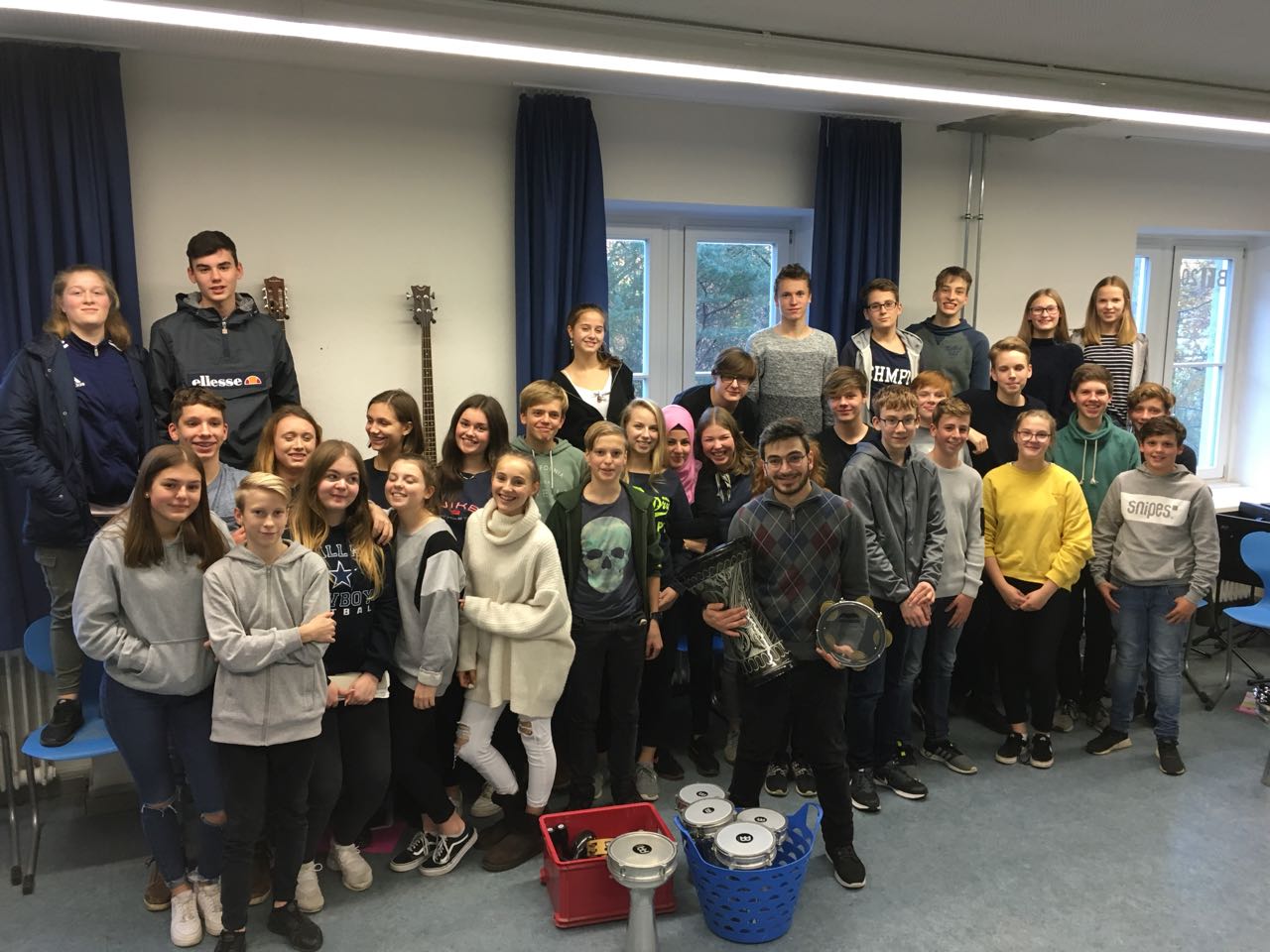 Die Klasse 9.3 musiziert mit dem syischen Musiker Hadi Andywi