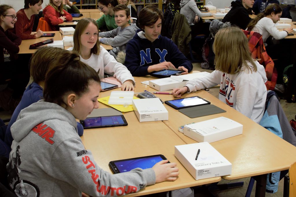 27. Februar 2019Im letzten Schuljahr hatte die Gesamtkonferenz nach zweieinhalb Jahren intensiver Abwägung fachdidaktischer, pädagogischer und technischer Aspekte beschlossen, ab Klasse 7 verbindlich Tablets als Lernmittel einzuführen. Dabei geht es nicht darum, Bisheriges einfach durch Tablets zu ersetzen, sondern die technischen Möglichkeiten konstruktiv als Unterstützung für den individuellen Lernfortschritt zu nutzen. Für die Eltern gibt es ein Leihsystem, so dass es auch allen möglich ist, dieses Unterrichtsmittel zu verwenden. Wie bei einem Taschenrechner, wurde auch ein einheitliches Gerät empfohlen.