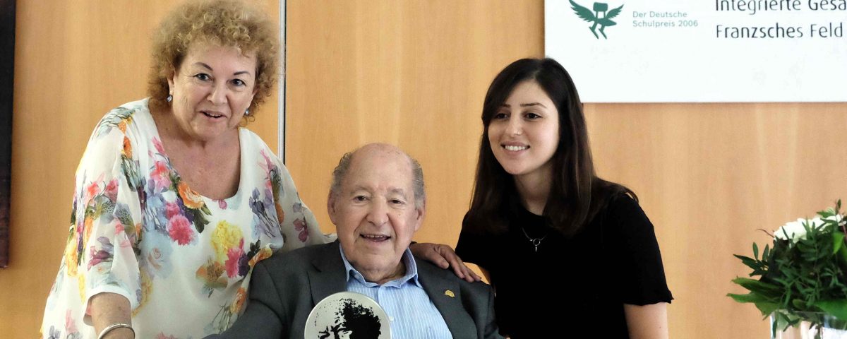 Bei seinem zweiten Besuch an der IGS Franzsches Feld wurde er von seiner Nichte und seiner Enkeltochter begleitet und wir haben ihn mit einem „Auf Wiedersehen“ verabschiedet – in der Hoffnung, dass es nicht der letzte Besuch an der IGS:FF war.