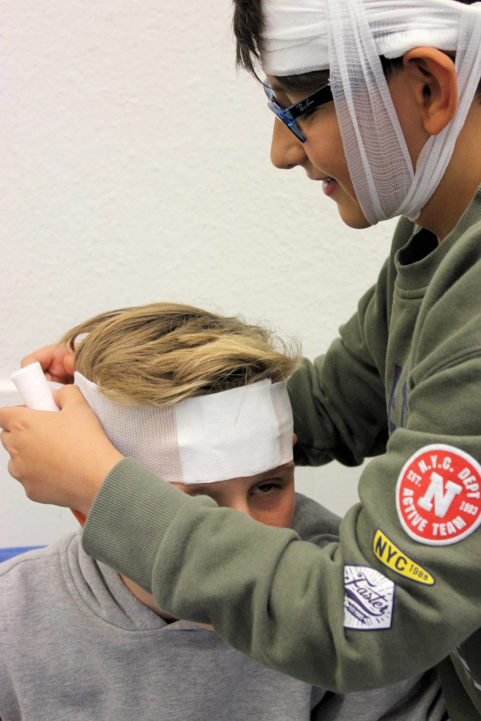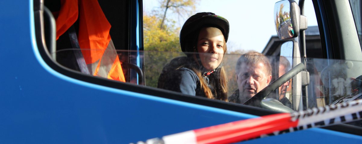 In einer Mischung zwischen praktischen und theoretischen Teilen wurden Anhaltewege beim Bremsen analysiert, nahm man die eingeschränkte Perspektive eines LKW-Fahrers selbst ein, leistete man Erste Hilfe an Mitschüler/innen und checkte schließlich das eigene Fahrrad auf Verkehrssicherheit.